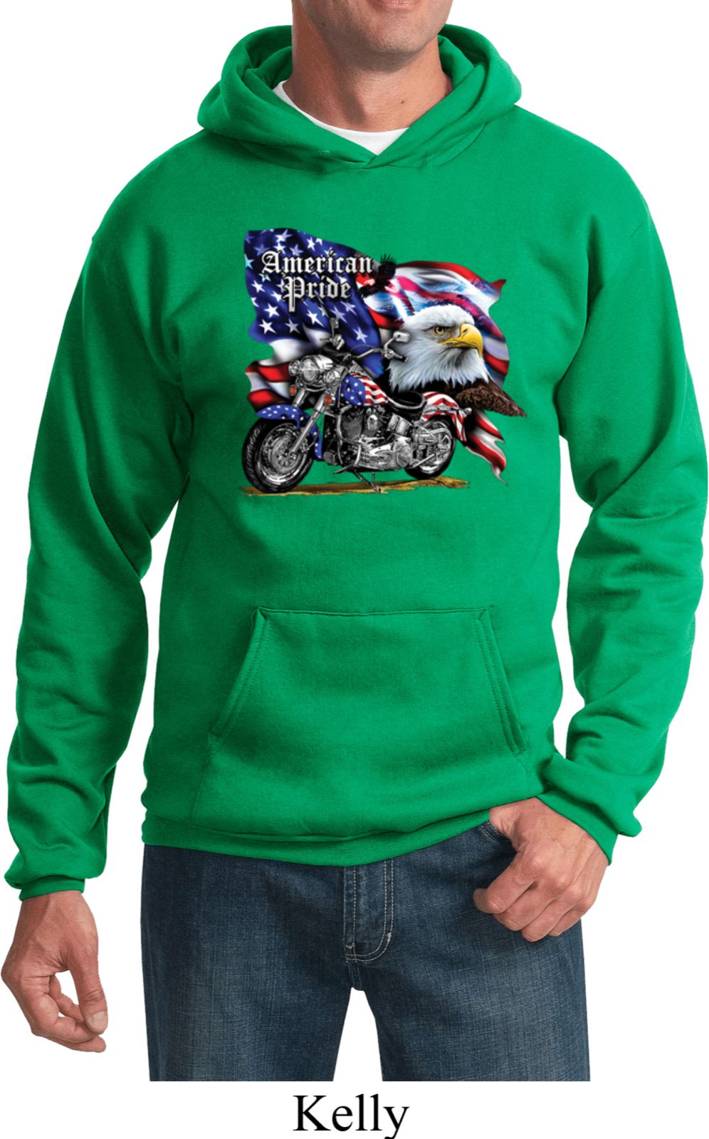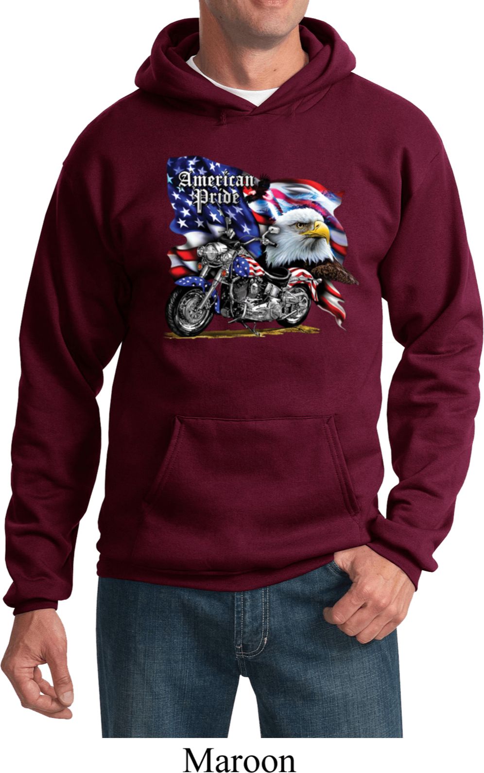 | | Mens Biker Hoodie American Pride Motorcycle HoodyMens Biker Hoodie American Pride Motorcycle Hoody A cotton/poly blend Available in Small, Medium, Large, XL, 2XL, 3XL & 4XL Also available in colors Ash, Athletic Heather, Black, Chocolate, Dark Green, Gold, Kelly, Maroon, Navy, Orange, Pale Pink, Purple, Red, Royal, Safety Green, and White ![]() |
