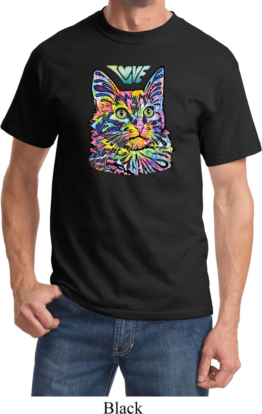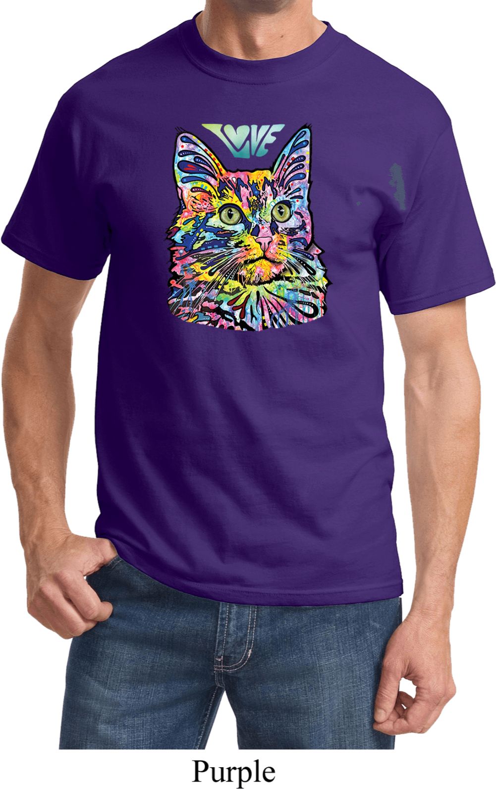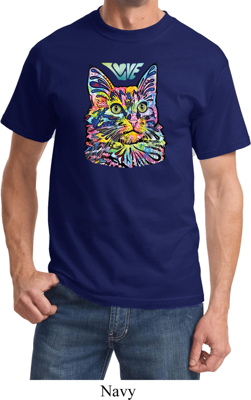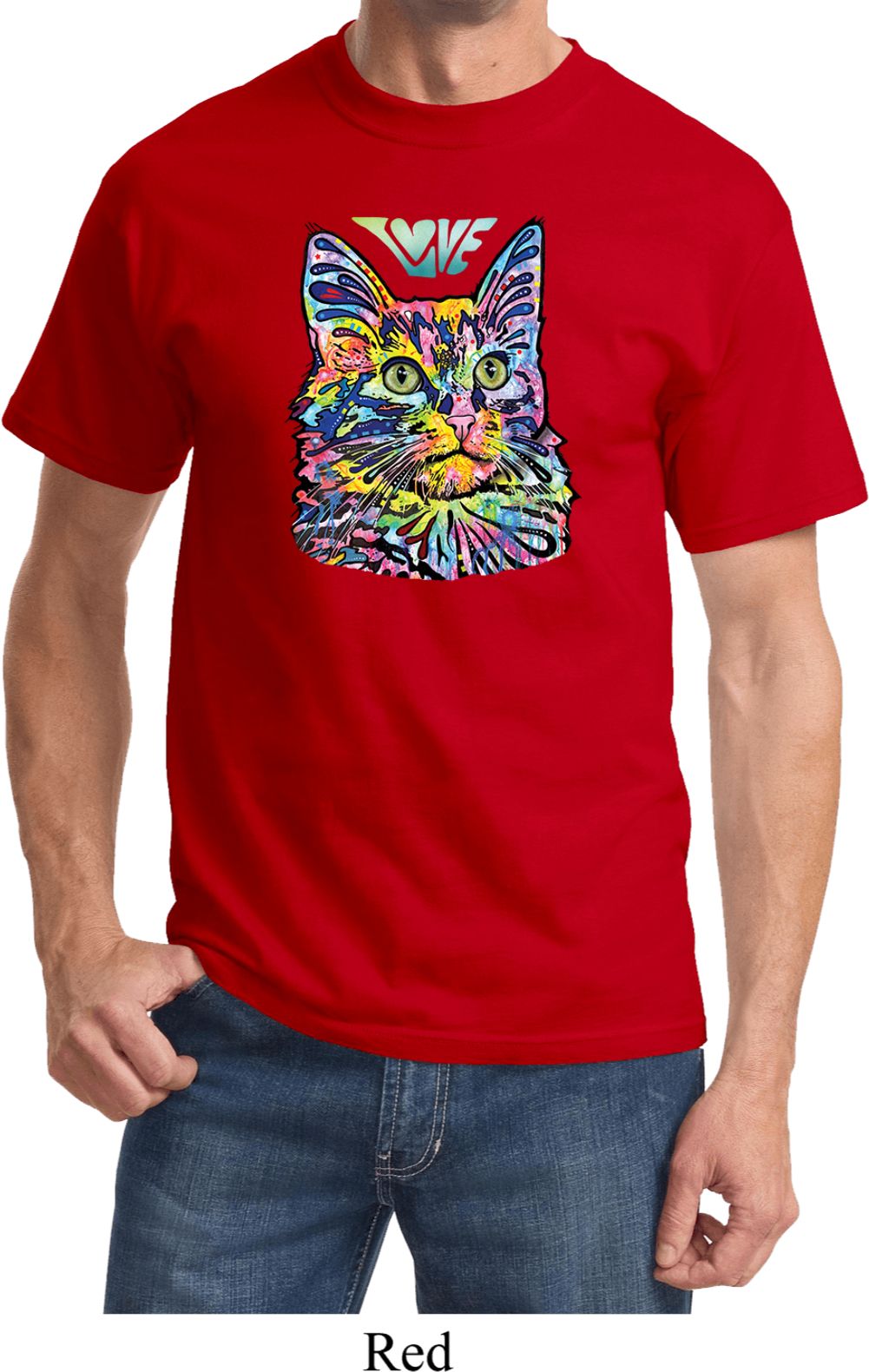 | | Mens Cat Tee Love Cat T-shirtA mens shirt featuring a colorful cat portrait with Love written above. Our mens tee makes a perfect gift for cat lovers! Made of 100% cotton. (Athletic Heather is made with a blend of cotton/poly) Available in sizes Small through 6XL. Machine wash cold with like colors; dry low heat. ![]() |