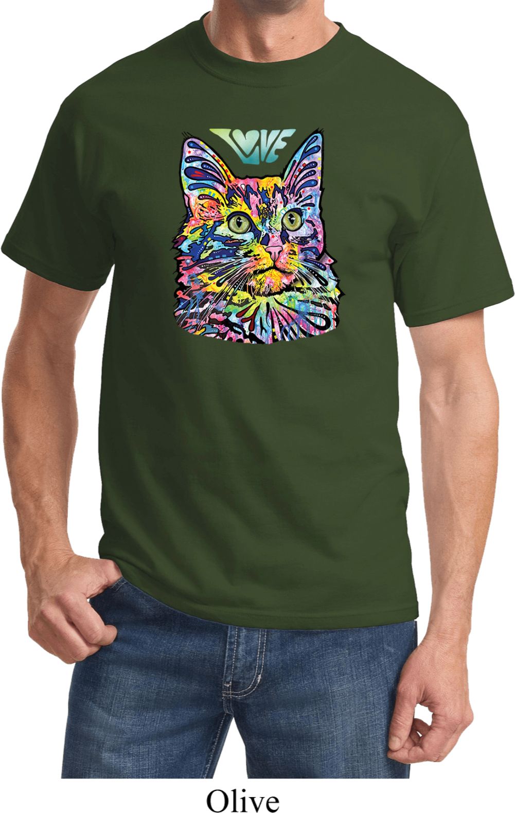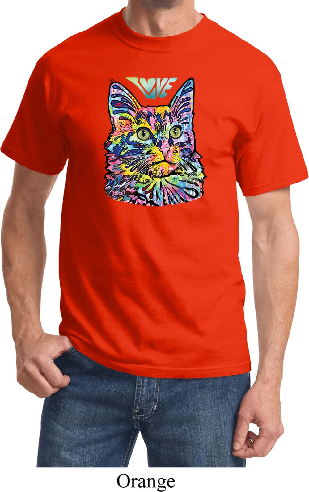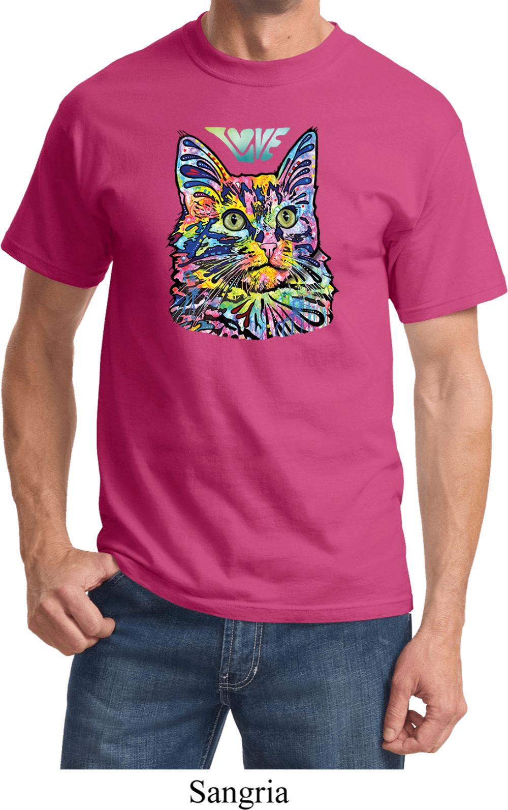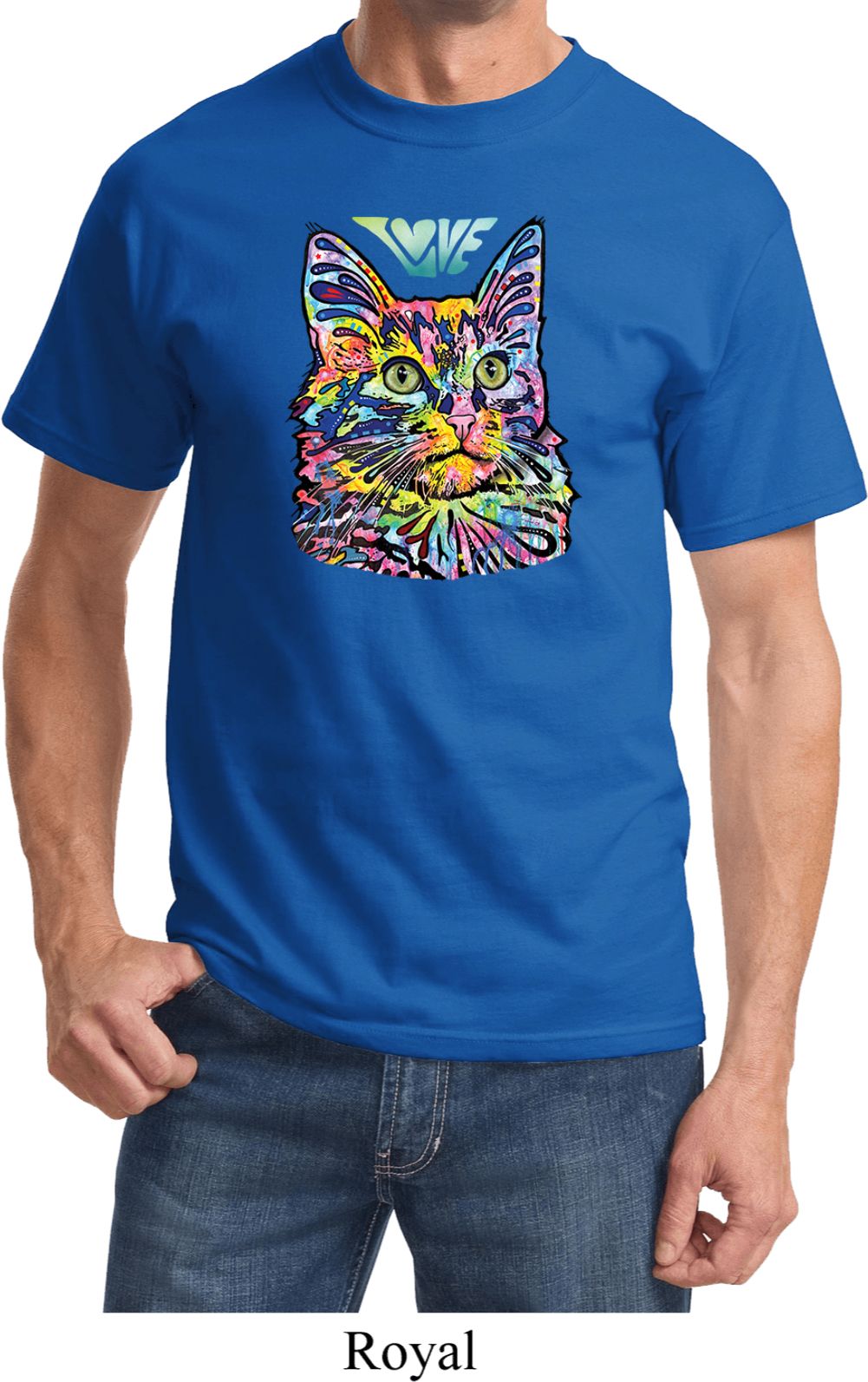| | Mens Cat Tee Love Cat T-shirtA mens shirt featuring a colorful cat portrait with Love written above. Our mens tee makes a perfect gift for cat lovers! Made of 100% cotton. (Athletic Heather is made with a blend of cotton/poly) Available in sizes Small through 6XL. Machine wash cold with like colors; dry low heat. ![]() |