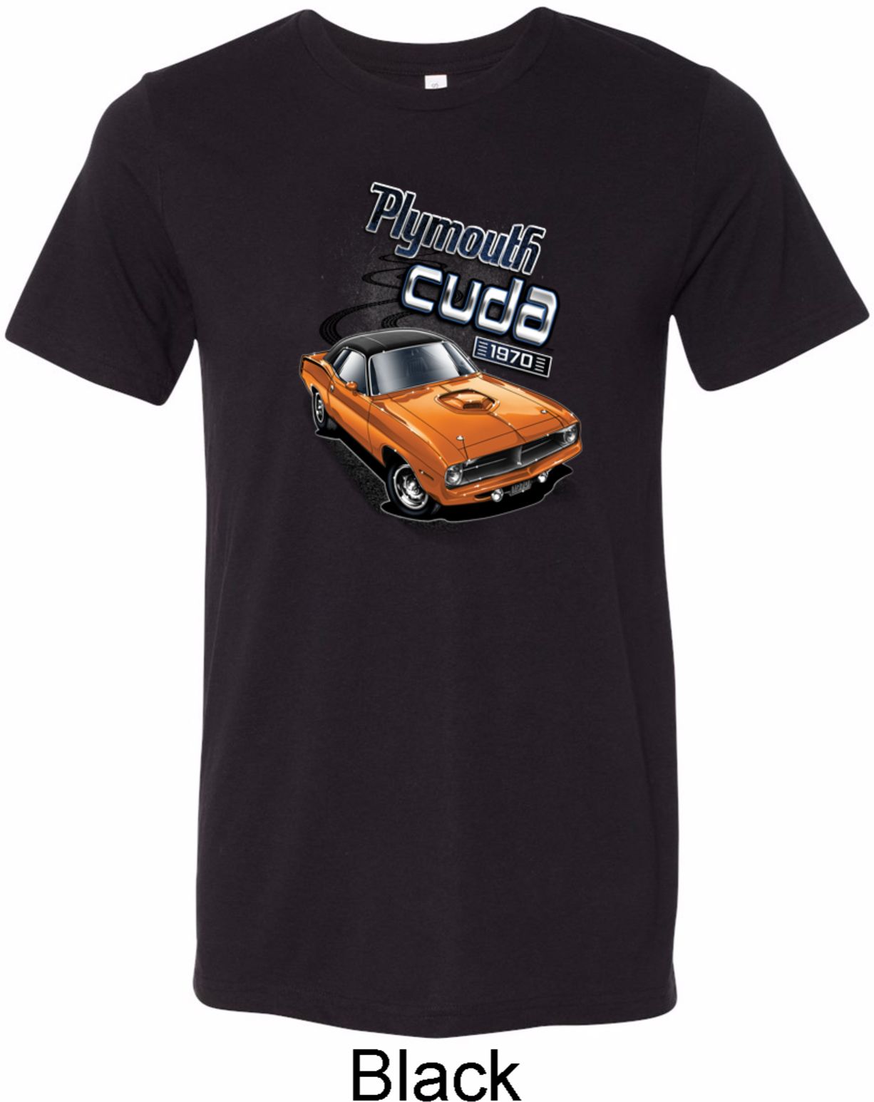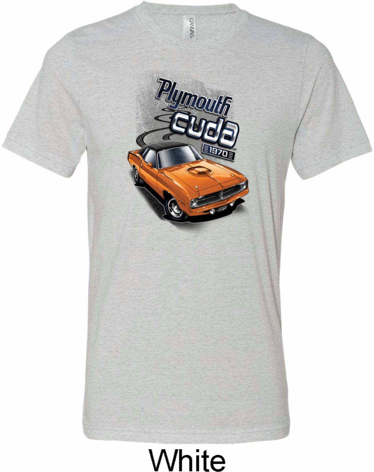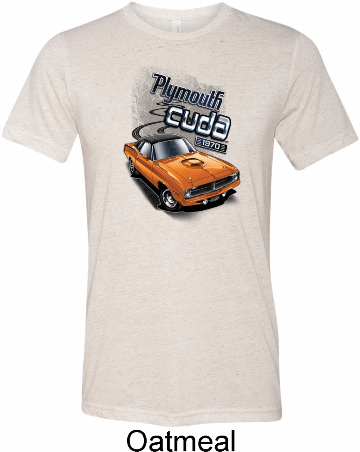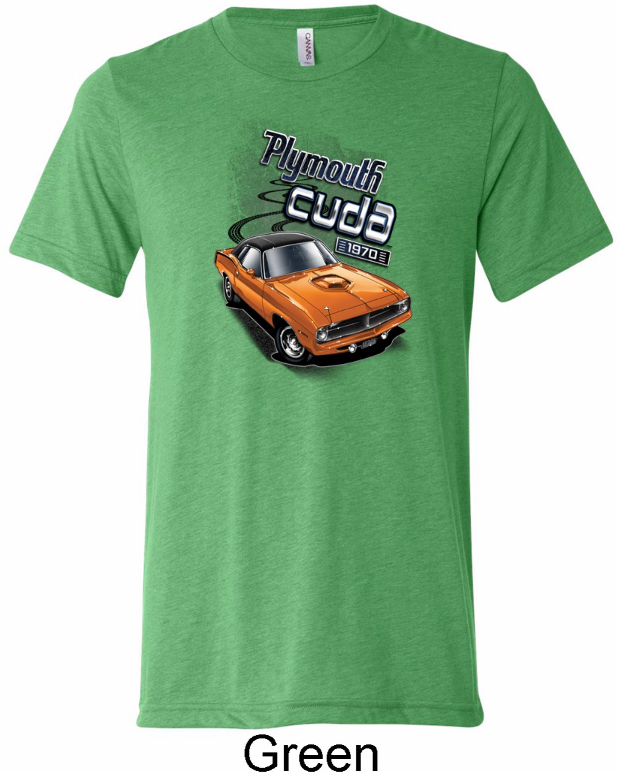 | | Mens Dodge 1970 Plymouth Hemi Cuda Tri Blend Crewneck ShirtMens Dodge 1970 Plymouth Hemi Cuda Tri Blend Crewneck Shirt A great shirt for someone who loves Dodge A cotton/poly/rayon blend Available in Small, Medium, Large, XL & 2XL Also available in colors Aqua, Athletic Grey, Berry, Blue, Brown, Charcoal Black, Clay, Emerald, Green, Grey, Maroon, Navy, Oatmeal, Orange, Purple, Red, Solid Black, Teal, Royal, and White Fleck |