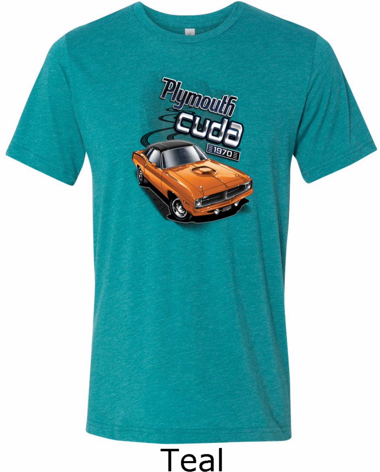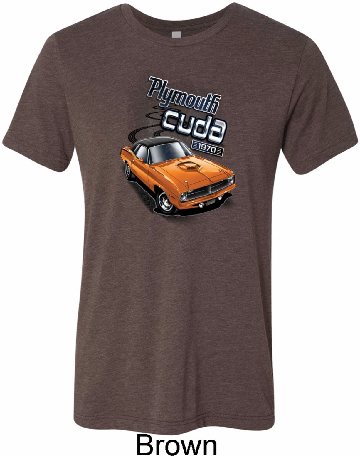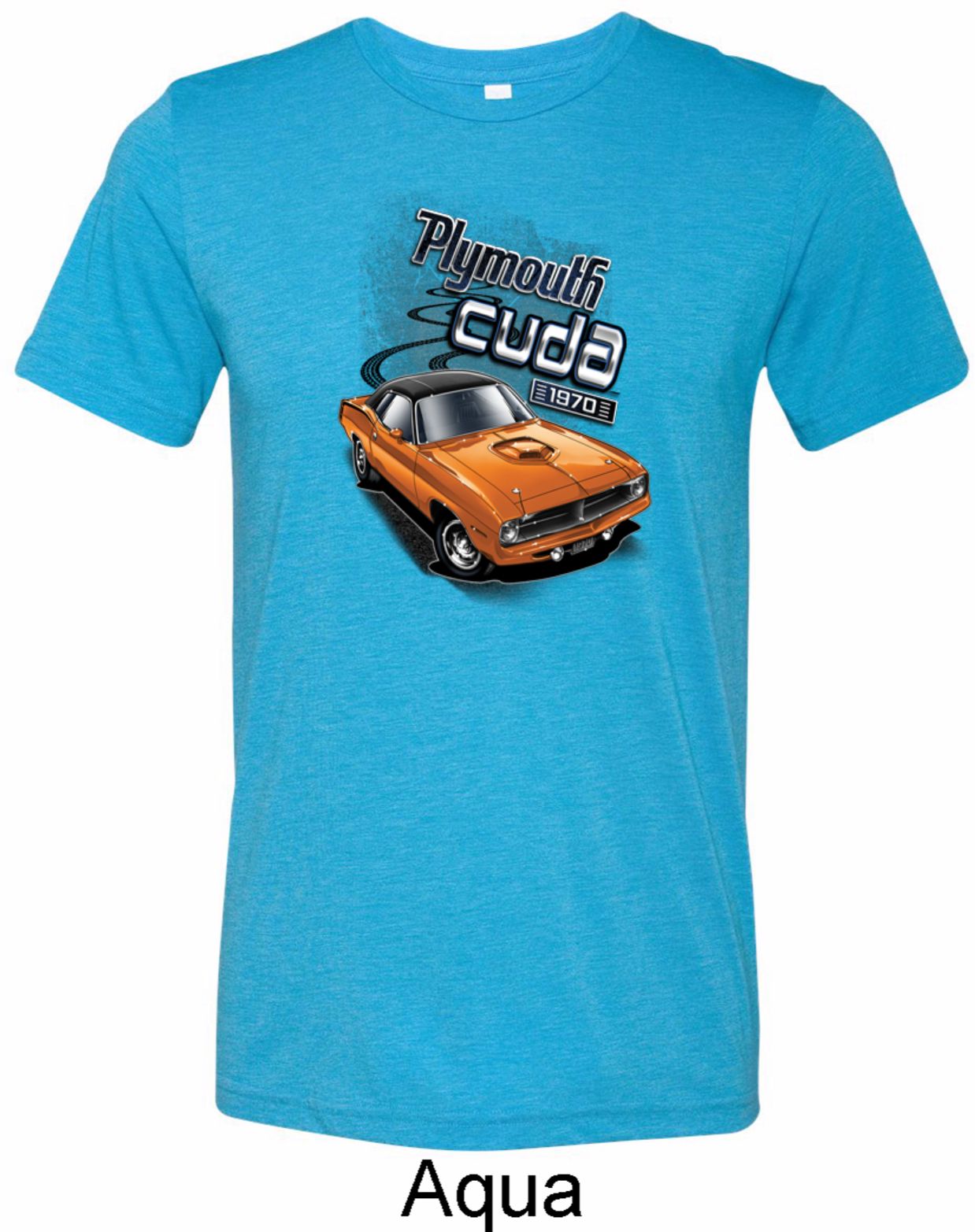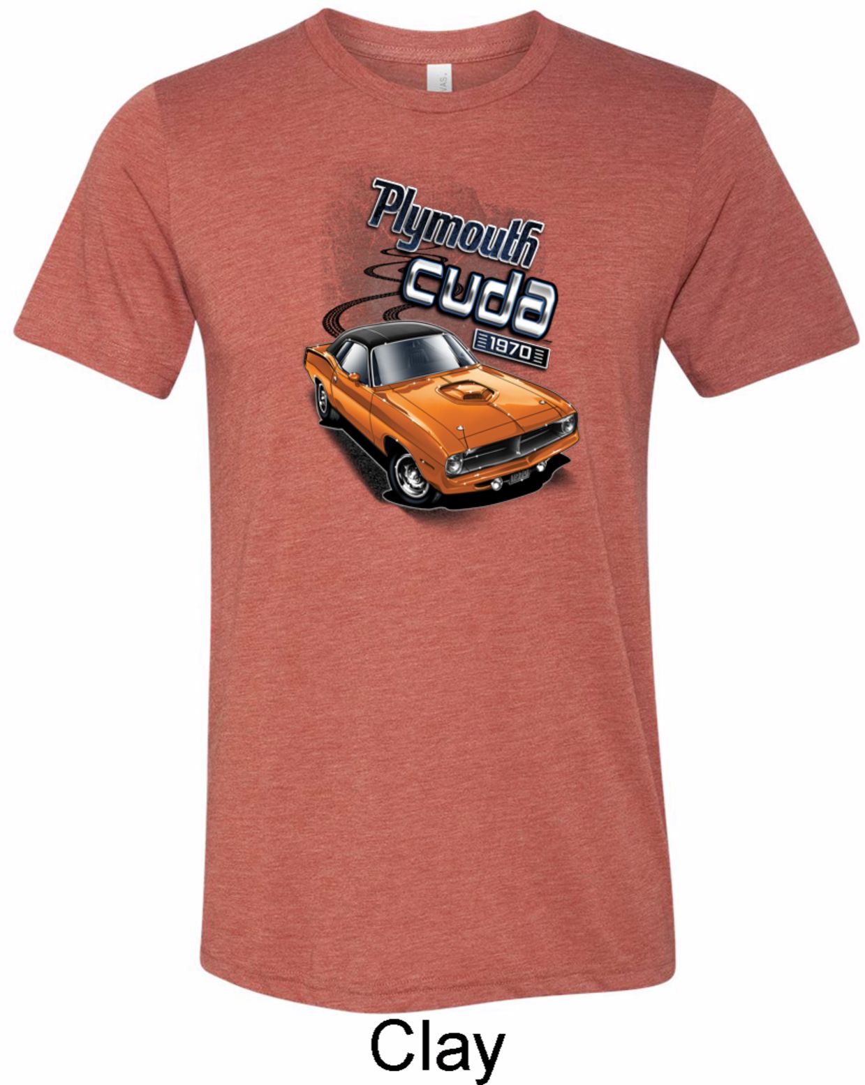 | | Mens Dodge 1970 Plymouth Hemi Cuda Tri Blend Crewneck ShirtMens Dodge 1970 Plymouth Hemi Cuda Tri Blend Crewneck Shirt A great shirt for someone who loves Dodge A cotton/poly/rayon blend Available in Small, Medium, Large, XL & 2XL Also available in colors Aqua, Athletic Grey, Berry, Blue, Brown, Charcoal Black, Clay, Emerald, Green, Grey, Maroon, Navy, Oatmeal, Orange, Purple, Red, Solid Black, Teal, Royal, and White Fleck |