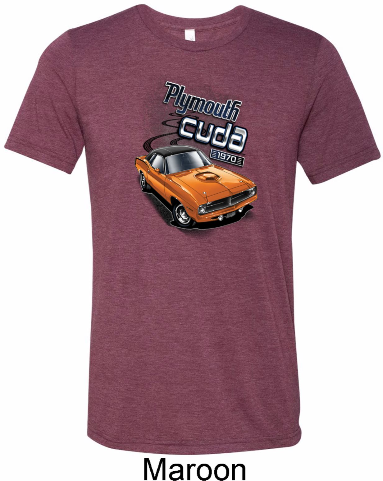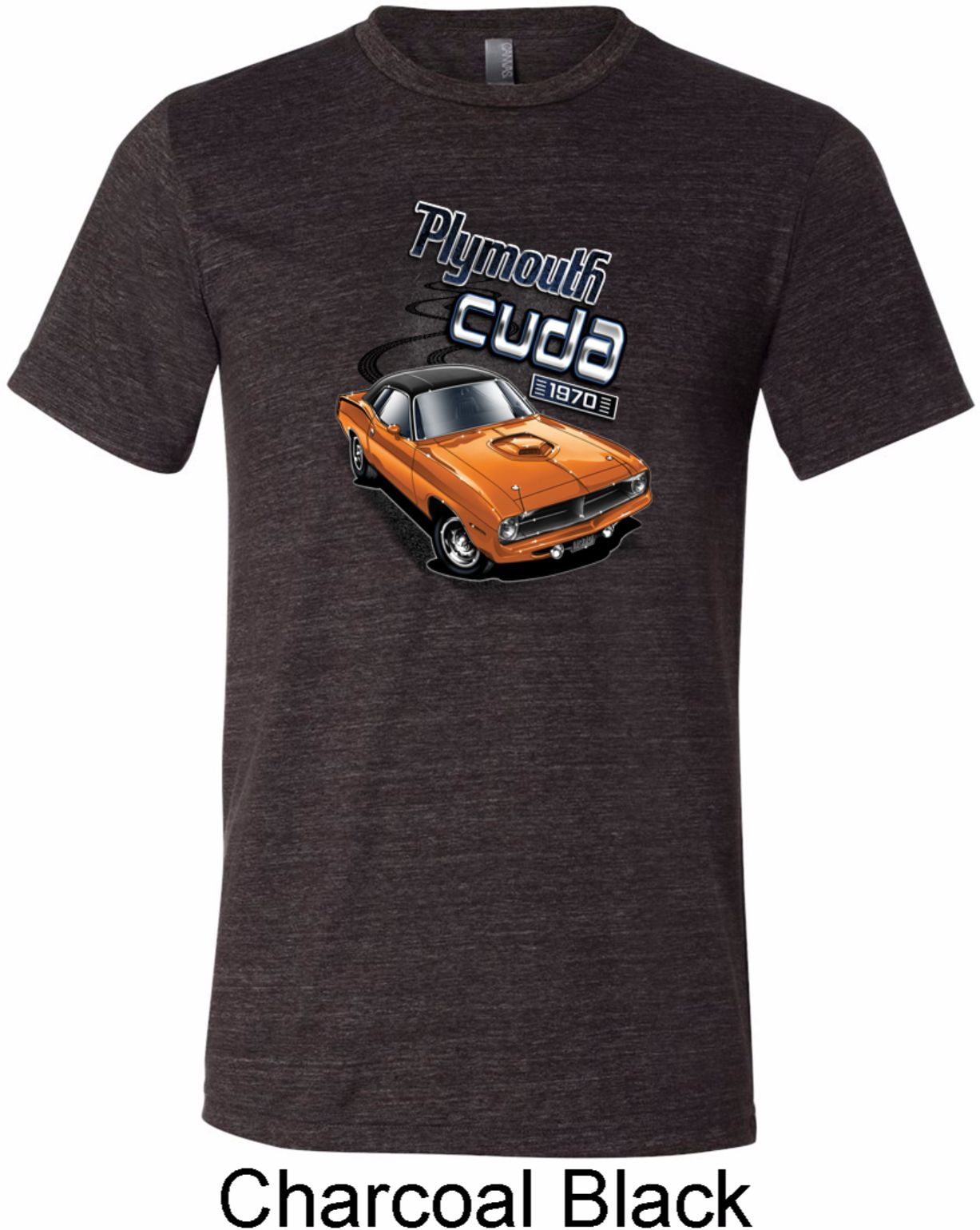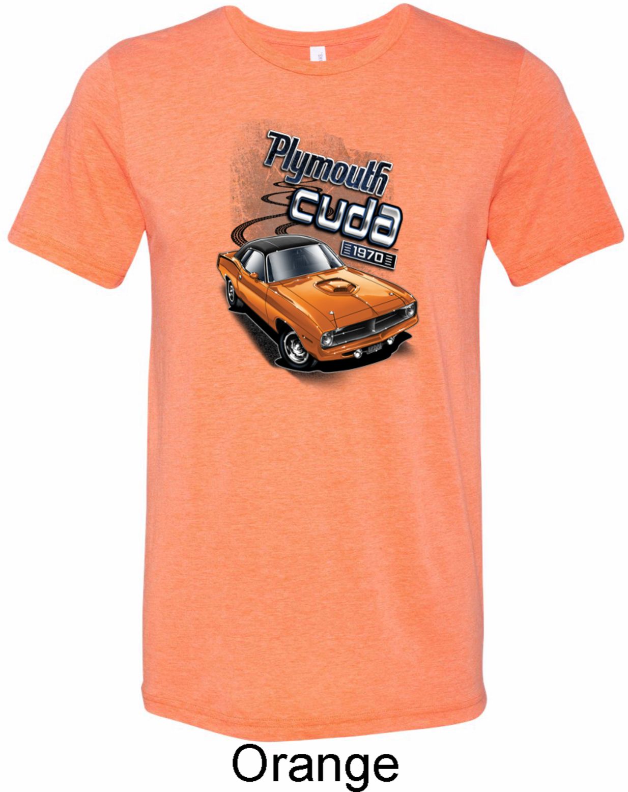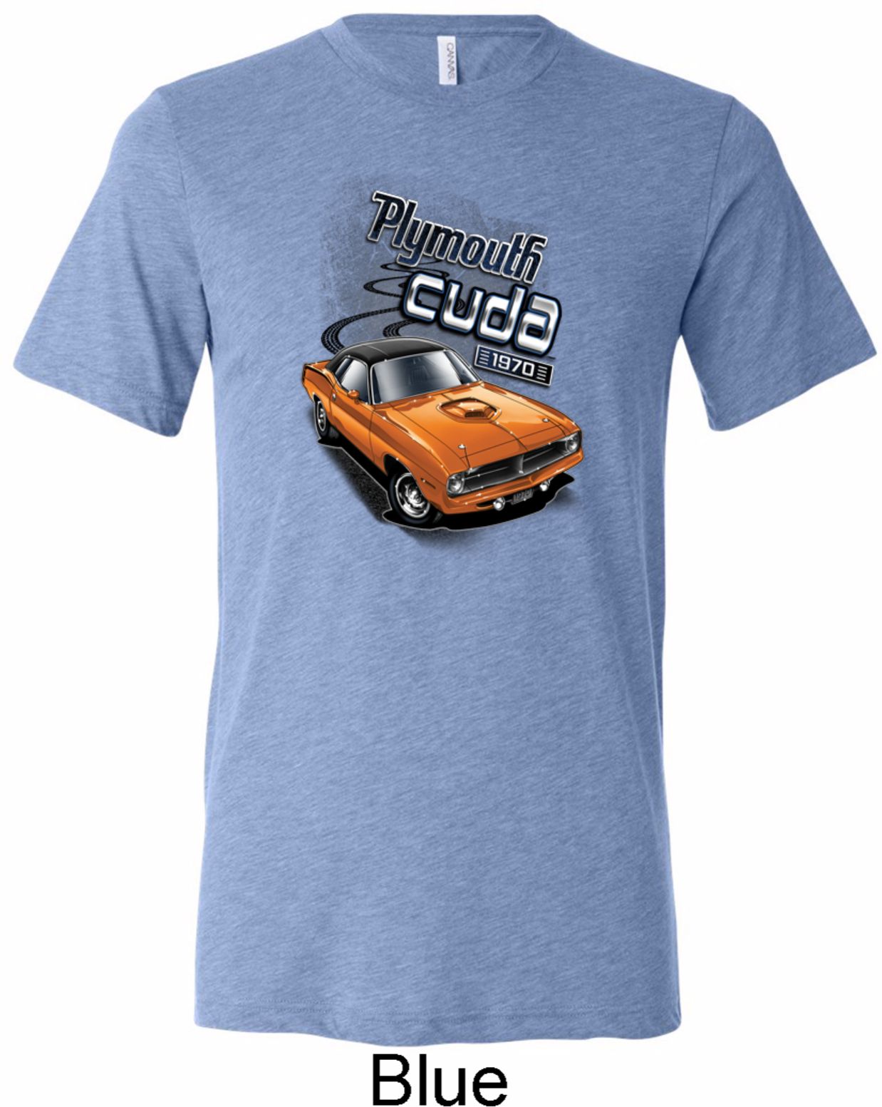 | | Mens Dodge 1970 Plymouth Hemi Cuda Tri Blend Crewneck ShirtMens Dodge 1970 Plymouth Hemi Cuda Tri Blend Crewneck Shirt A great shirt for someone who loves Dodge A cotton/poly/rayon blend Available in Small, Medium, Large, XL & 2XL Also available in colors Aqua, Athletic Grey, Berry, Blue, Brown, Charcoal Black, Clay, Emerald, Green, Grey, Maroon, Navy, Oatmeal, Orange, Purple, Red, Solid Black, Teal, Royal, and White Fleck |
