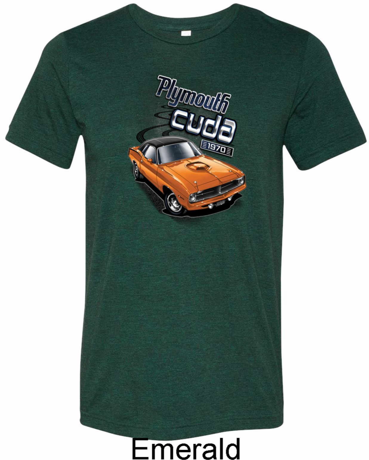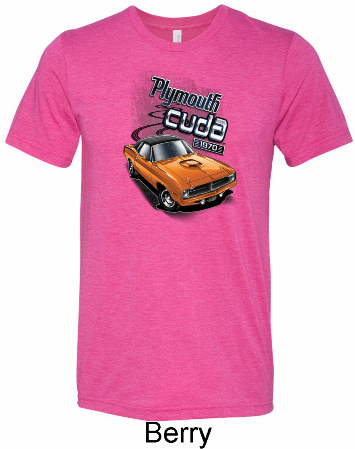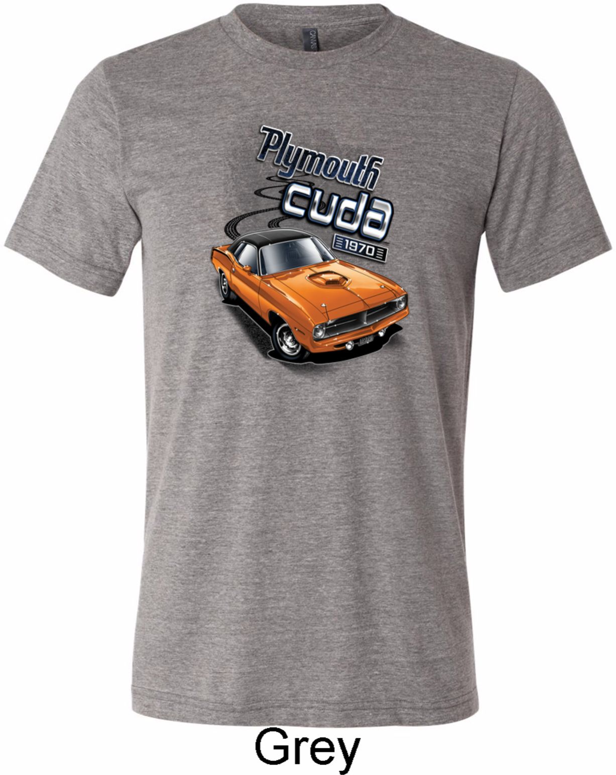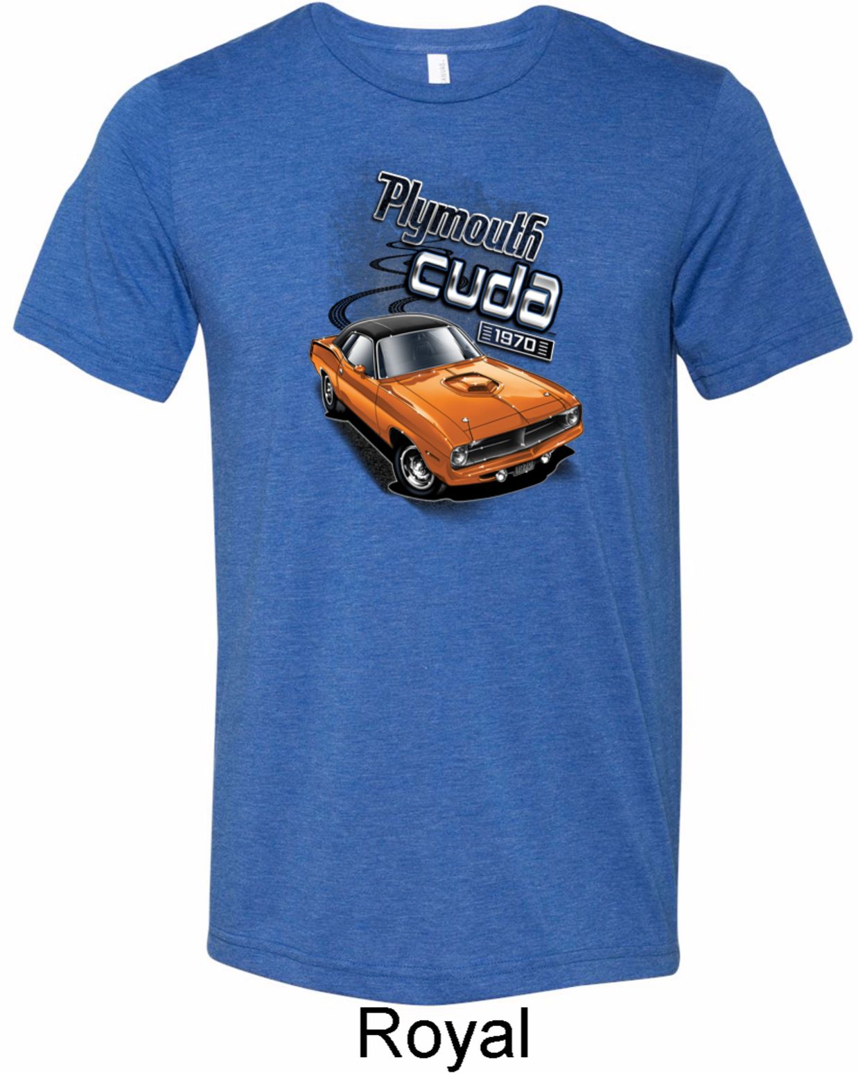 | | Mens Dodge 1970 Plymouth Hemi Cuda Tri Blend Crewneck ShirtMens Dodge 1970 Plymouth Hemi Cuda Tri Blend Crewneck Shirt A great shirt for someone who loves Dodge A cotton/poly/rayon blend Available in Small, Medium, Large, XL & 2XL Also available in colors Aqua, Athletic Grey, Berry, Blue, Brown, Charcoal Black, Clay, Emerald, Green, Grey, Maroon, Navy, Oatmeal, Orange, Purple, Red, Solid Black, Teal, Royal, and White Fleck |