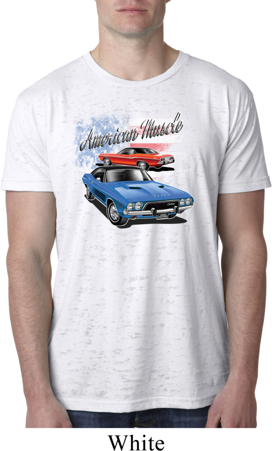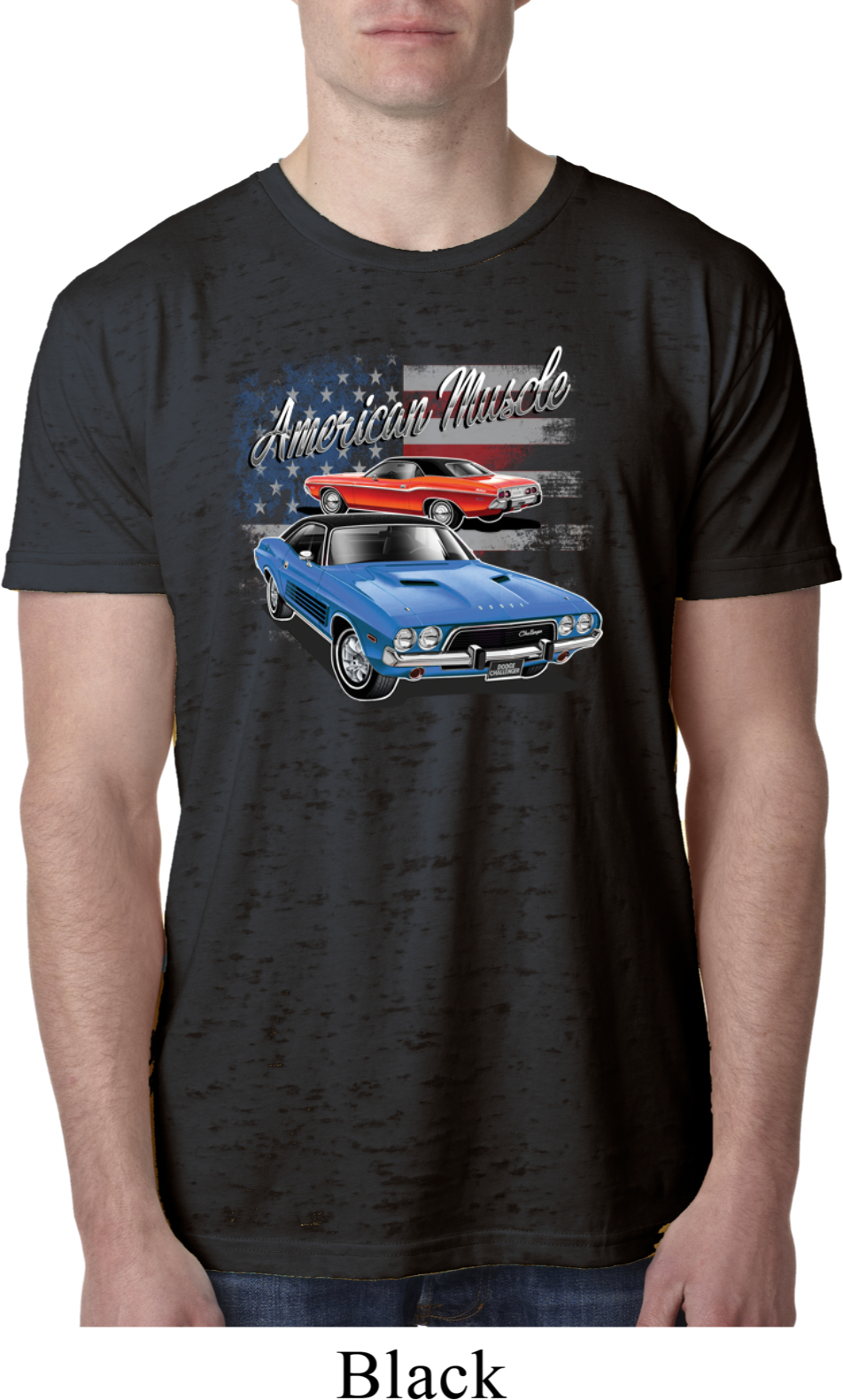 | | Mens Dodge American Muscle Blue and Red Burnout ShirtMens Dodge American Muscle Blue and Red Burnout Shirt A classic American Muscle blue and red Dodge Challenger. Makes a perfect gift for any Dodge car enthusiast! A cotton/poly blend Available in Small, Medium, Large, XL & 2XL Also available in colors Black, Dark Grey, and White |