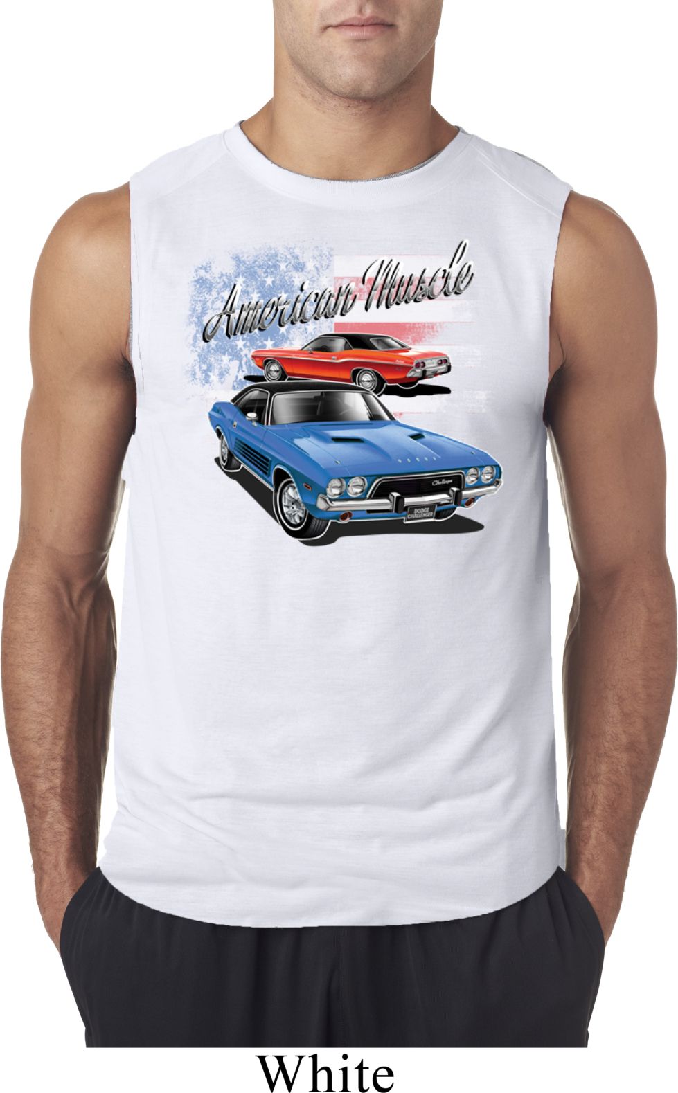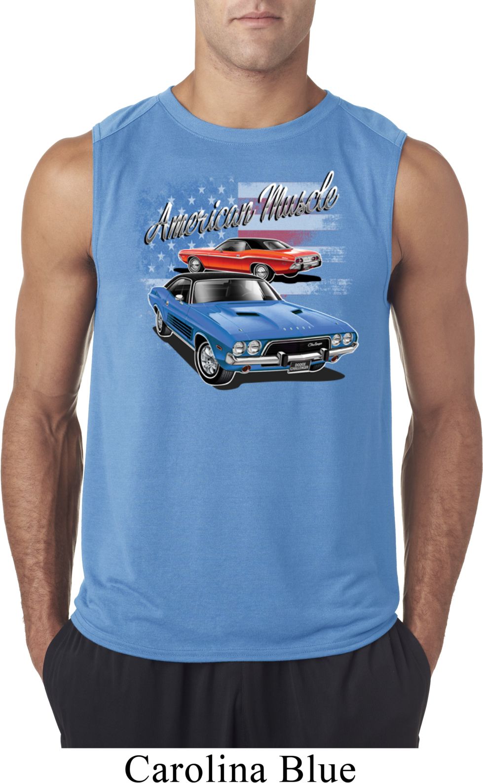 | | Mens Dodge American Muscle Blue and Red Sleeveless ShirtMens Dodge American Muscle Blue and Red Sleeveless Shirt A classic American Muscle blue and red Dodge Challenger. Makes a perfect gift for any Dodge car enthusiast! 100% polyester Athletic heather is a cotton/poly blend Available in Small, Medium, Large, XL & 2XL Also available in colors Black, Carolina Blue, Charcoal, Navy, Red, Royal, and White |