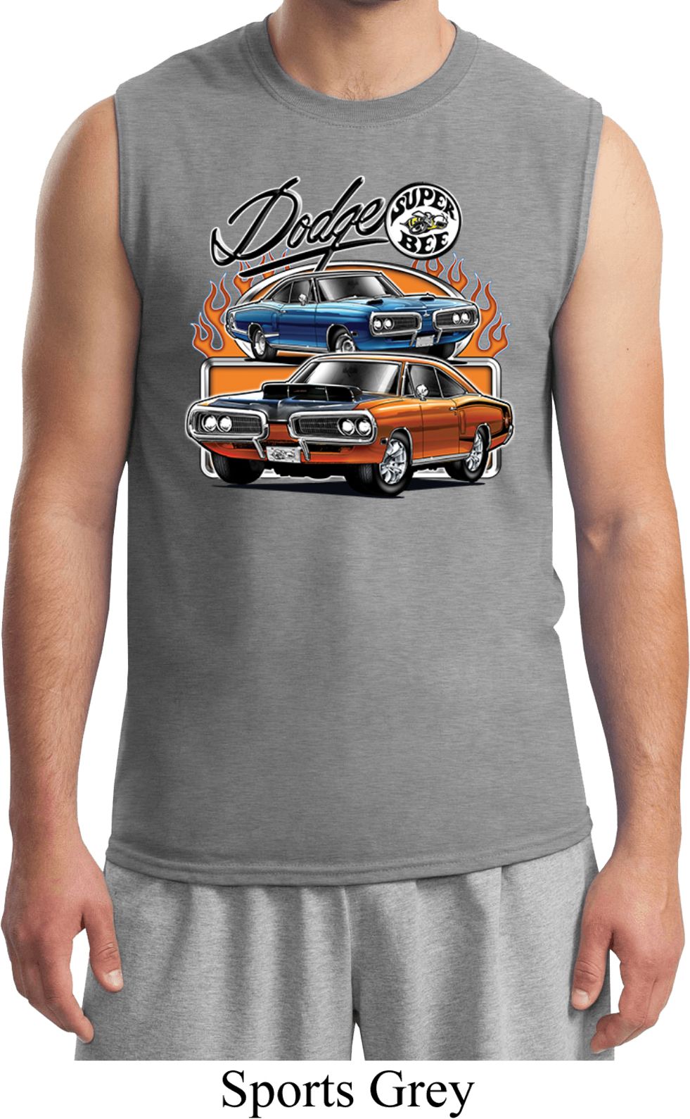 | | Mens Dodge Blue and Orange Super Bee Muscle ShirtA mens muscle shirt featuring a blue and orange Dodge Super Bee. Our mens shirt is made of 100% cotton. (Sports Grey is made with a blend of cotton/poly) Available in sizes Small through 2XL. Machine wash cold with like colors; dry low heat. ![]() |