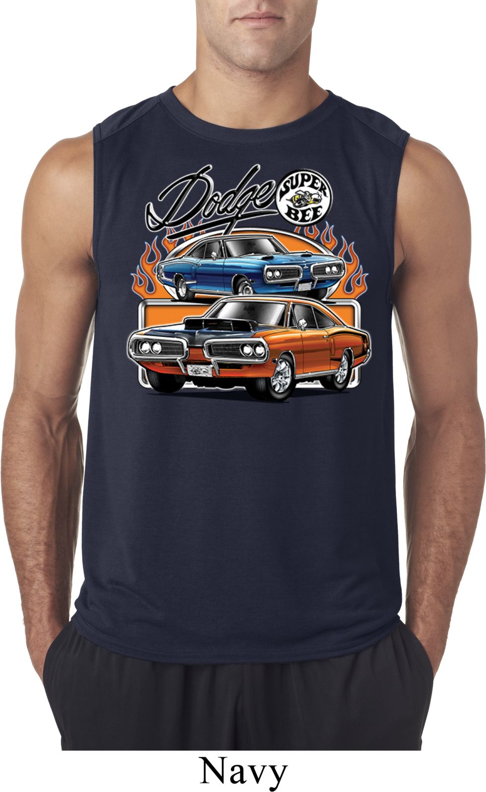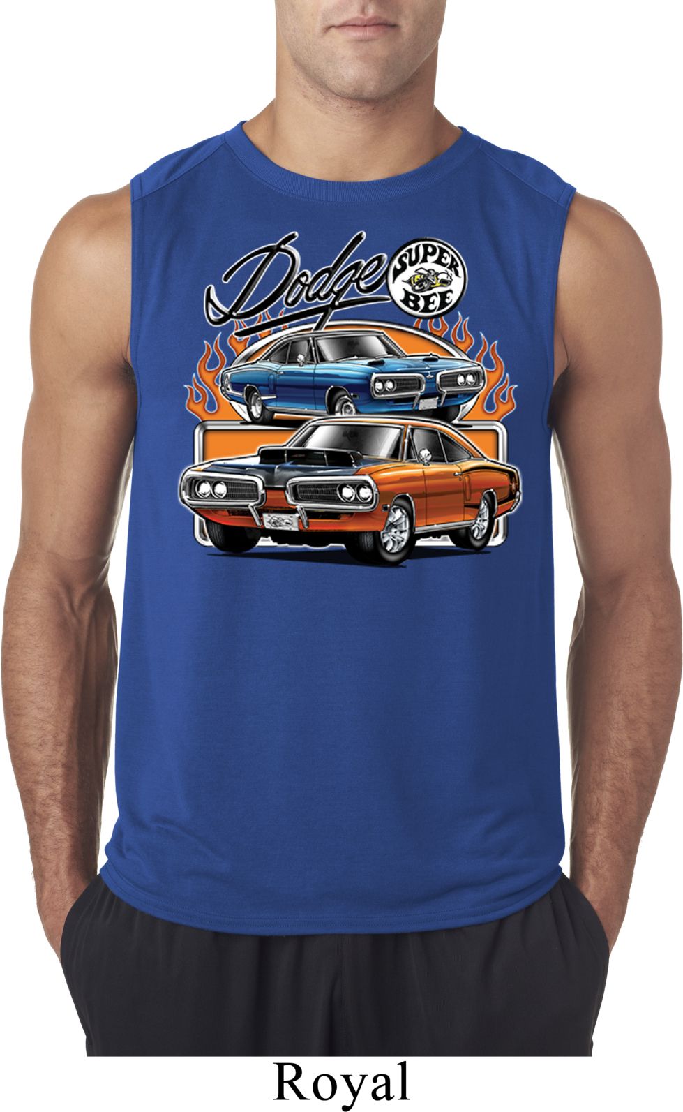 | | Mens Dodge Blue and Orange Super Bee Sleeveless ShirtA mens dry wicking sleeveless shirt featuring a blue and orange Dodge Super Bee. Our mens shirt is made of 100% polyester. Available in sizes Small through 2XL. Machine wash cold with like colors; dry low heat. ![]() |