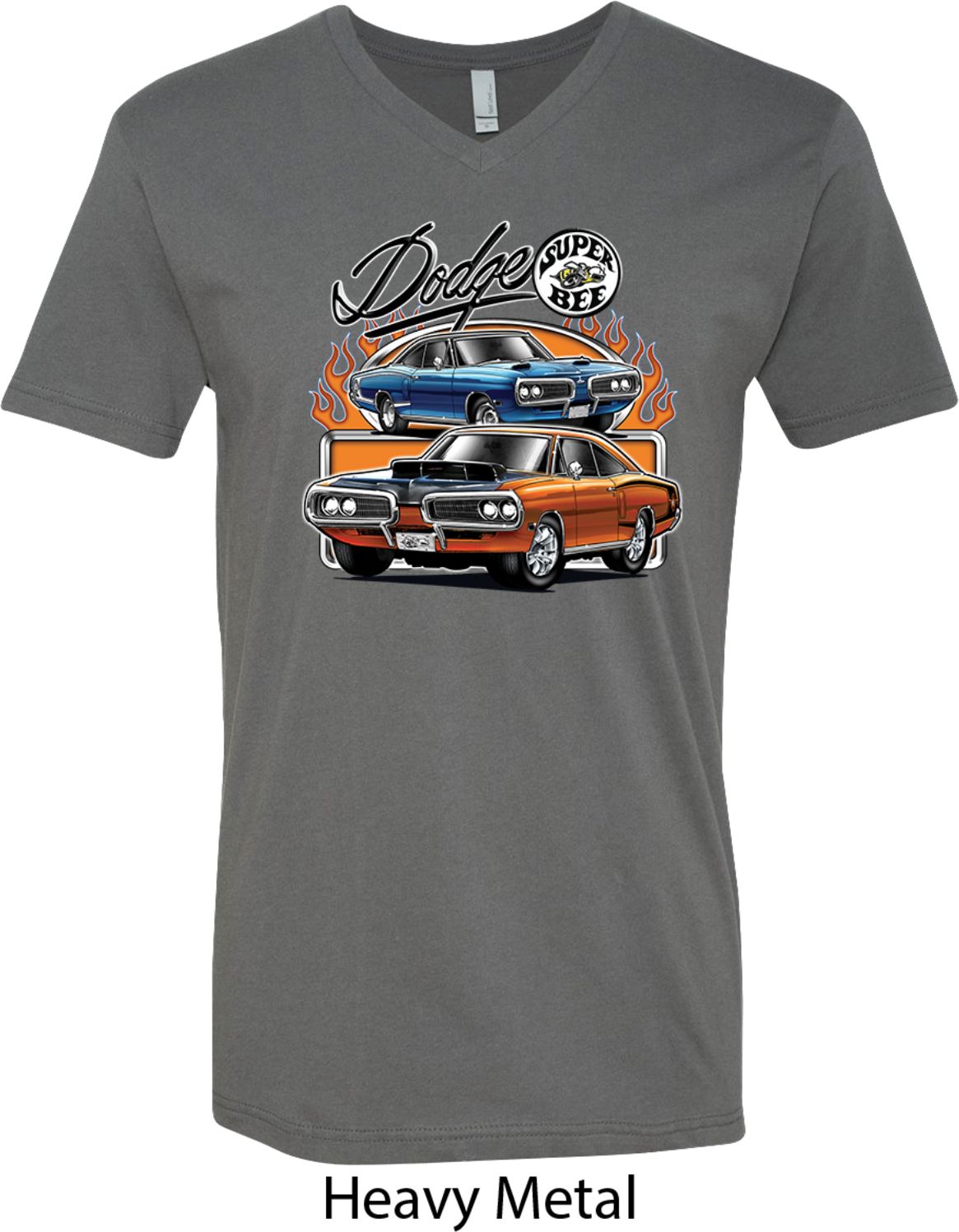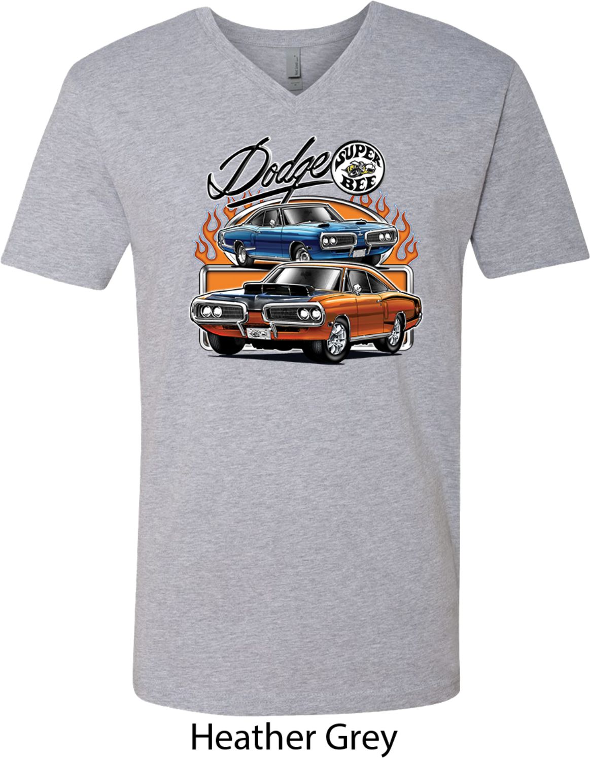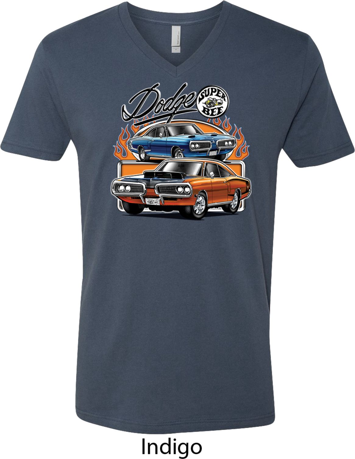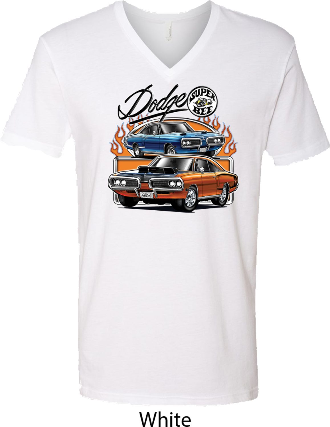 | | Mens Dodge Blue and Orange Super Bee V-neckA mens v-neck featuring a blue and orange Dodge Super Bee. Our mens tee is made of 100% cotton. (Heather Grey is made with a blend of cotton/poly) Available in sizes Small through 2XL. Machine wash cold with like colors; dry low heat. ![]() |