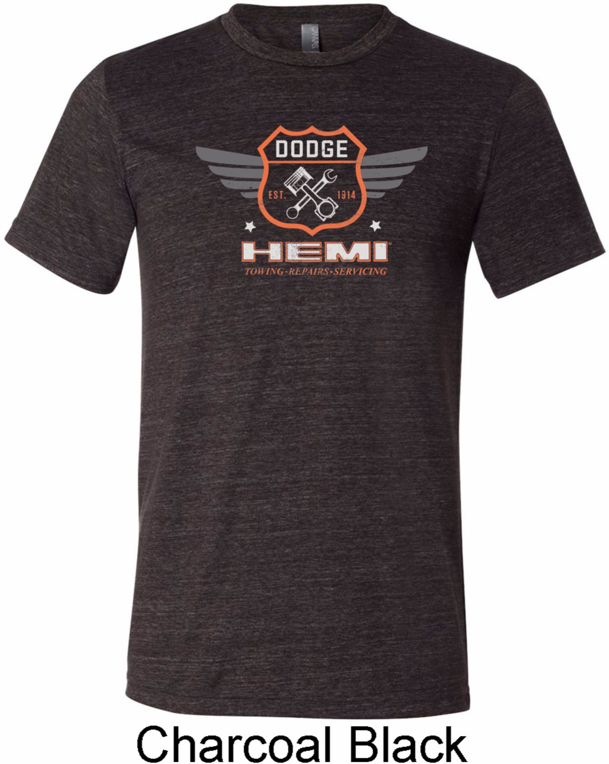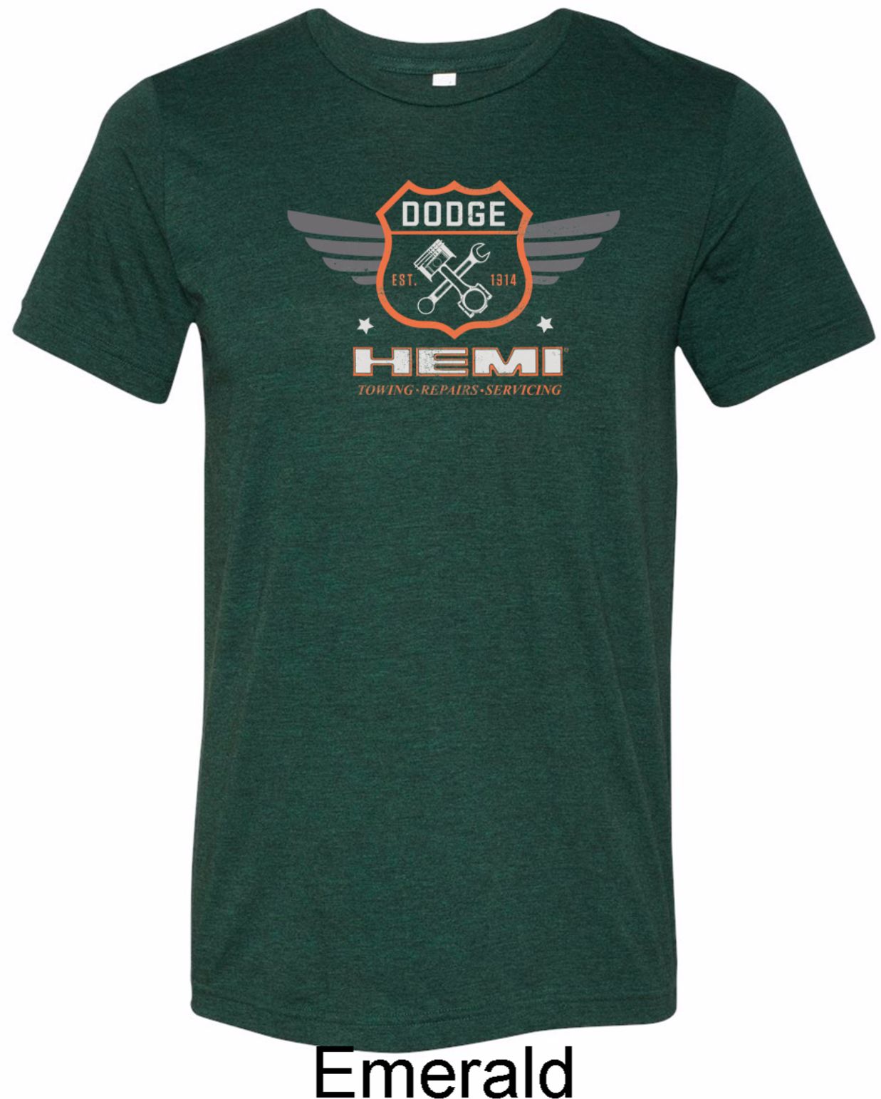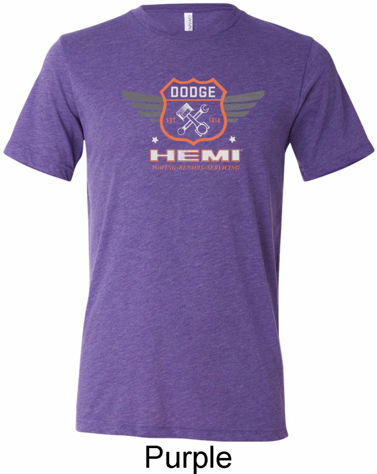 | | Mens Dodge Garage Hemi Tri Blend Crewneck ShirtMens Dodge Garage Hemi Tri Blend Crewneck Shirt A great shirt for someone who loves Dodge A cotton/poly/rayon blend Available in Small, Medium, Large, XL & 2XL Also available in colors Brown, Charcoal Black, Emerald, Navy, Purple, Solid Black, Teal, and Royal |