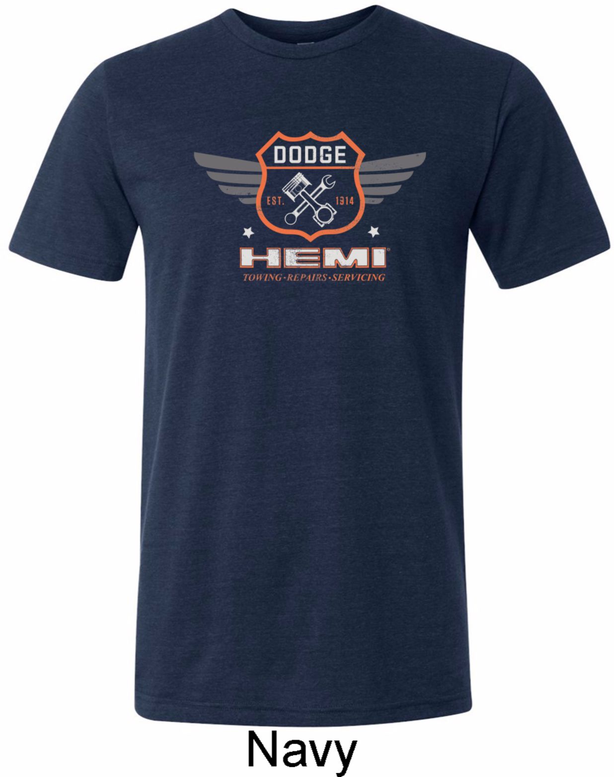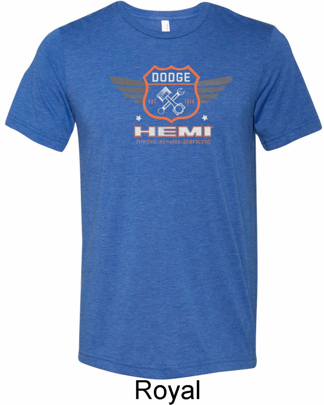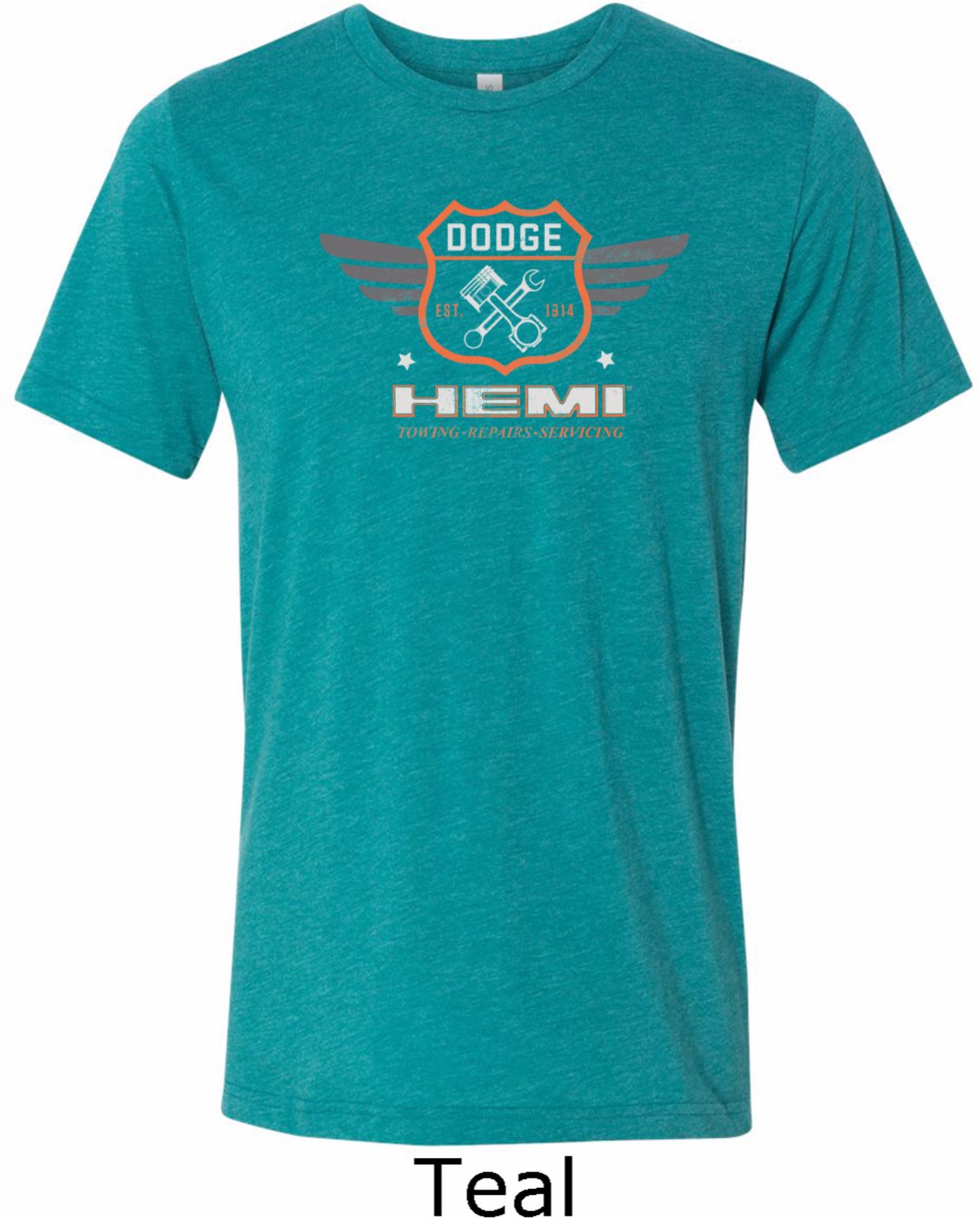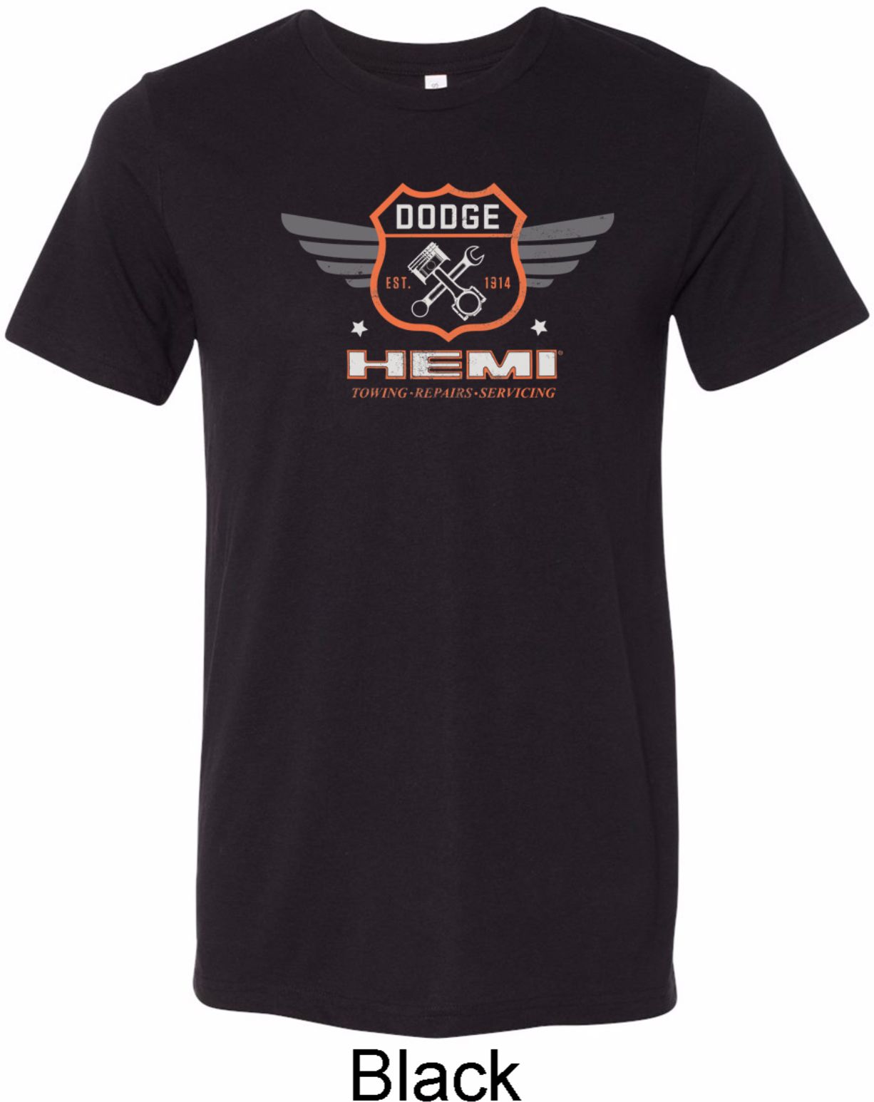 | | Mens Dodge Garage Hemi Tri Blend Crewneck ShirtMens Dodge Garage Hemi Tri Blend Crewneck Shirt A great shirt for someone who loves Dodge A cotton/poly/rayon blend Available in Small, Medium, Large, XL & 2XL Also available in colors Brown, Charcoal Black, Emerald, Navy, Purple, Solid Black, Teal, and Royal |