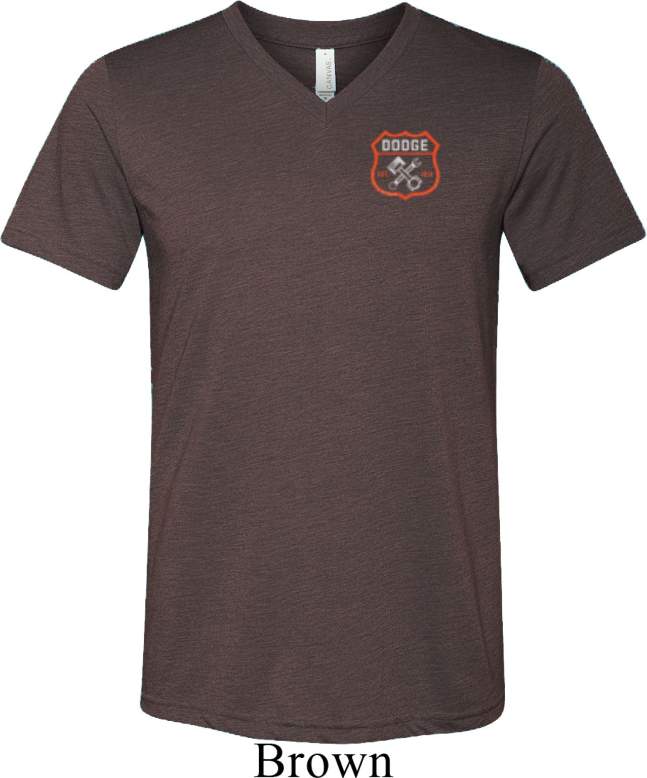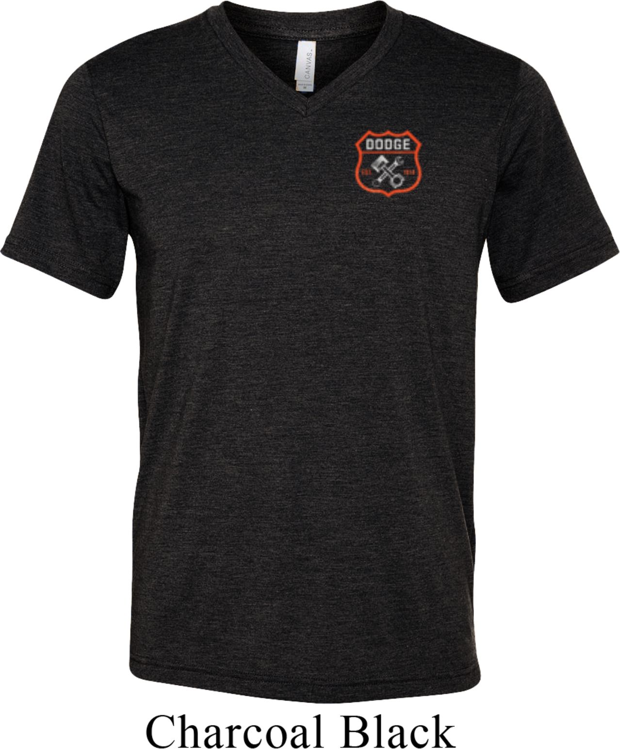 | | Mens Dodge Garage Pocket Print Tri Blend V-neck ShirtMens Dodge Garage Pocket Print Tri Blend V-neck Shirt A great shirt for someone who loves Dodge A cotton/poly/rayon blend Available in Small, Medium, Large, XL & 2XL Also available in colors Brown, Charcoal Black, Green, Navy, Royal, and Teal |