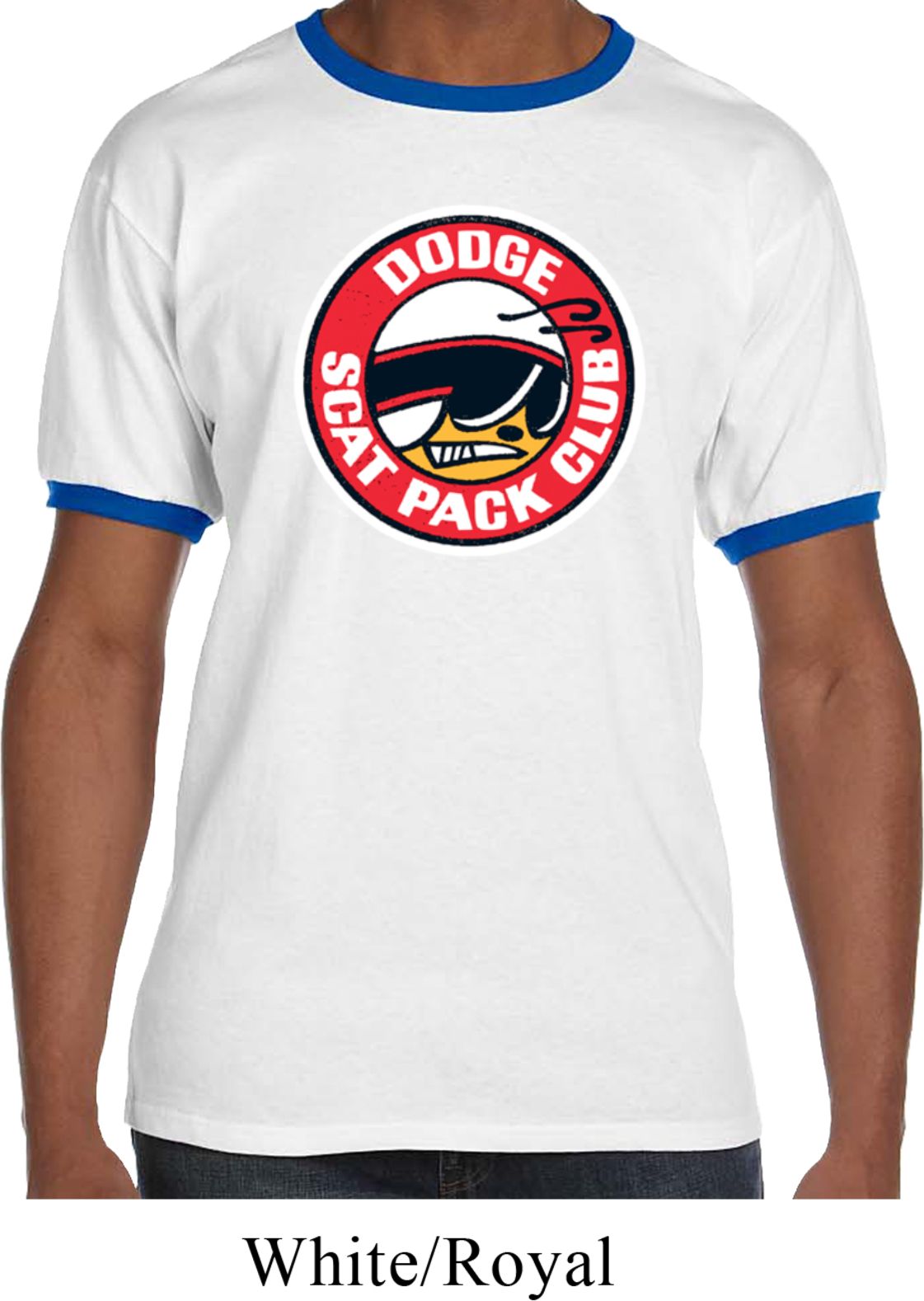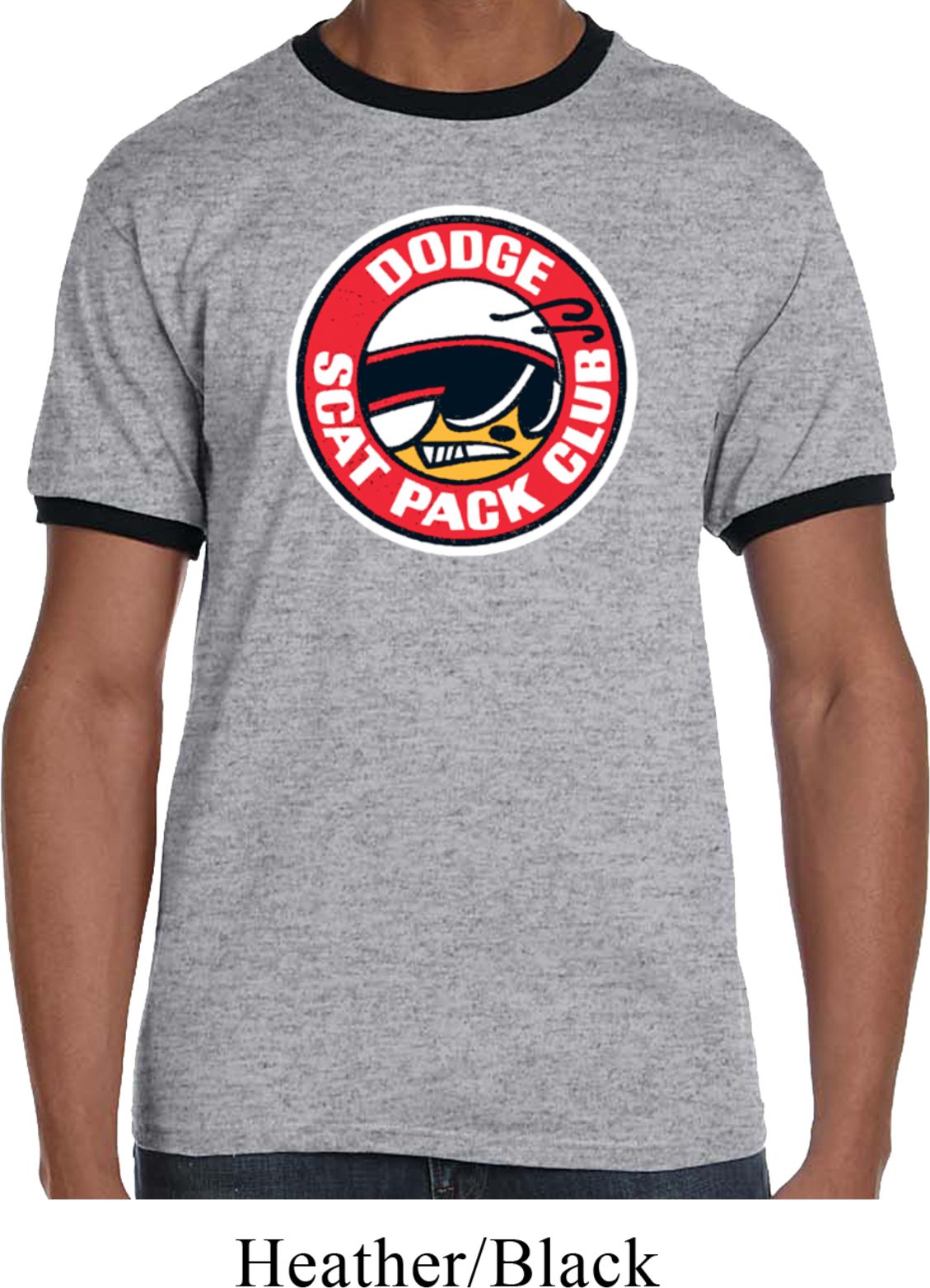 | | Mens Dodge Shirt Dodge Scat Pack Club Ringer Tee T-ShirtMens Dodge Shirt Dodge Scat Pack Club Ringer Tee T-Shirt 100% cotton Heather grey/black is a cotton/poly blend Available in Small, Medium, Large, XL & 2XL Also available in colors Carolina Blue/Navy, Grey/Black, White/Black, White/Navy, White/Red, and White/Royal ![]() |
