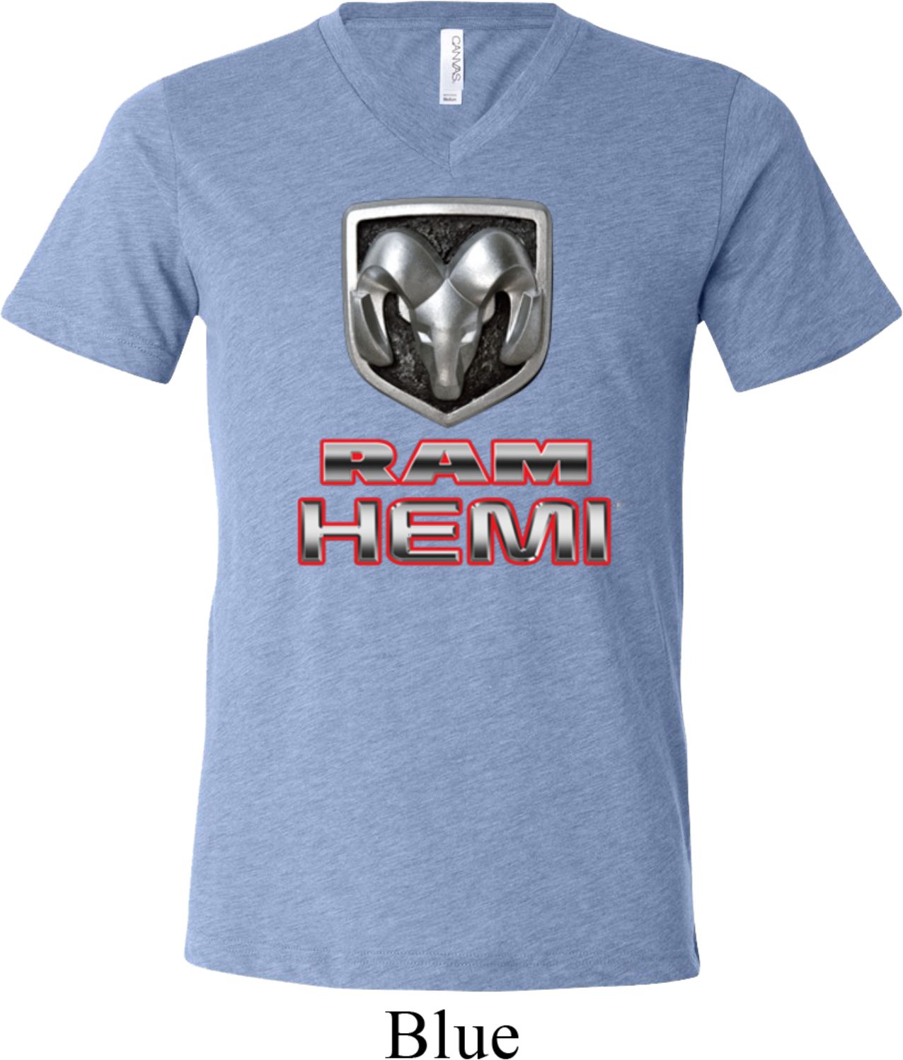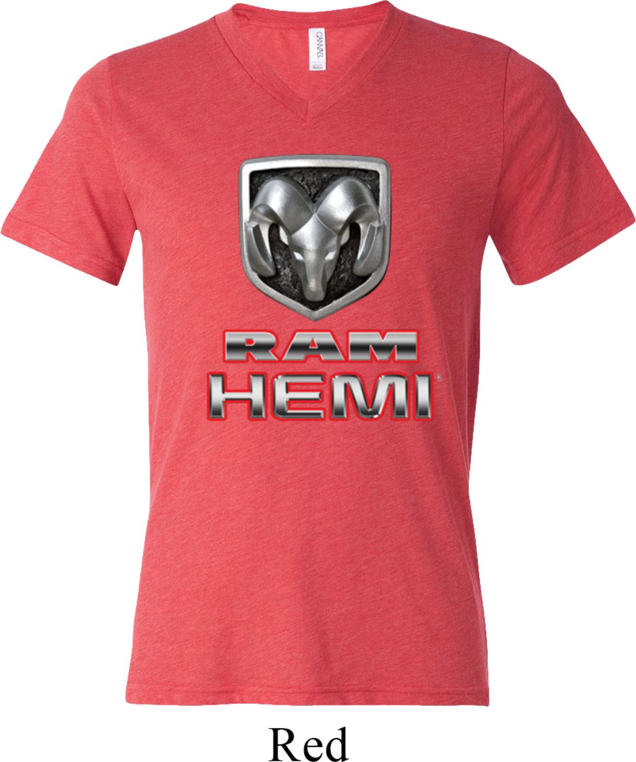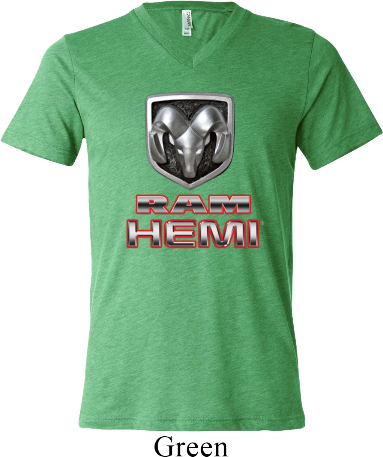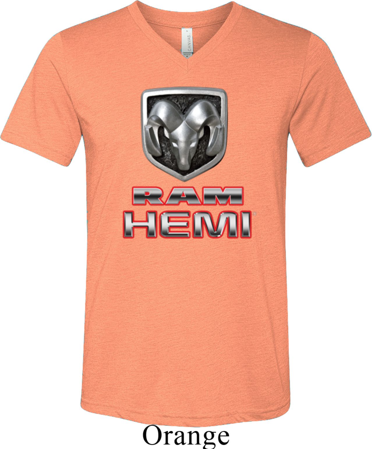 | | Mens Dodge Shirt Ram Hemi Logo Tri Blend V-neck Tee T-ShirtMens Dodge Shirt Ram Hemi Logo Tri Blend V-neck Tee T-Shirt A cotton/poly/rayon blend Available in Small, Medium, Large, XL & 2XL Also available in colors Aqua, Athletic Grey, Blue, Brown, Charcoal Black, Clay, Green, Grey, Maroon, Navy, Oatmeal, Orange, Red, Royal, Teal, and White |