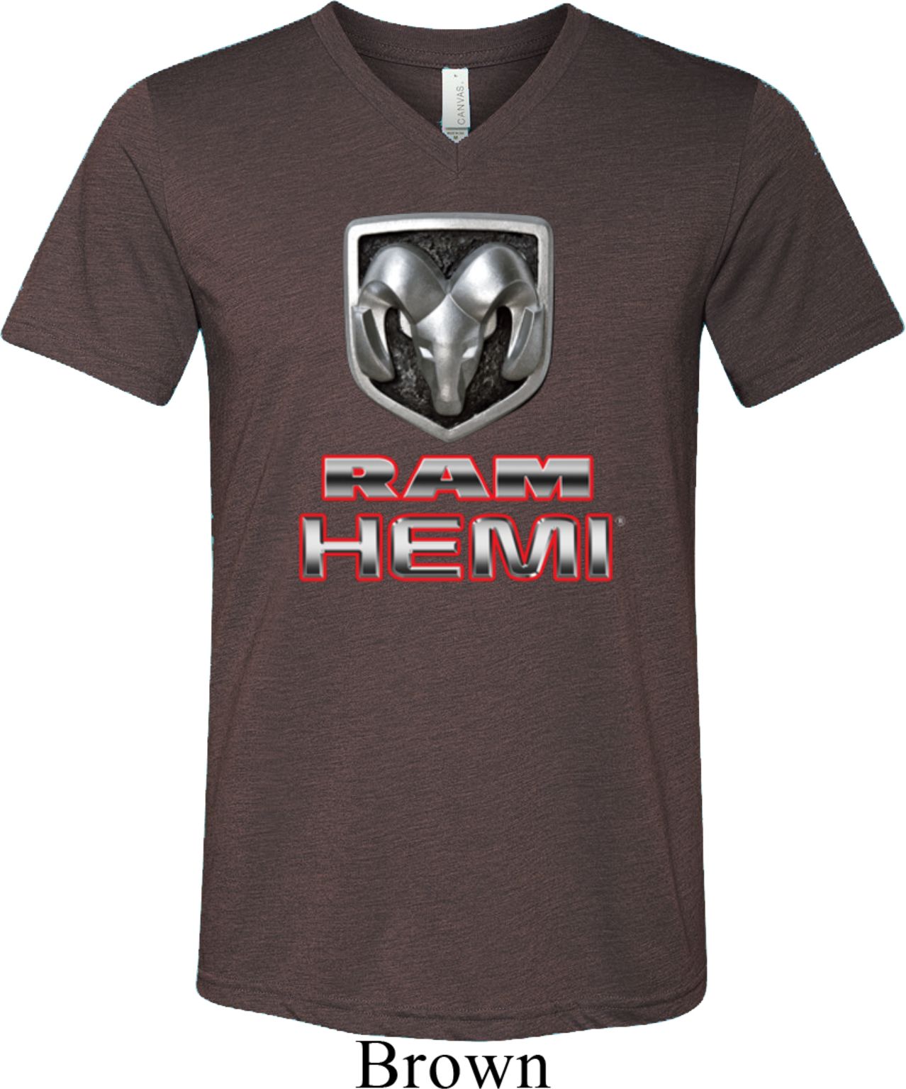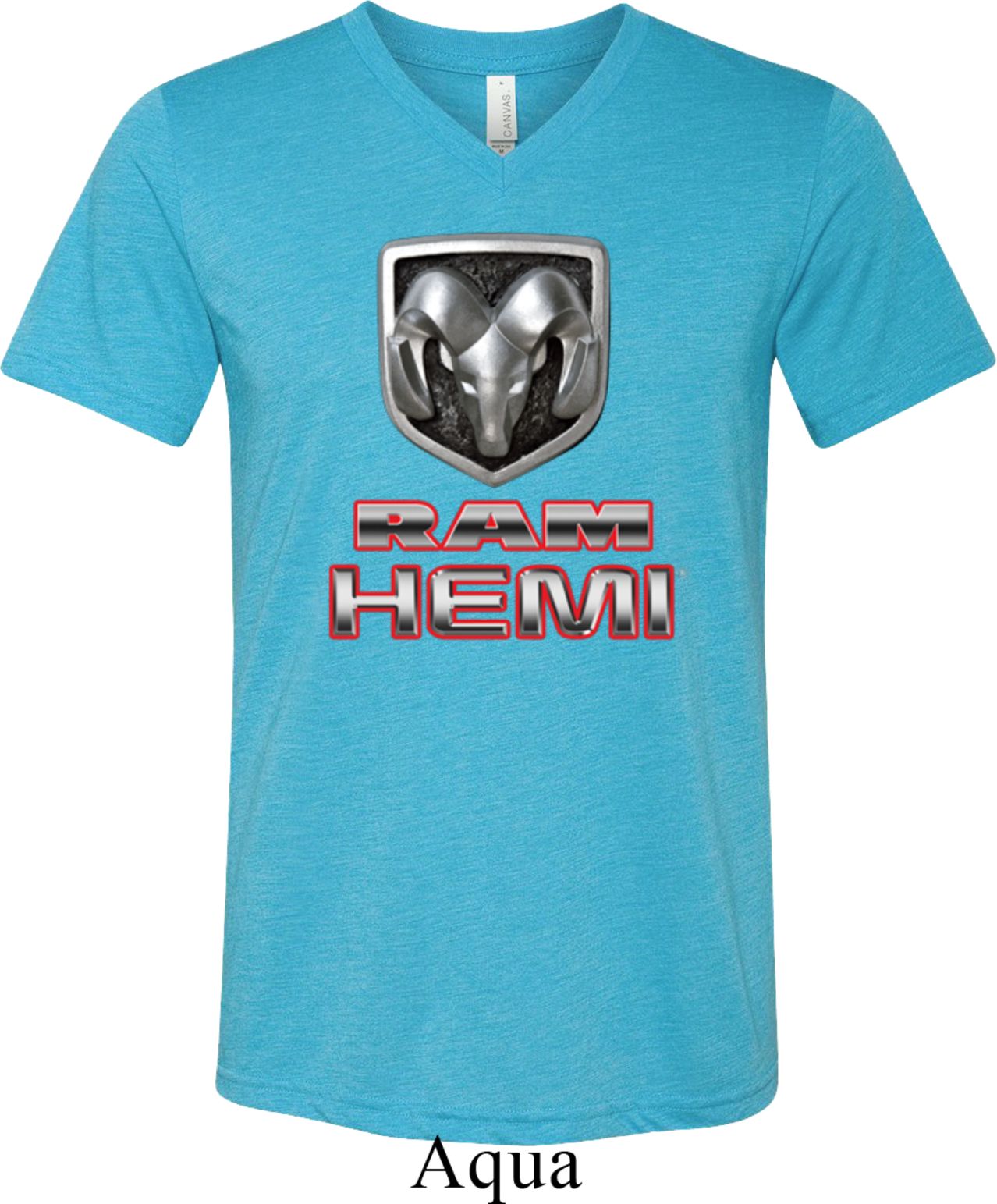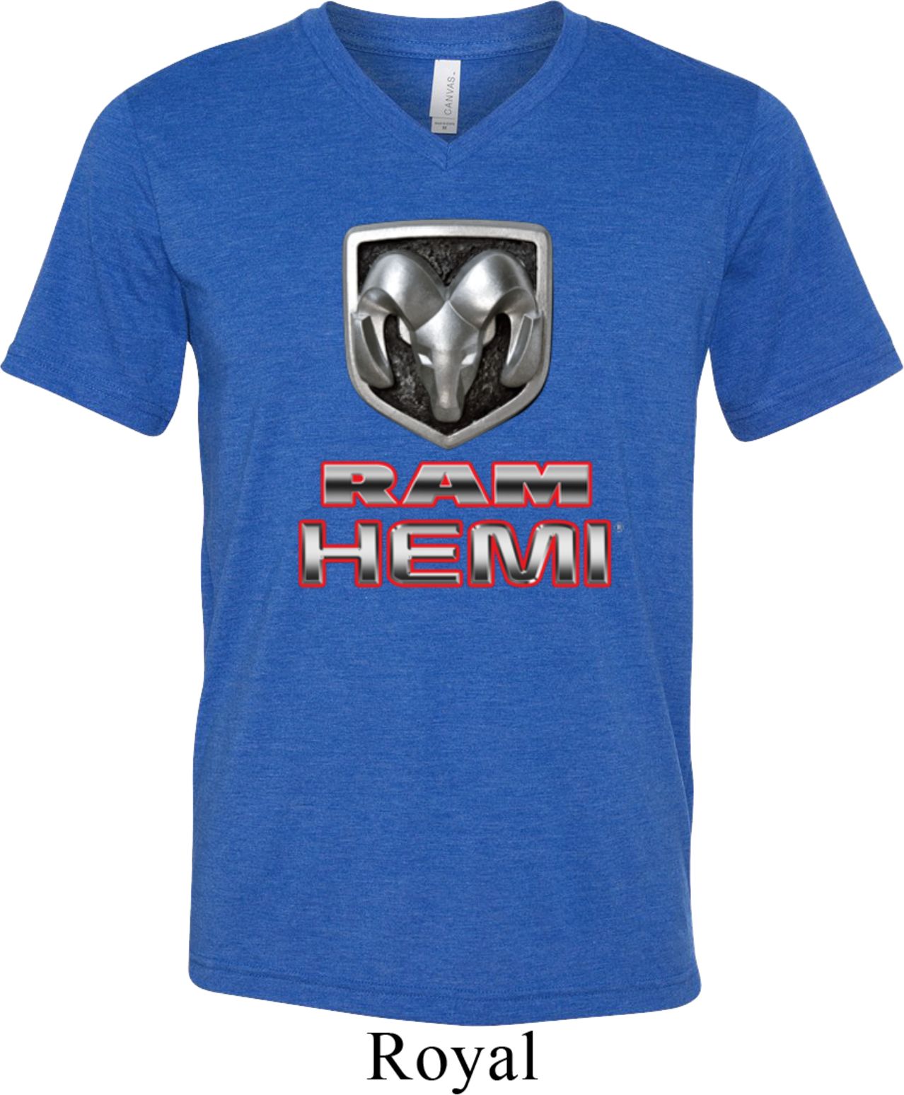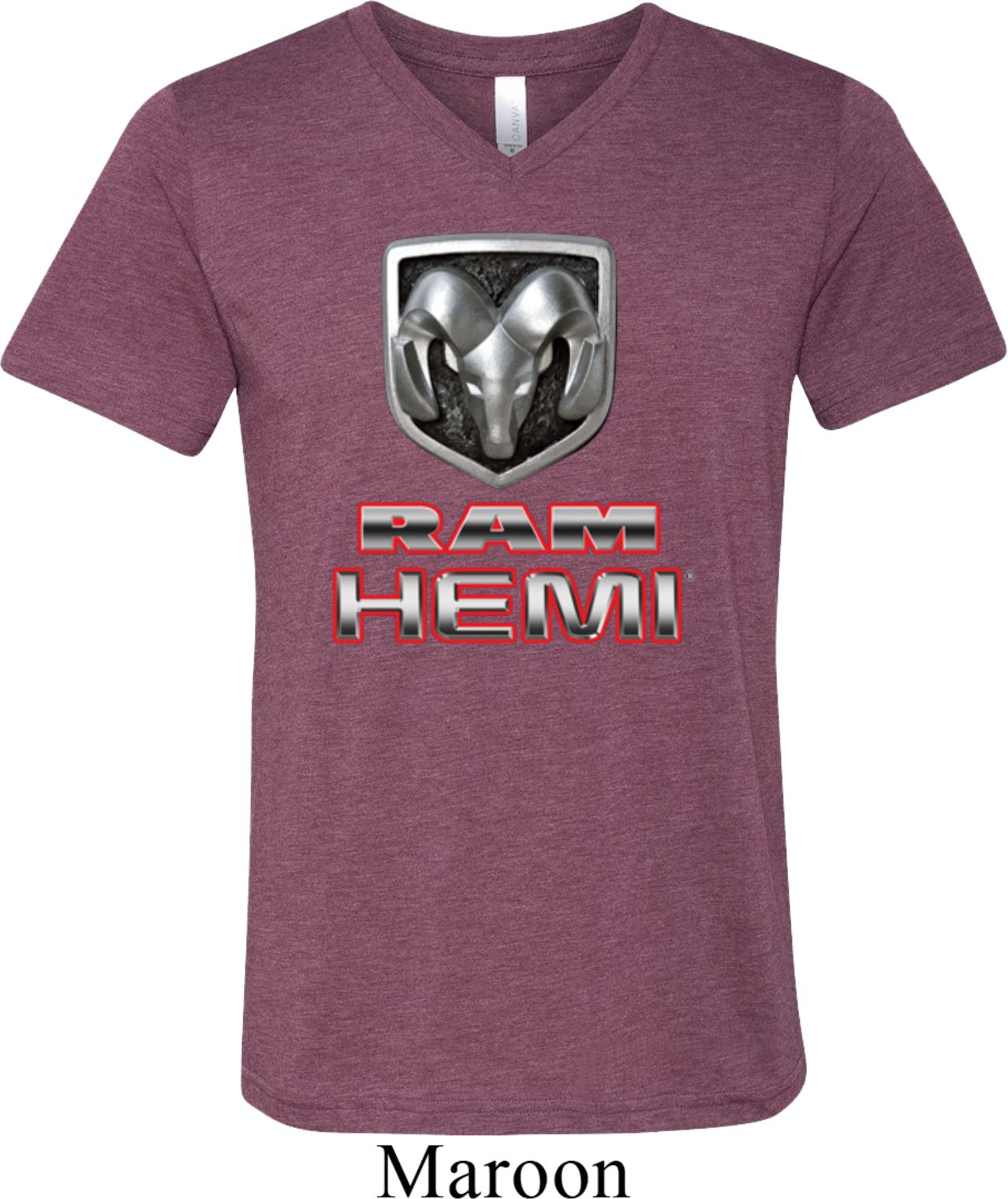 | | Mens Dodge Shirt Ram Hemi Logo Tri Blend V-neck Tee T-ShirtMens Dodge Shirt Ram Hemi Logo Tri Blend V-neck Tee T-Shirt A cotton/poly/rayon blend Available in Small, Medium, Large, XL & 2XL Also available in colors Aqua, Athletic Grey, Blue, Brown, Charcoal Black, Clay, Green, Grey, Maroon, Navy, Oatmeal, Orange, Red, Royal, Teal, and White |