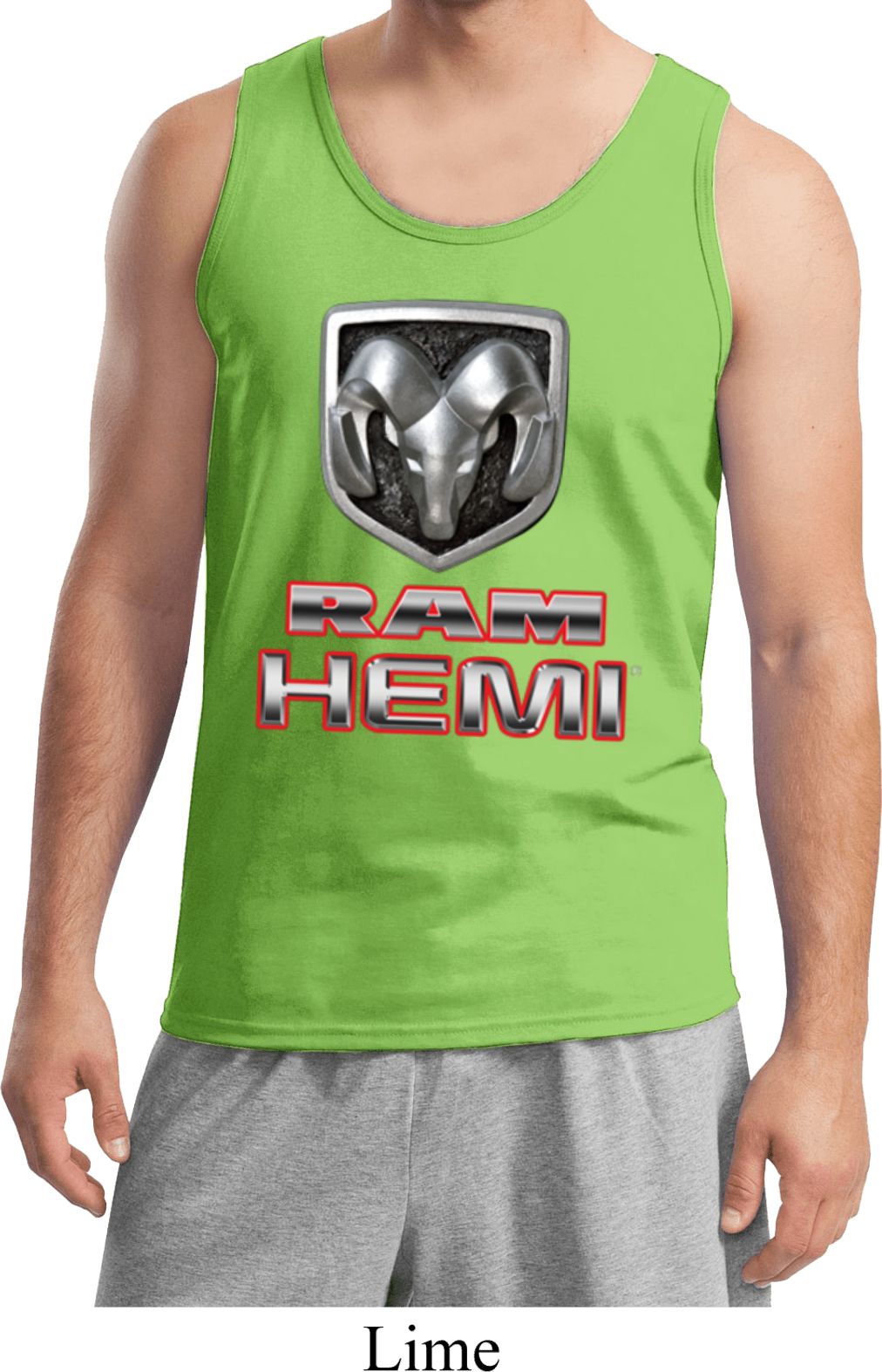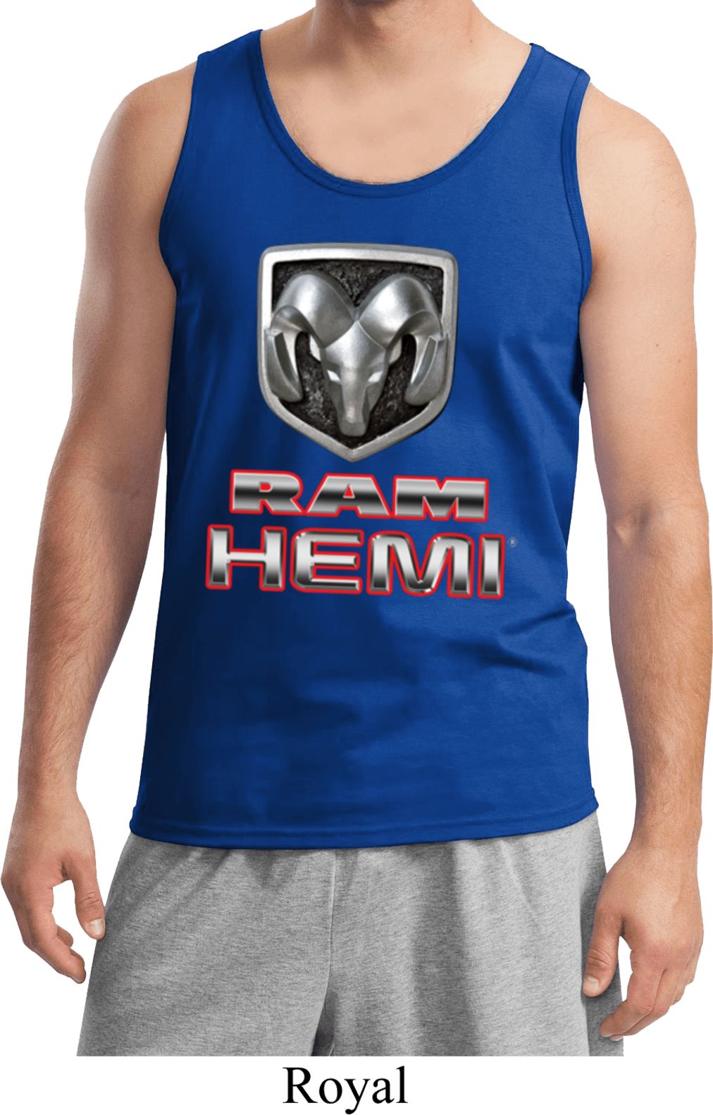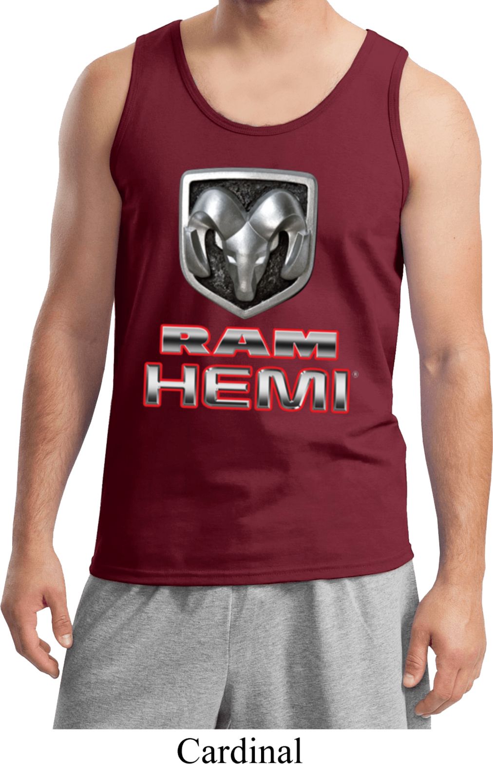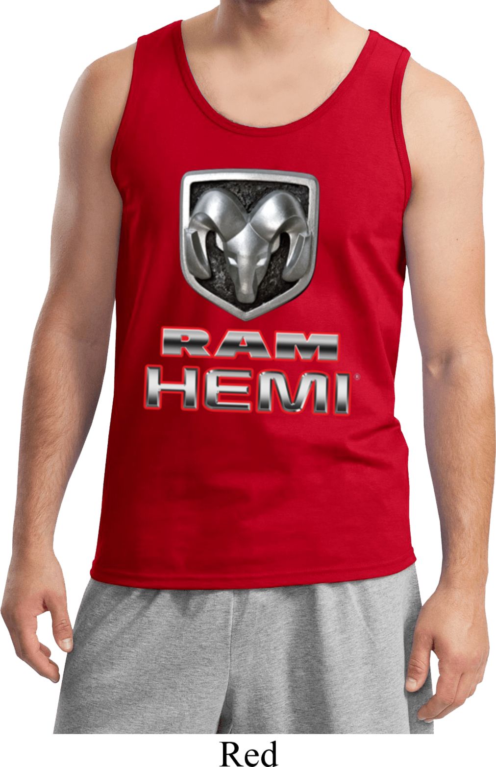 | | Mens Dodge Tanktop Ram Hemi Logo Tank TopMens Dodge Tanktop Ram Hemi Logo Tank Top 100% cotton Ash and Sports Grey are a cotton/poly blend Available in Small, Medium, Large, XL & 2XL Also available in colors Ash, Black, Cardinal, Carolina Blue,Charcoal, Gold, Lime, Navy, Orange, Purple, Red, Royal, Sapphire, Sports Grey, and White ![]() |