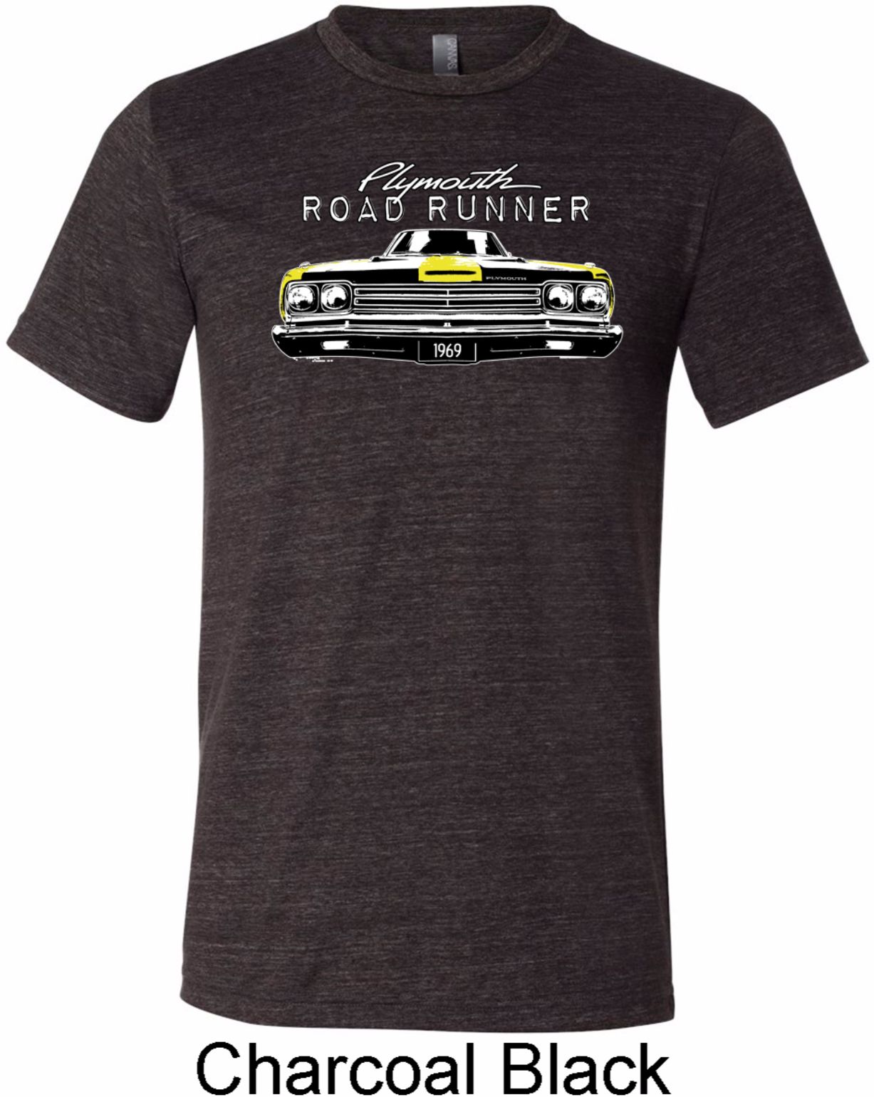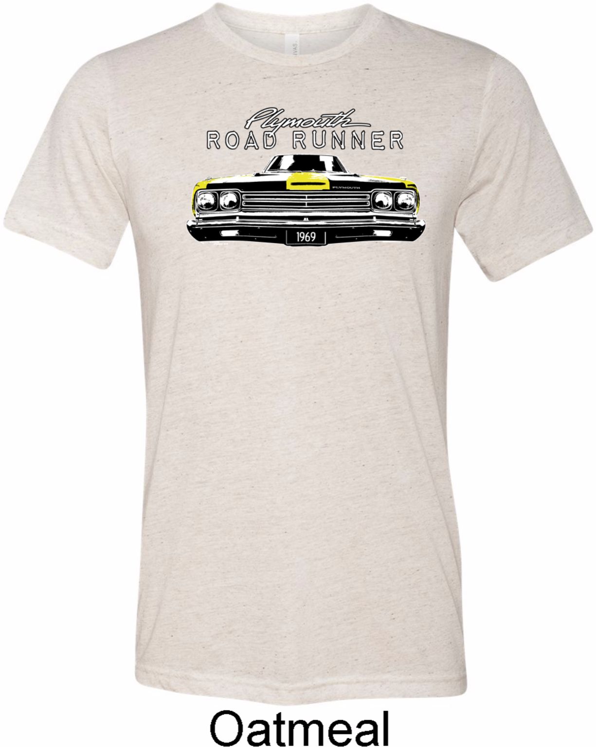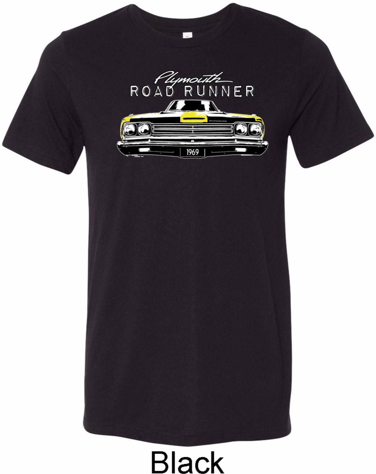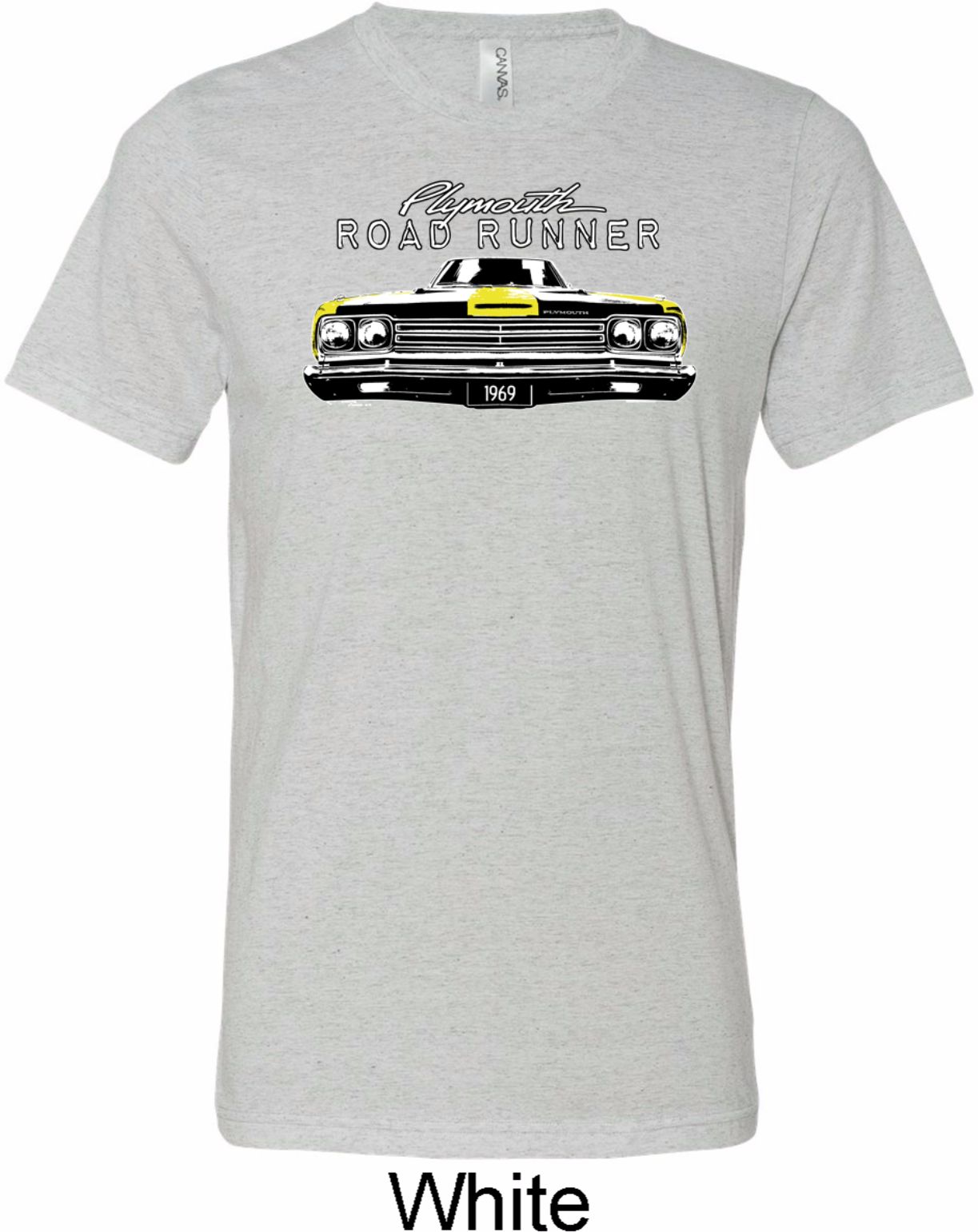 | | Mens Dodge Yellow Plymouth Roadrunner Tri Blend Crewneck ShirtMens Dodge Yellow Plymouth Roadrunner Tri Blend Crewneck Shirt Features a front profile of the classic 1969 Yellow Plymouth Roadrunner A cotton/poly/rayon blend Available in Small, Medium, Large, XL & 2XL Also available in colors Aqua, Athletic Grey, Berry, Blue, Brown, Charcoal Black, Clay, Emerald, Green, Grey, Maroon, Navy, Oatmeal, Orange, Purple, Red, Solid Black, Teal, Royal, and White Fleck |