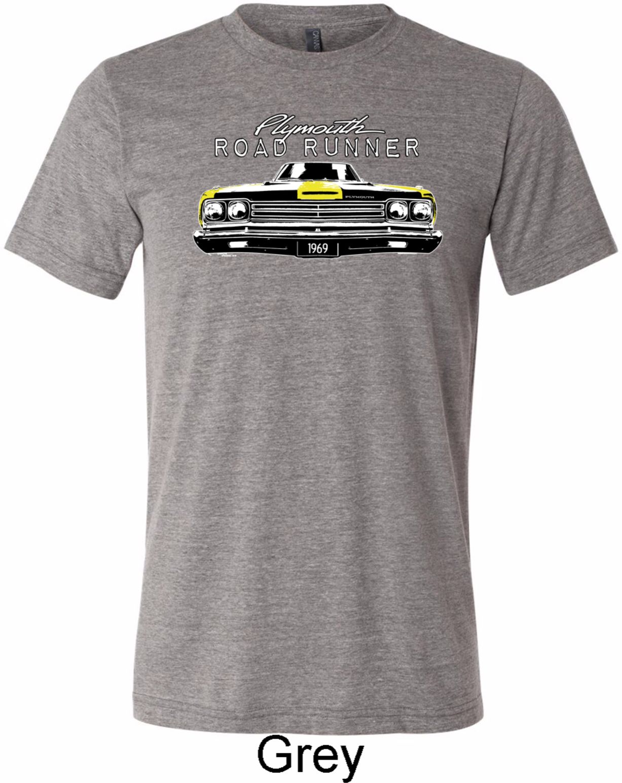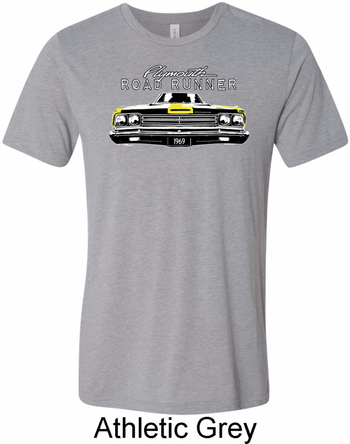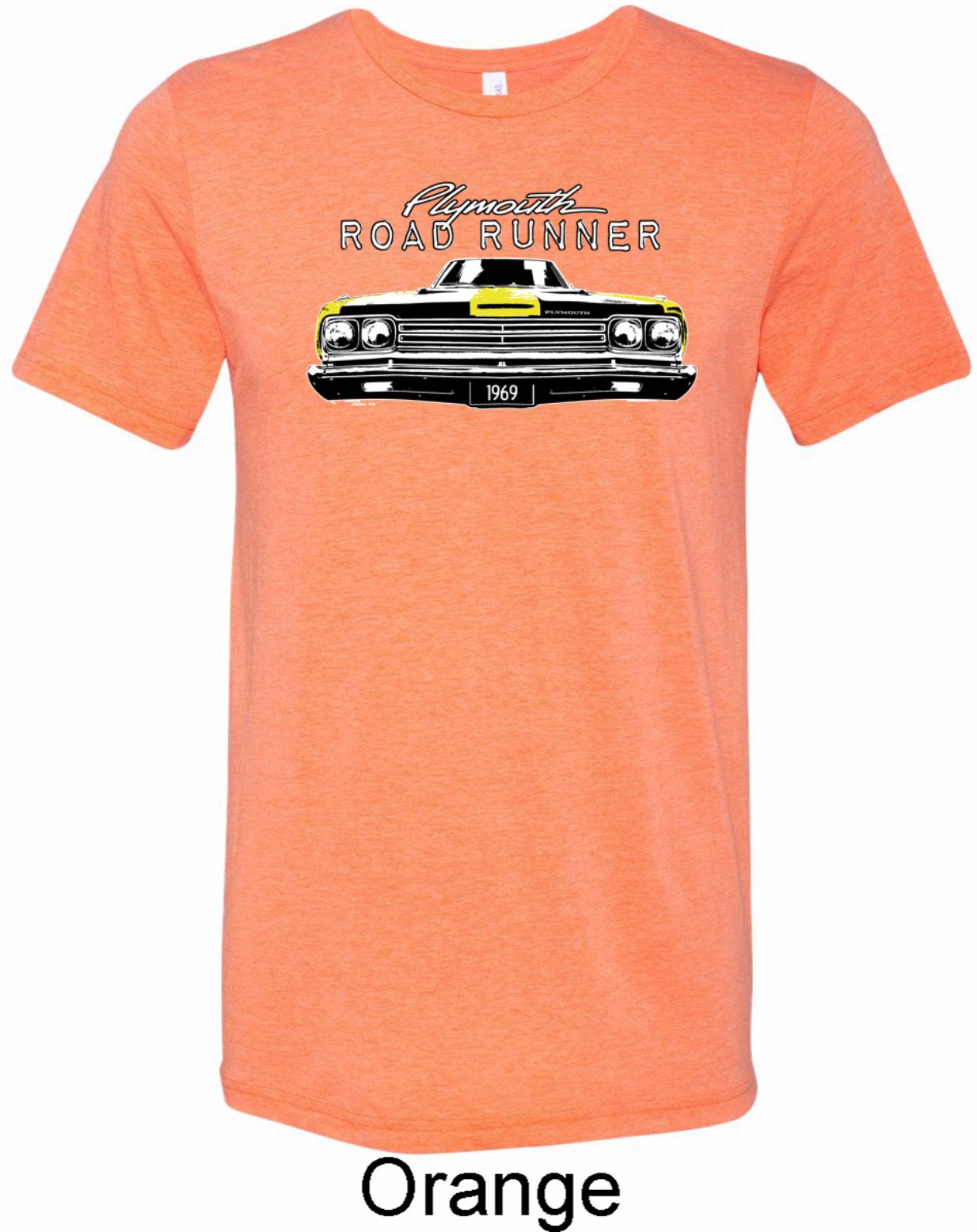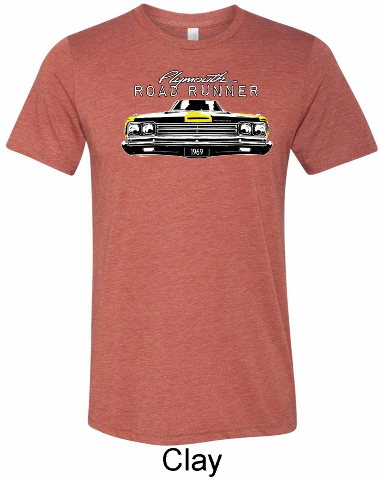 | | Mens Dodge Yellow Plymouth Roadrunner Tri Blend Crewneck ShirtMens Dodge Yellow Plymouth Roadrunner Tri Blend Crewneck Shirt Features a front profile of the classic 1969 Yellow Plymouth Roadrunner A cotton/poly/rayon blend Available in Small, Medium, Large, XL & 2XL Also available in colors Aqua, Athletic Grey, Berry, Blue, Brown, Charcoal Black, Clay, Emerald, Green, Grey, Maroon, Navy, Oatmeal, Orange, Purple, Red, Solid Black, Teal, Royal, and White Fleck |