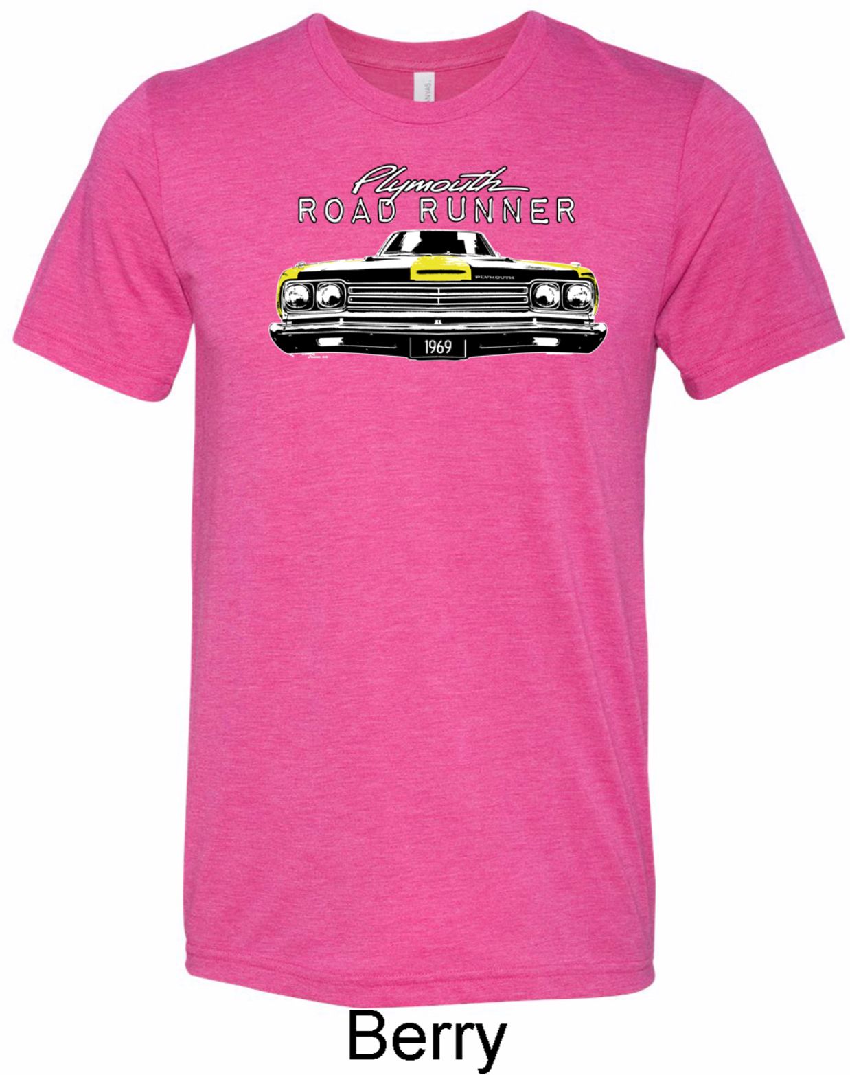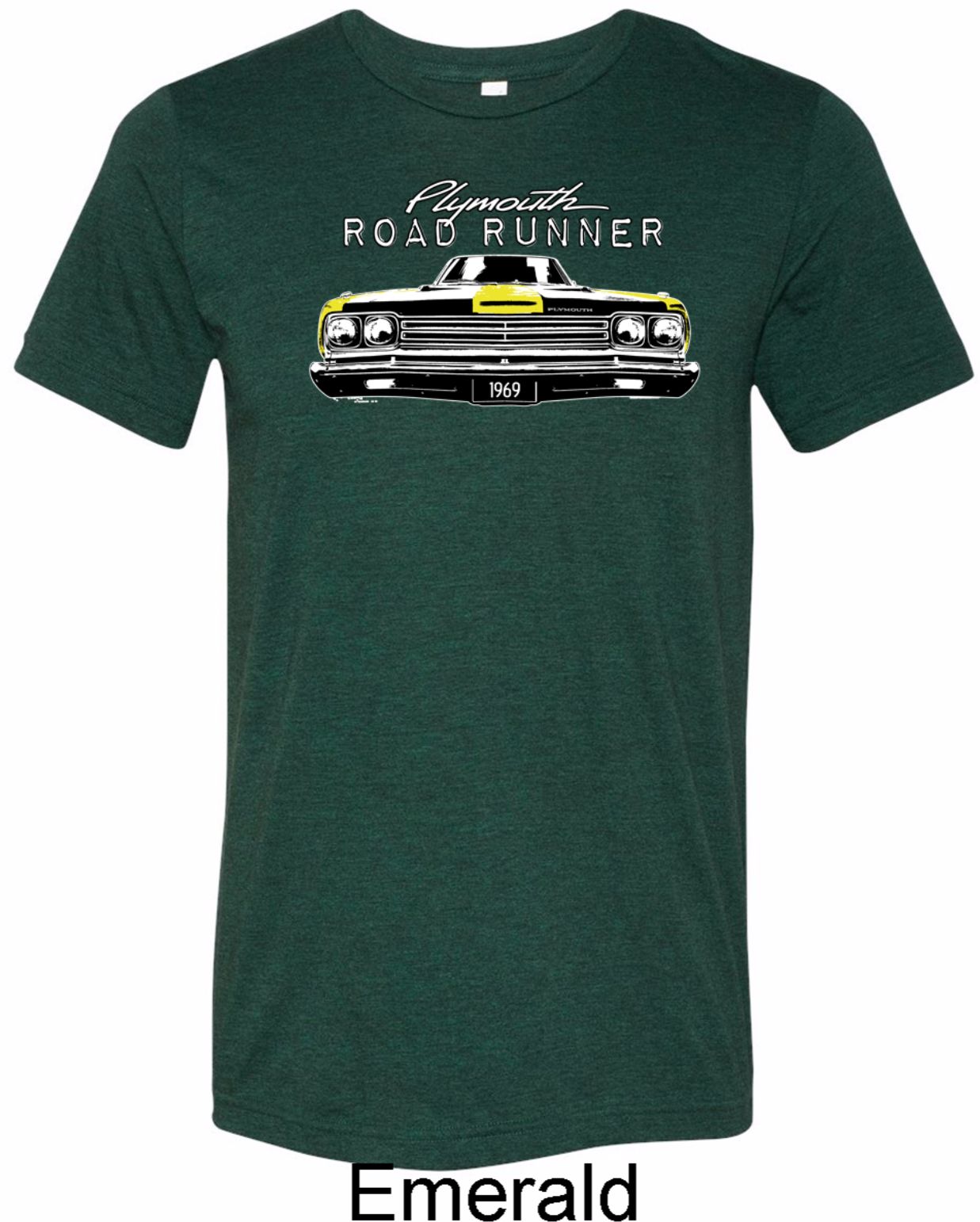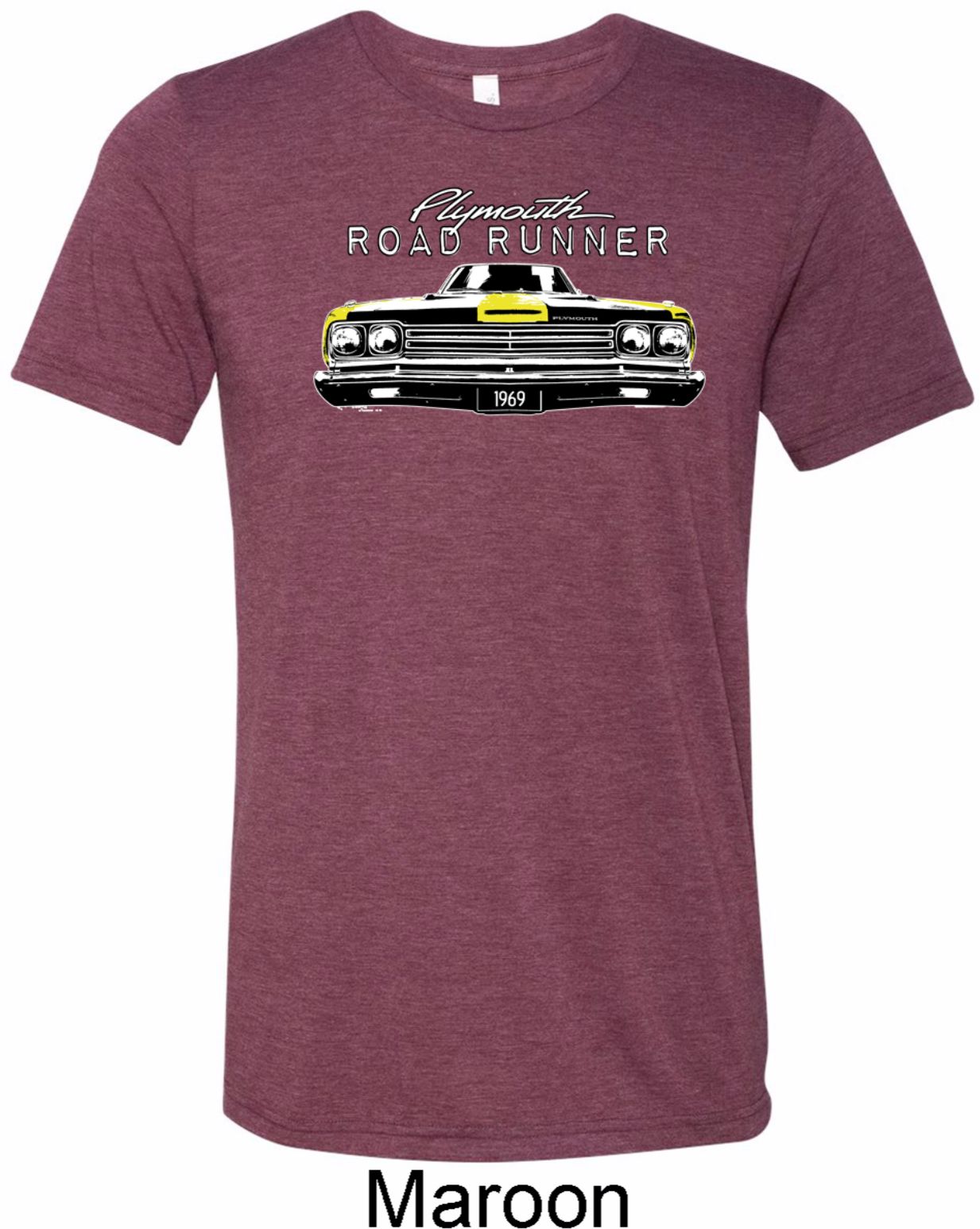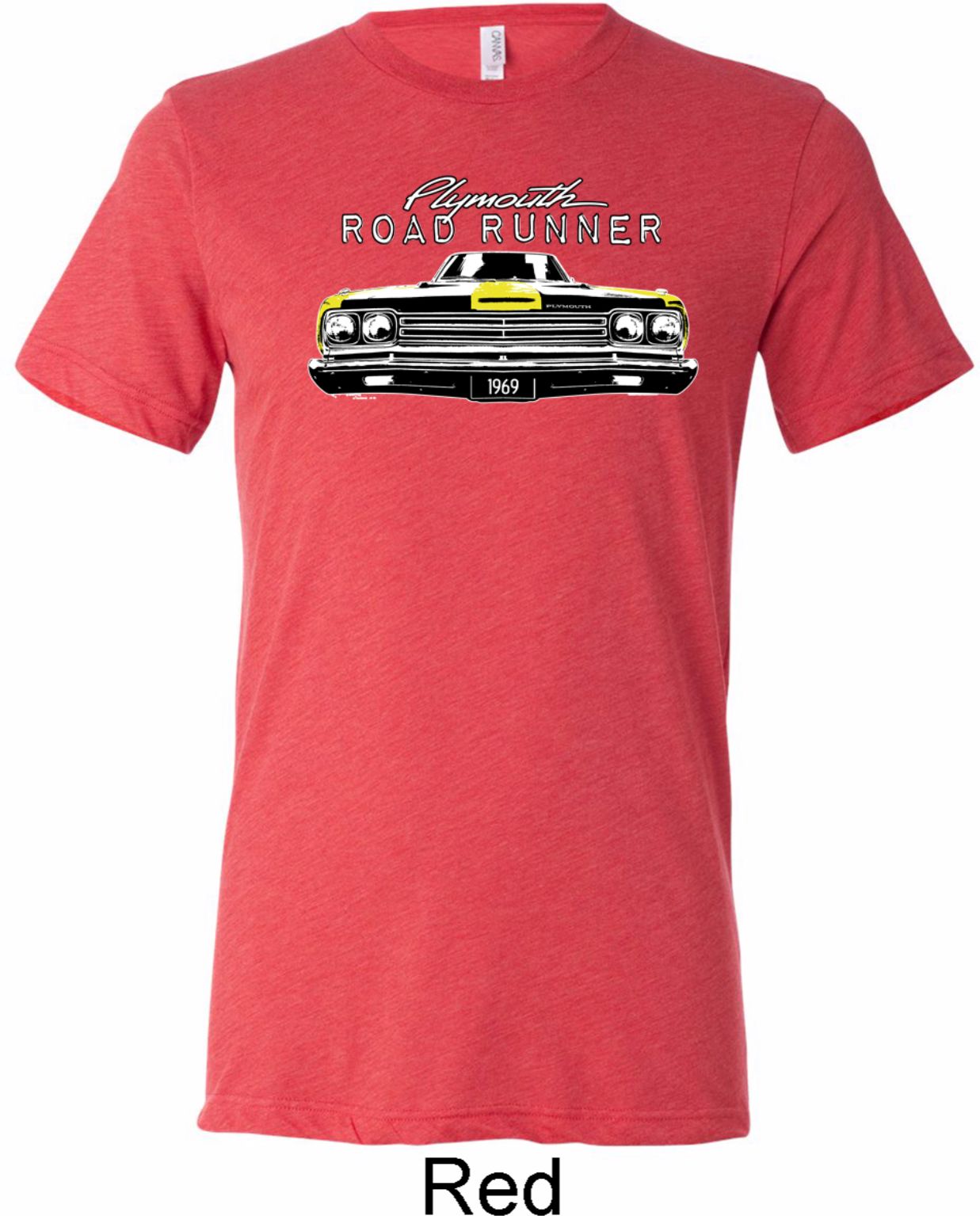| | Mens Dodge Yellow Plymouth Roadrunner Tri Blend Crewneck ShirtMens Dodge Yellow Plymouth Roadrunner Tri Blend Crewneck Shirt Features a front profile of the classic 1969 Yellow Plymouth Roadrunner A cotton/poly/rayon blend Available in Small, Medium, Large, XL & 2XL Also available in colors Aqua, Athletic Grey, Berry, Blue, Brown, Charcoal Black, Clay, Emerald, Green, Grey, Maroon, Navy, Oatmeal, Orange, Purple, Red, Solid Black, Teal, Royal, and White Fleck |