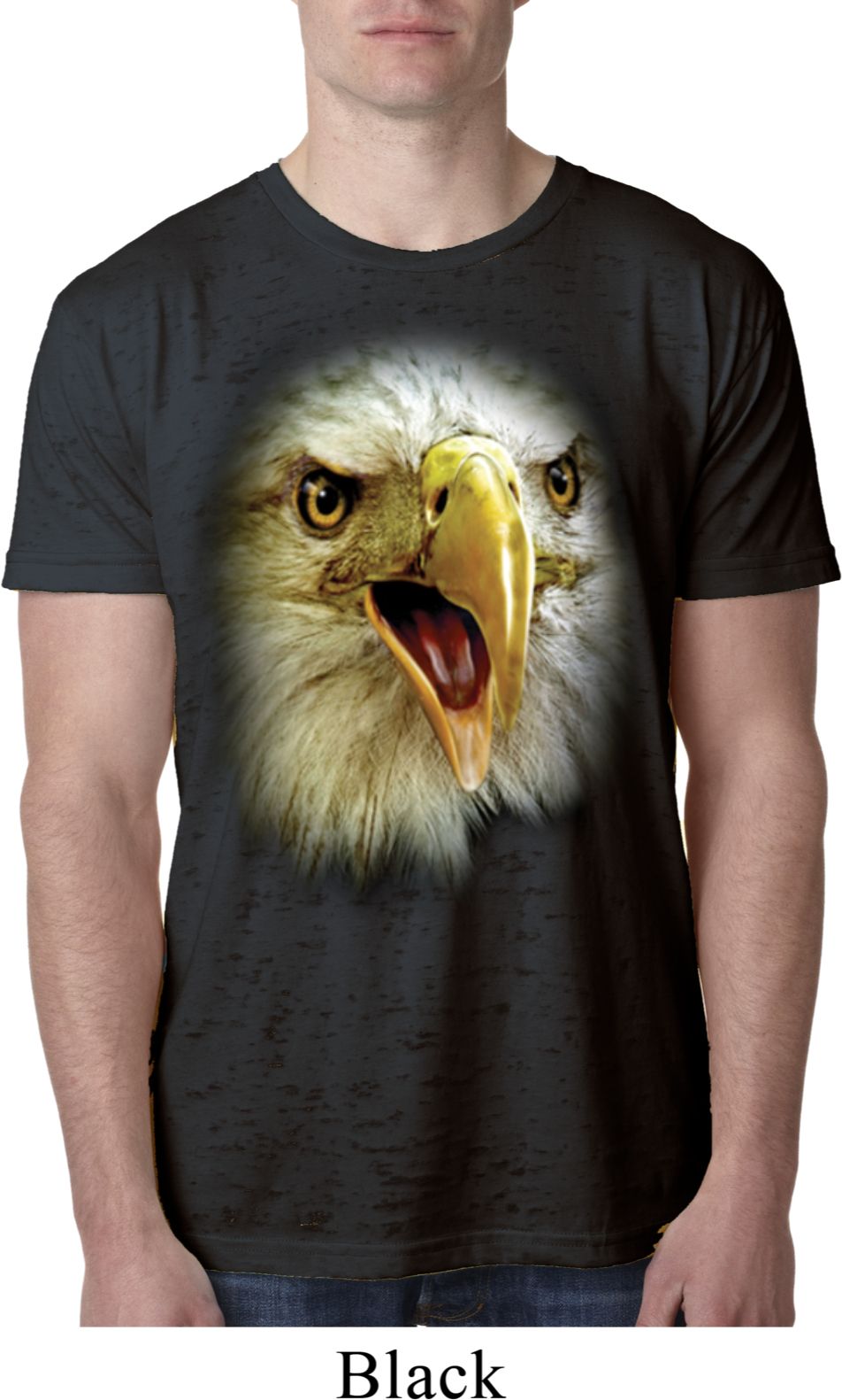 Mens Eagle Shirt Big Eagle Face Burnout T-Shirt
