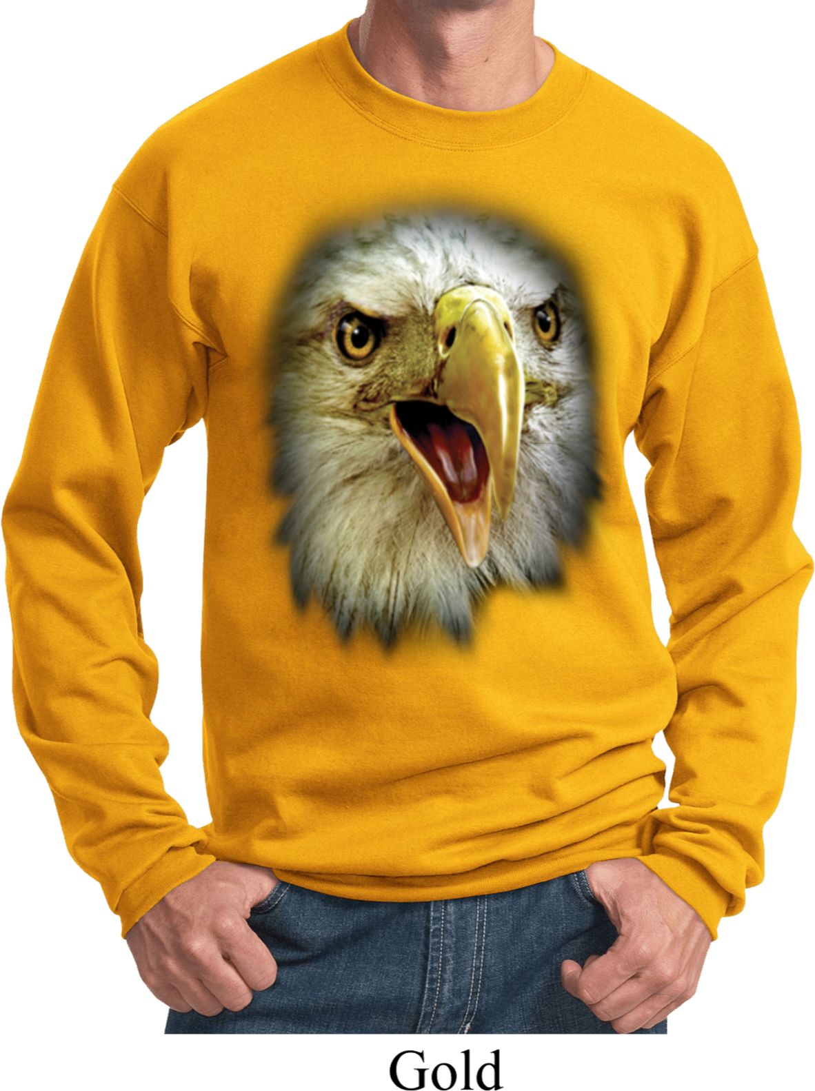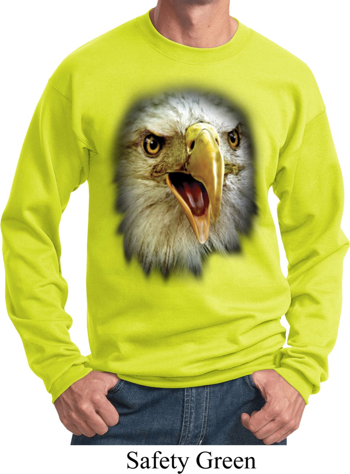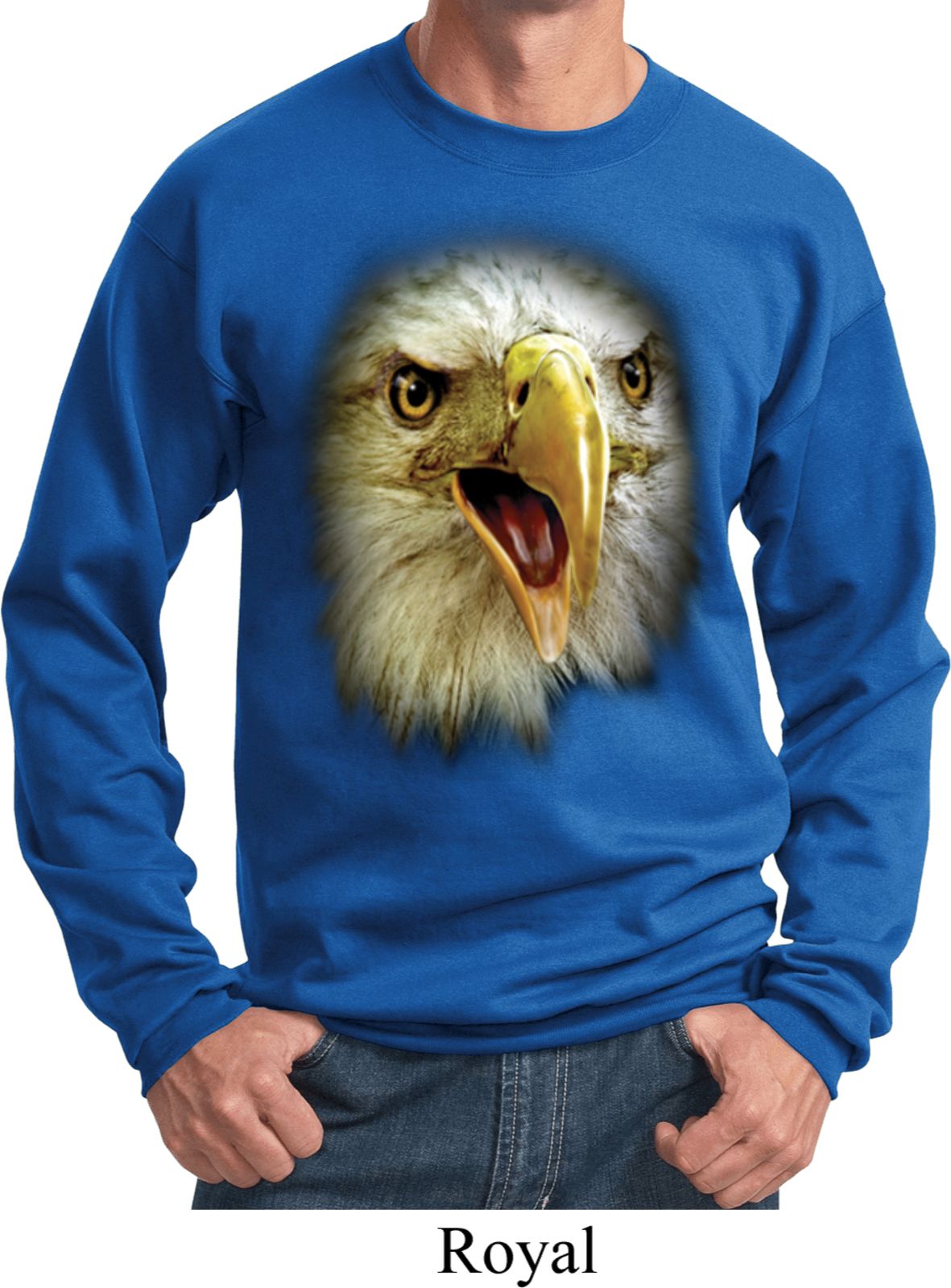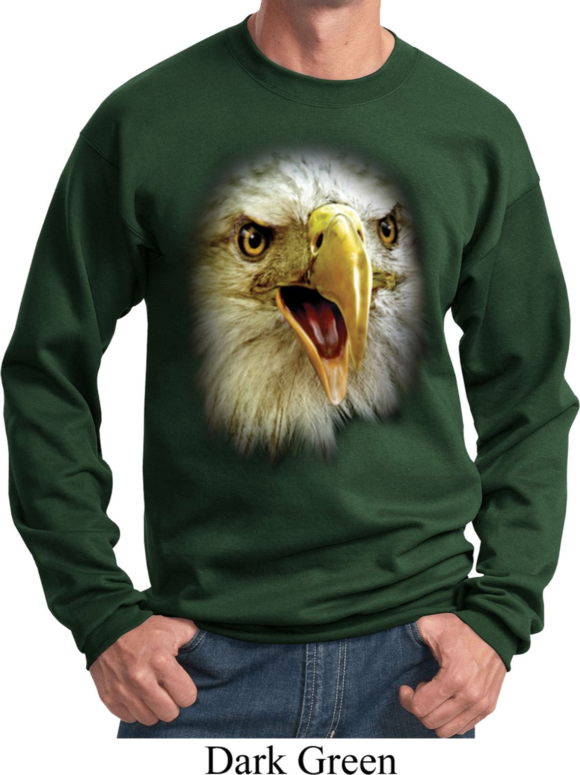 | | Mens Eagle Sweatshirt Big Eagle Face Sweat ShirtMens Eagle Sweatshirt Big Eagle Face Sweat Shirt A cotton/poly blend Available in Small, Medium, Large, XL, 2XL, 3XL & 4XL Also available in colors Ash, Athletic Heather, Black, Cardinal, Chocolate, Dark Green, Gold, Kelly, Maroon, Navy, Orange, Pale Pink, Purple, Red, Royal, Safety Green, and White ![]() |