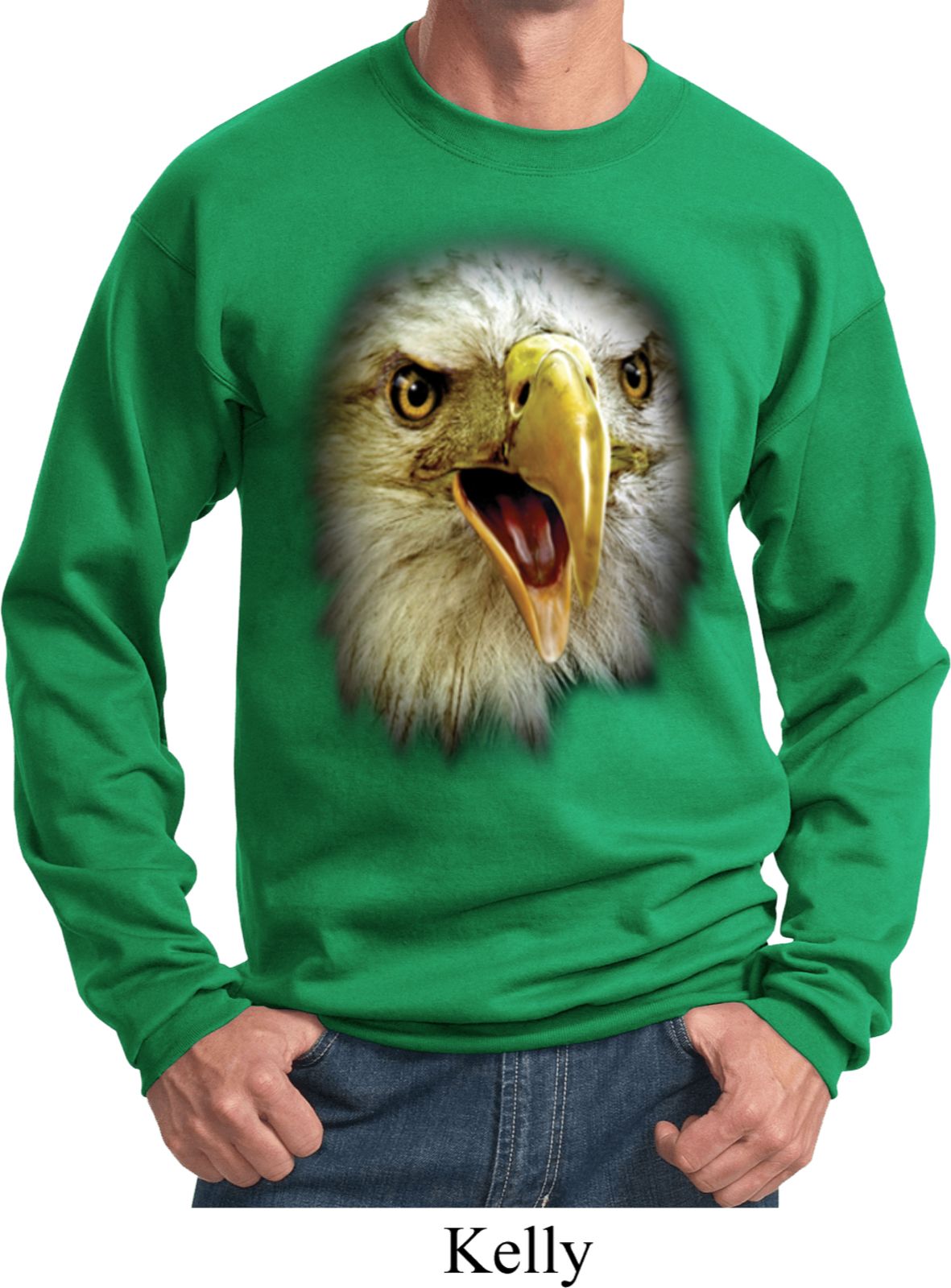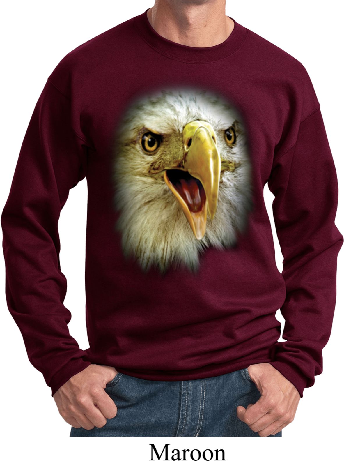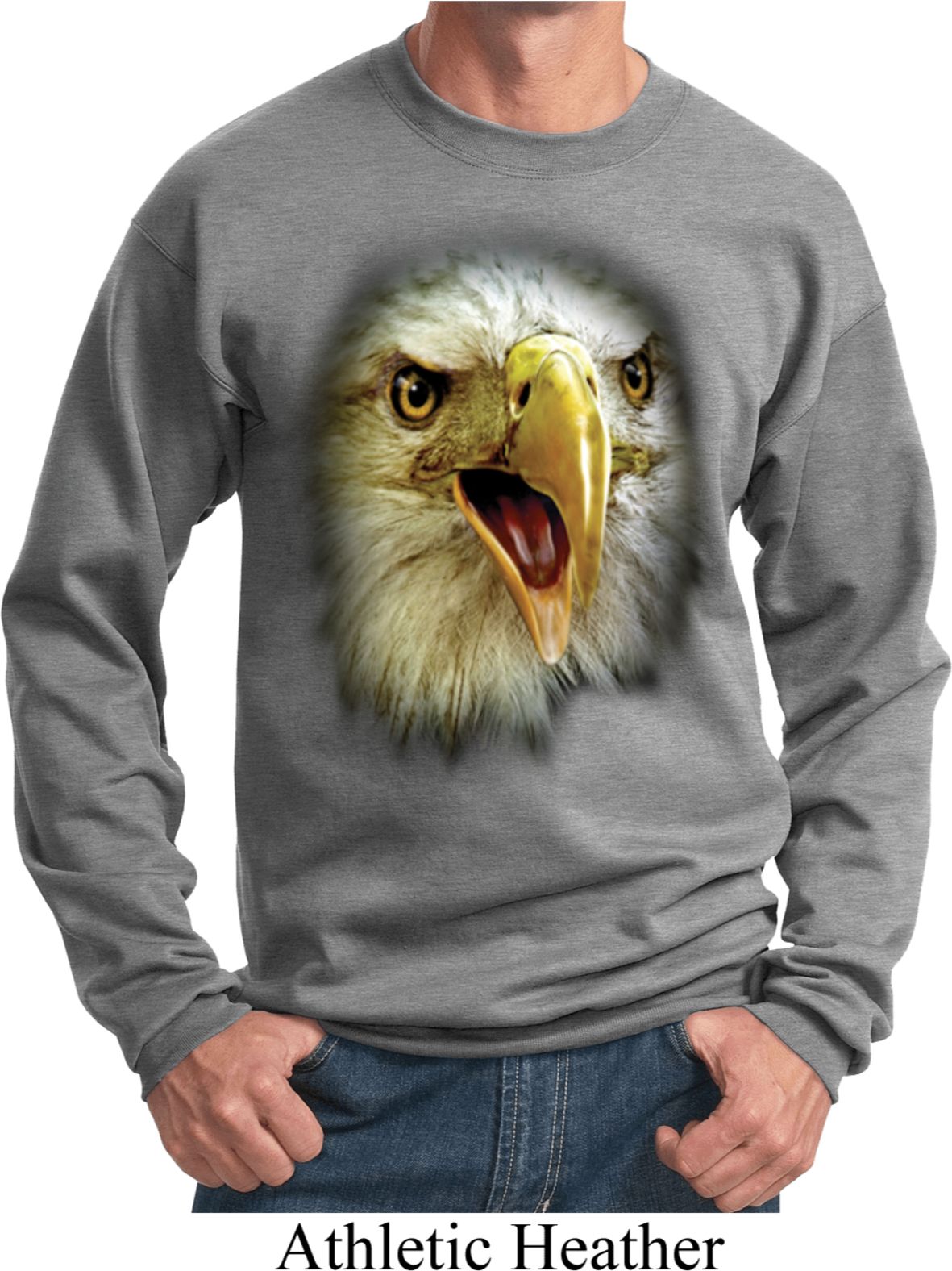 | | Mens Eagle Sweatshirt Big Eagle Face Sweat ShirtMens Eagle Sweatshirt Big Eagle Face Sweat Shirt A cotton/poly blend Available in Small, Medium, Large, XL, 2XL, 3XL & 4XL Also available in colors Ash, Athletic Heather, Black, Cardinal, Chocolate, Dark Green, Gold, Kelly, Maroon, Navy, Orange, Pale Pink, Purple, Red, Royal, Safety Green, and White ![]() |