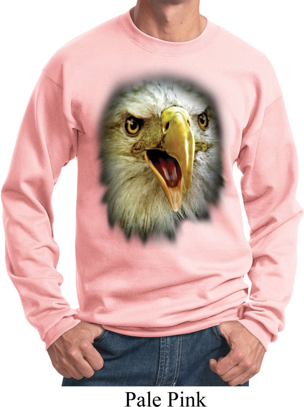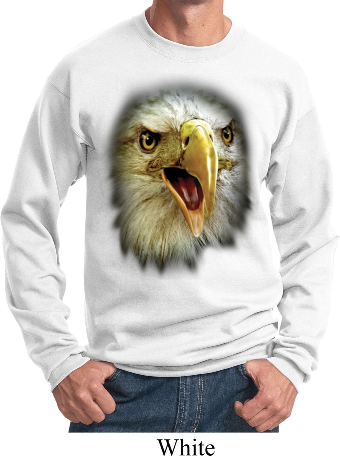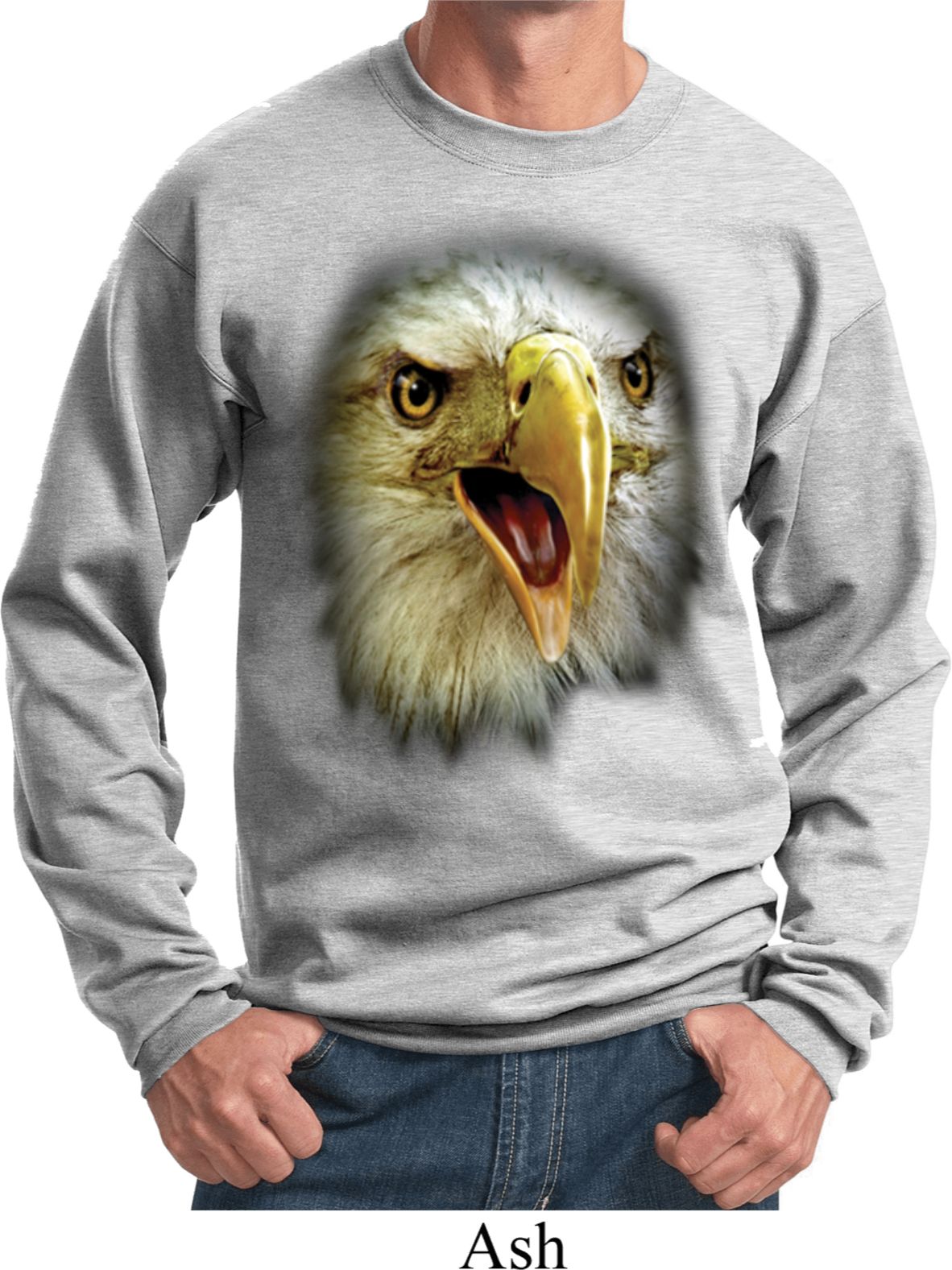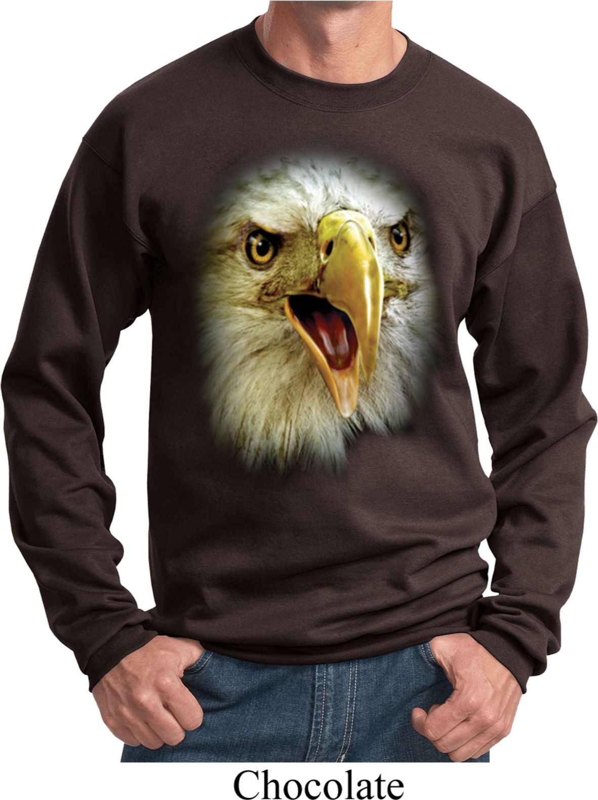 | | Mens Eagle Sweatshirt Big Eagle Face Sweat ShirtMens Eagle Sweatshirt Big Eagle Face Sweat Shirt A cotton/poly blend Available in Small, Medium, Large, XL, 2XL, 3XL & 4XL Also available in colors Ash, Athletic Heather, Black, Cardinal, Chocolate, Dark Green, Gold, Kelly, Maroon, Navy, Orange, Pale Pink, Purple, Red, Royal, Safety Green, and White ![]() |