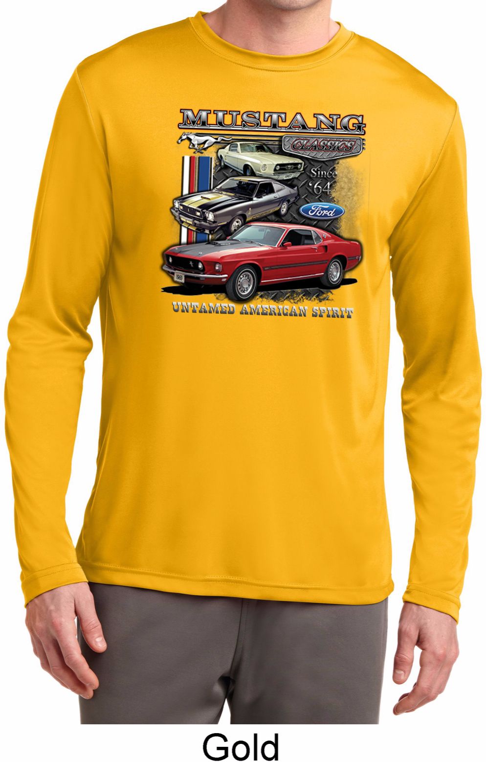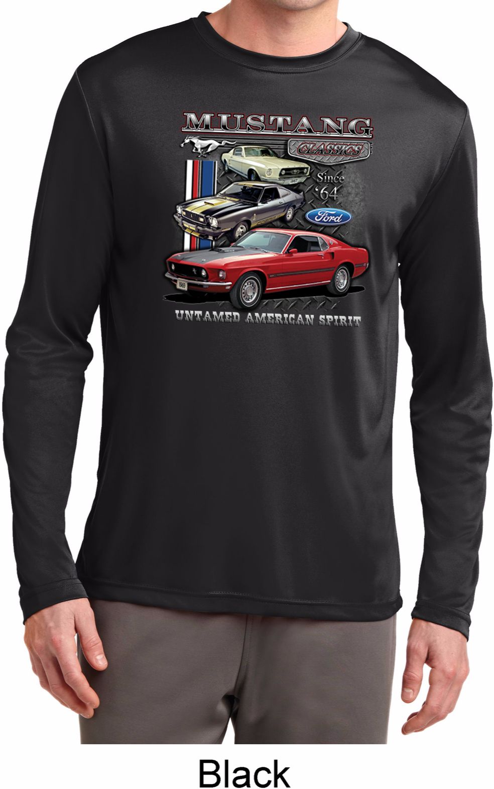 | | Mens Ford Classic Mustangs Untamed Dry Wicking Long SleeveA mens dry wicking long sleeve featuring Ford Mustang Classics since 1964, Untamed American Spirit. Our mens shirt is made of 100% polyester. Available in sizes Small through 4XL. Machine wash cold with like colors; dry low heat. ![]() |
