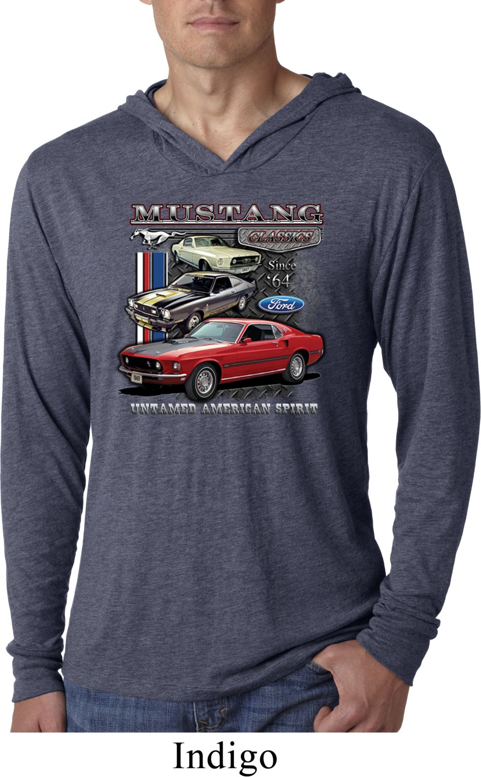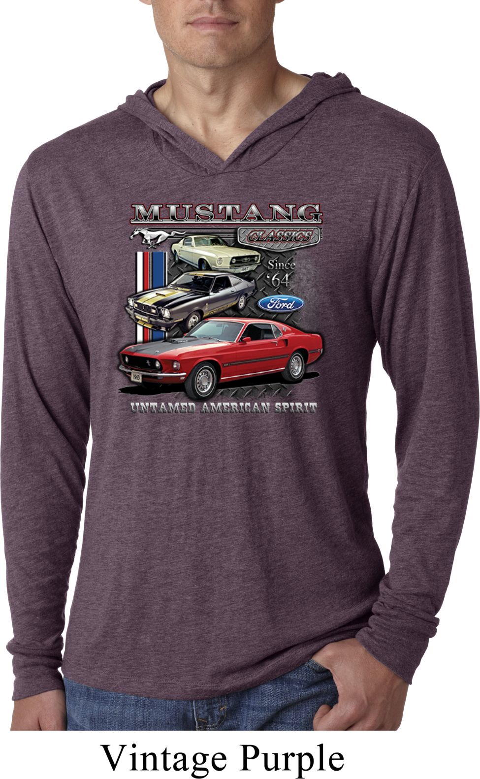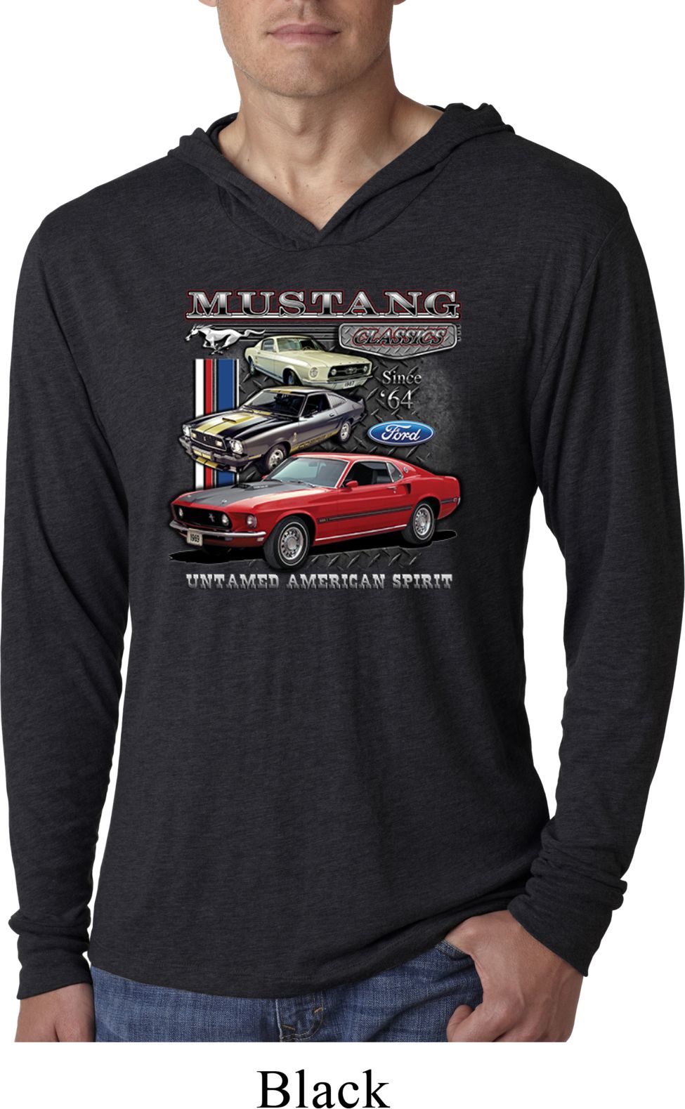 | | Mens Ford Classic Mustangs Untamed Lightweight Hoodie TeeA mens lightweight hooded shirt featuring Ford Mustang Classics since 1964, Untamed American Spirit. Our mens shirt is made with a blend of cotton/poly/rayon. Available in sizes Small through 2XL. Machine wash cold with like colors; dry low heat. ![]() |
