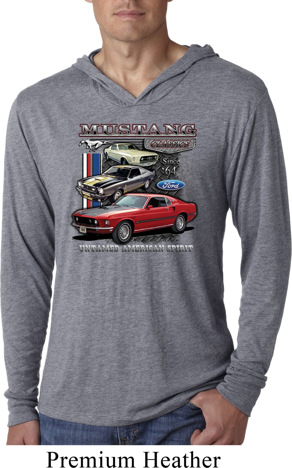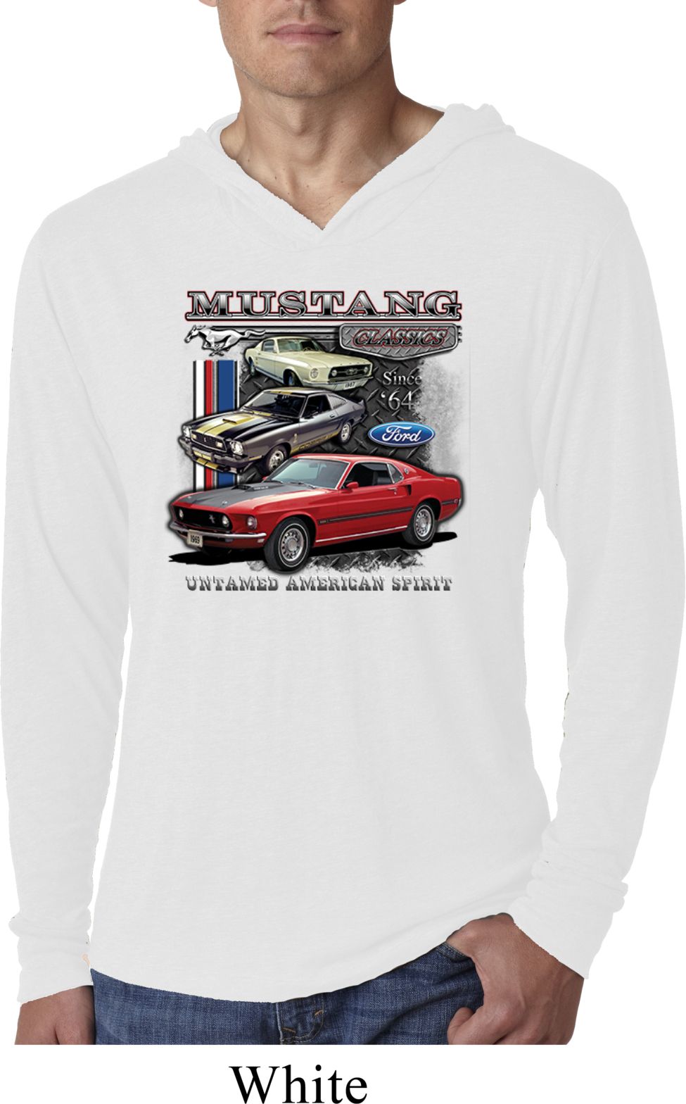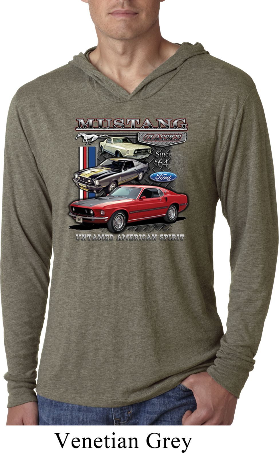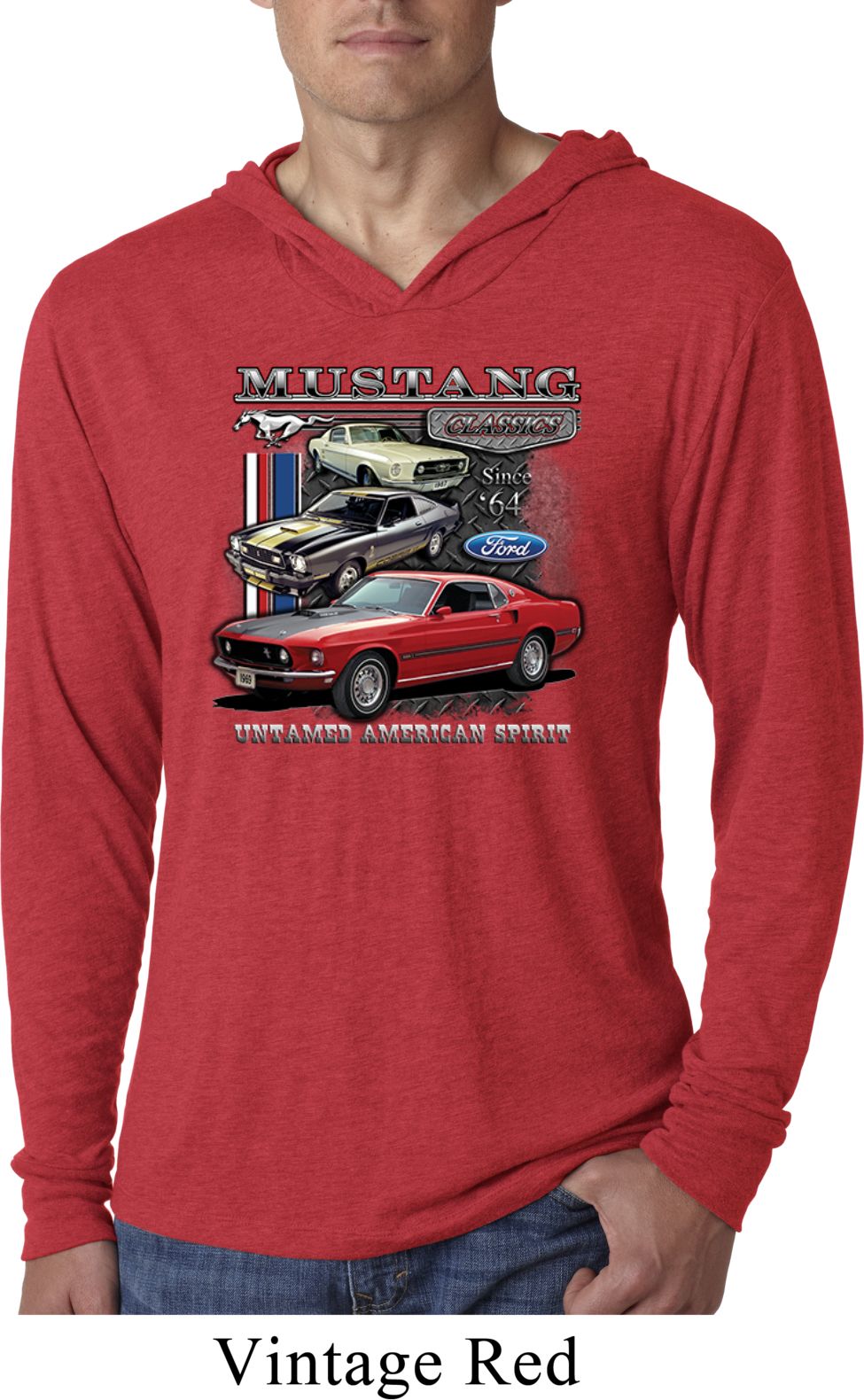 | | Mens Ford Classic Mustangs Untamed Lightweight Hoodie TeeA mens lightweight hooded shirt featuring Ford Mustang Classics since 1964, Untamed American Spirit. Our mens shirt is made with a blend of cotton/poly/rayon. Available in sizes Small through 2XL. Machine wash cold with like colors; dry low heat. ![]() |