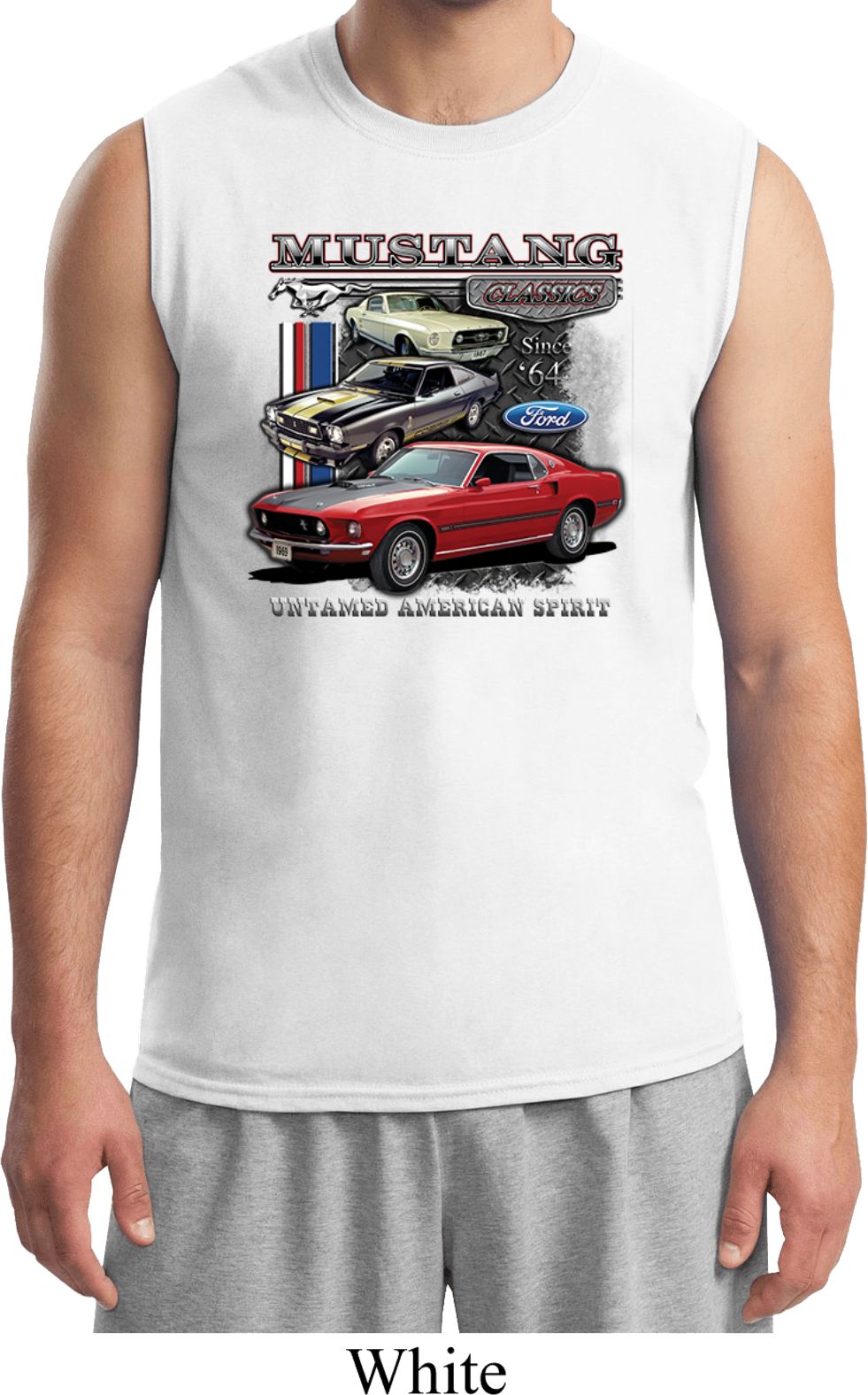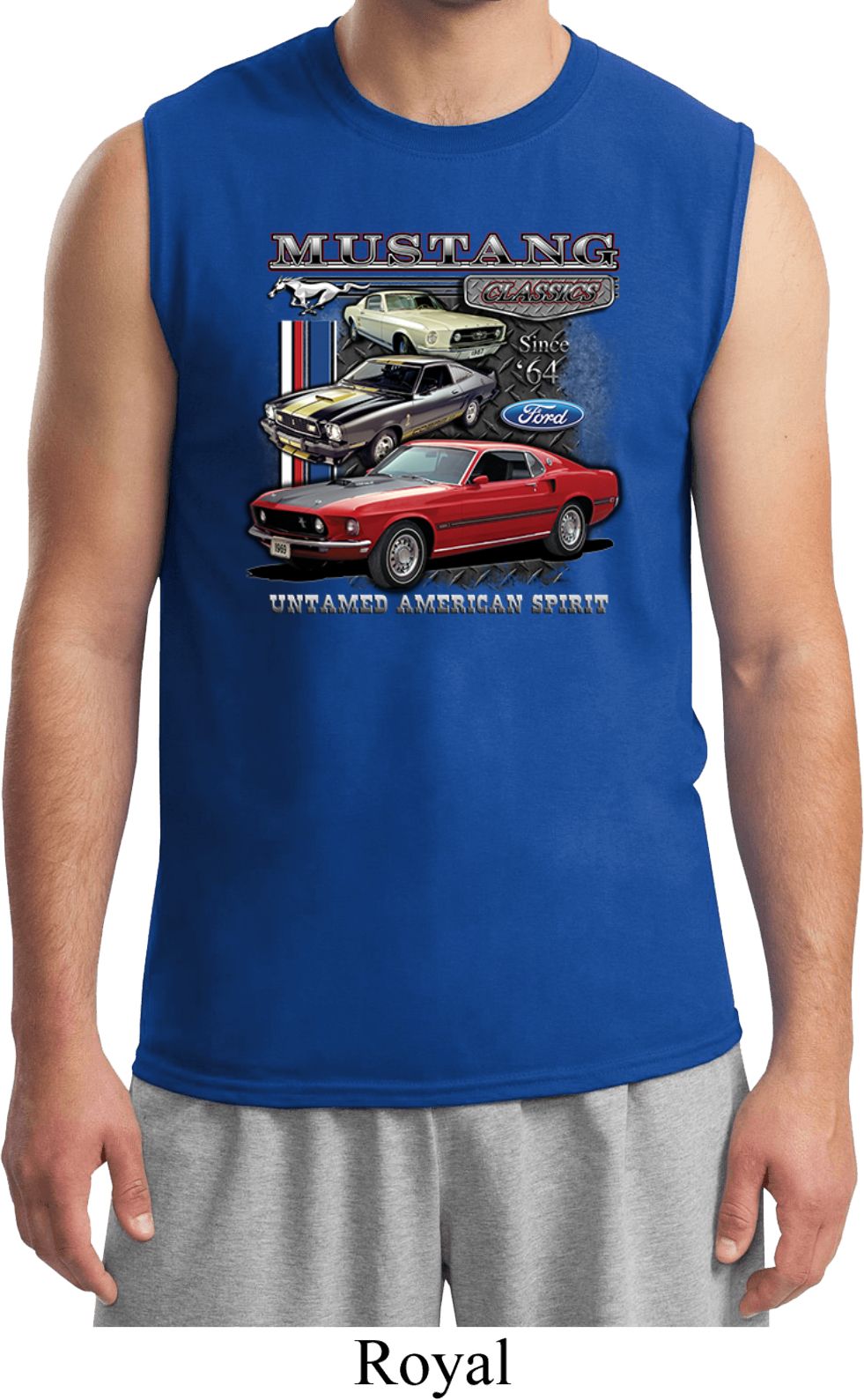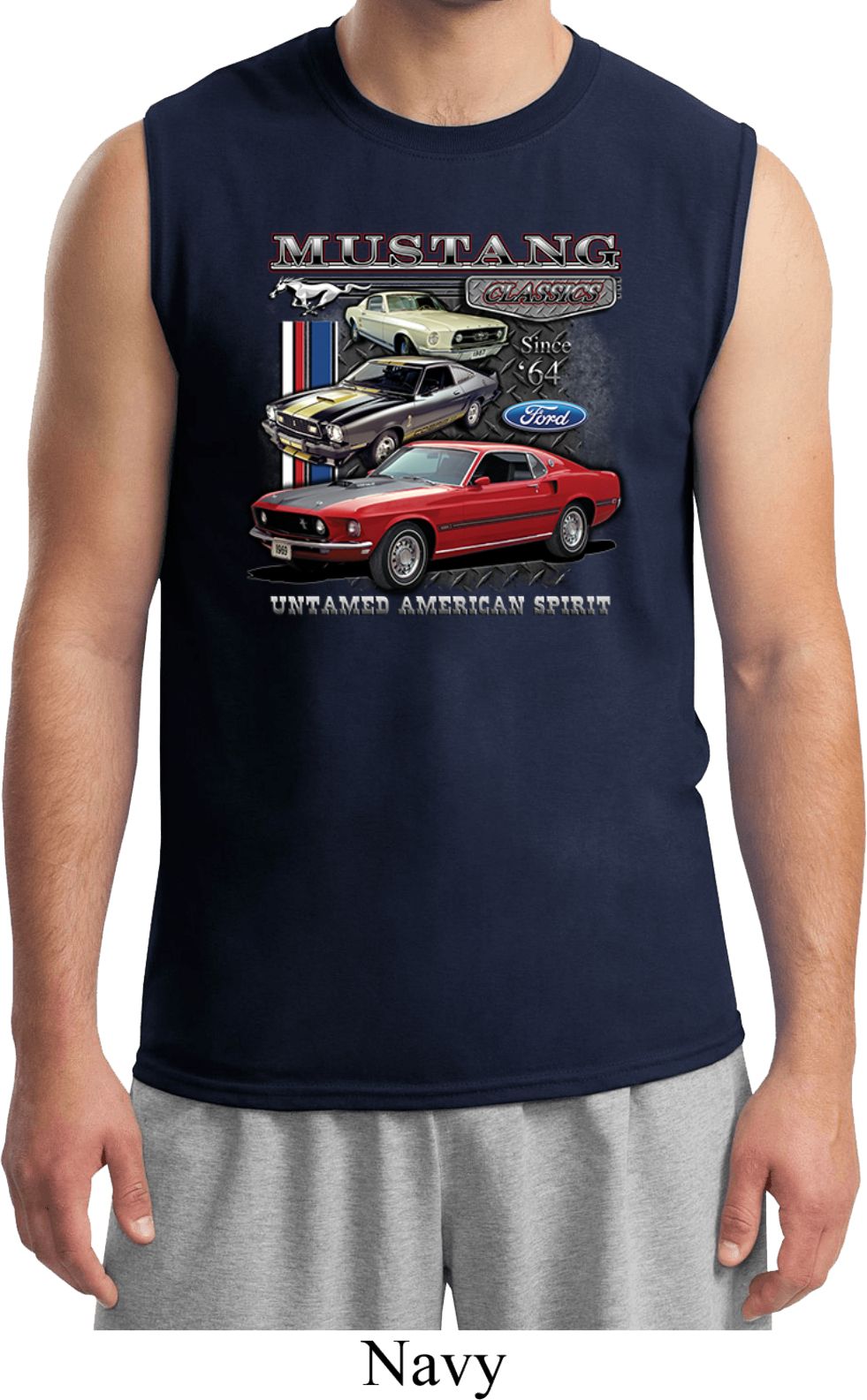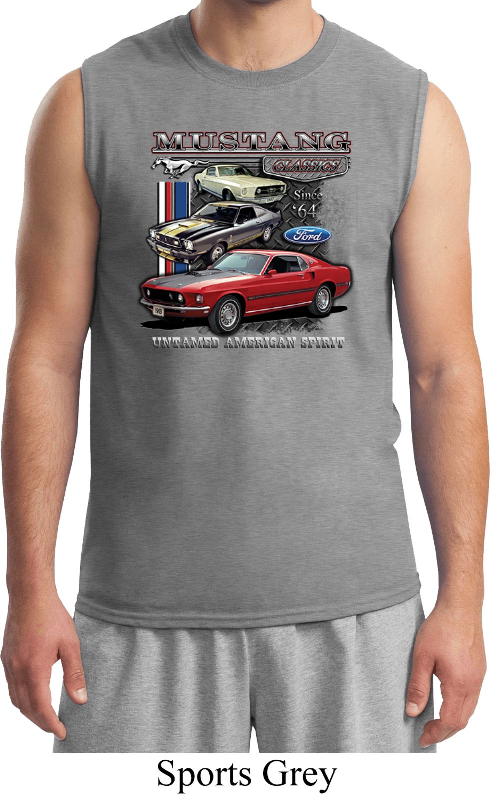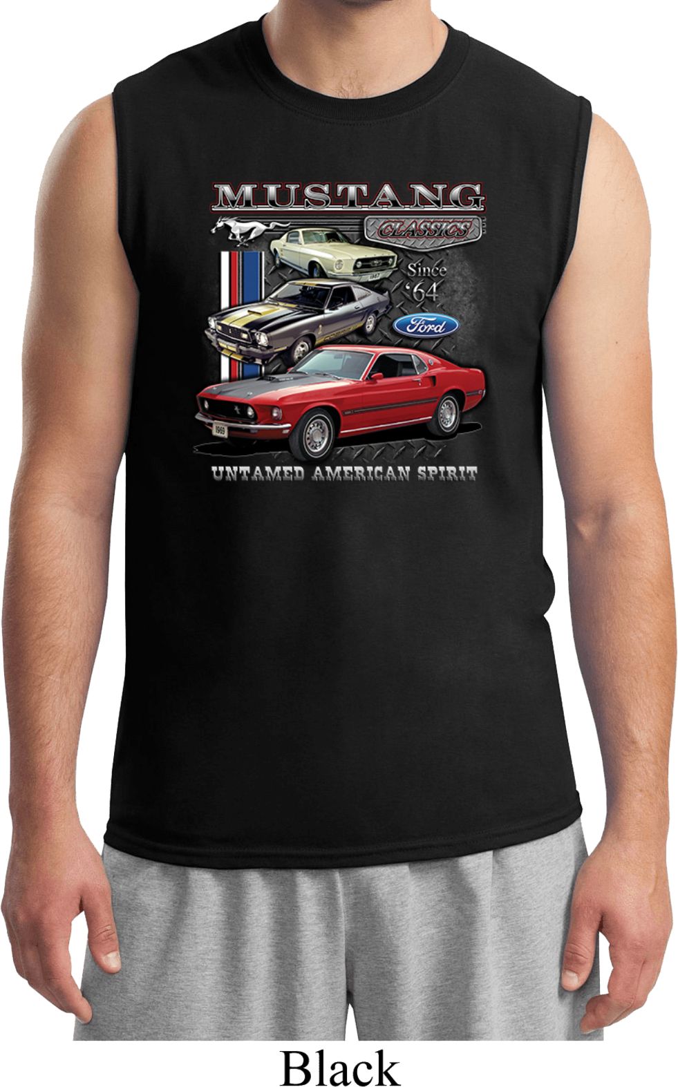 | | Mens Ford Classic Mustangs Untamed Muscle ShirtA mens muscle shirt featuring Ford Mustang Classics since 1964, Untamed American Spirit. Our mens shirt is made of 100% cotton. (Sports Grey is made with a blend of cotton/poly) Available in sizes Small through 2XL. Machine wash cold with like colors; dry low heat. ![]() |