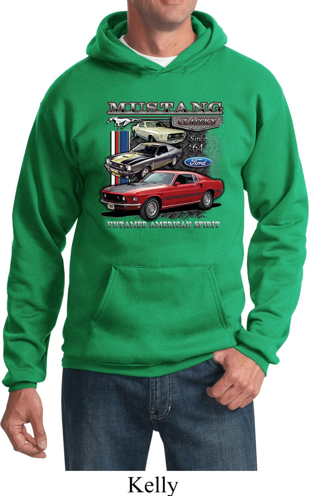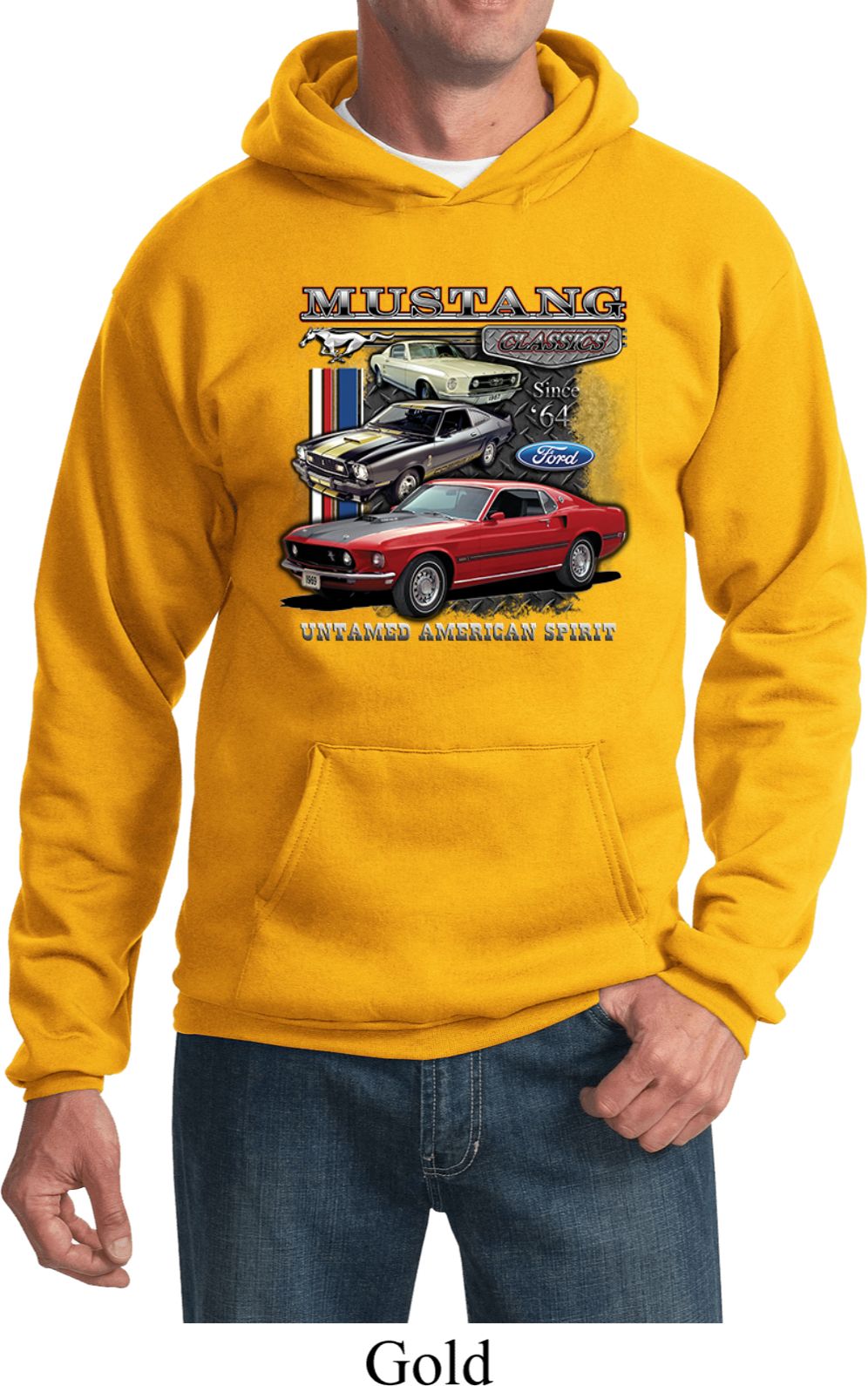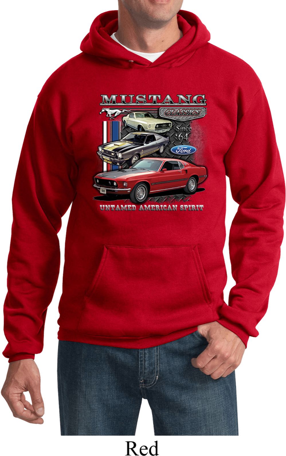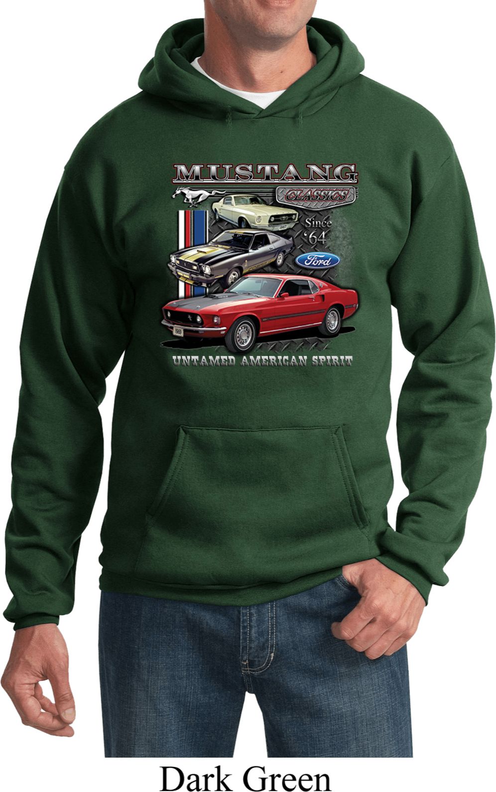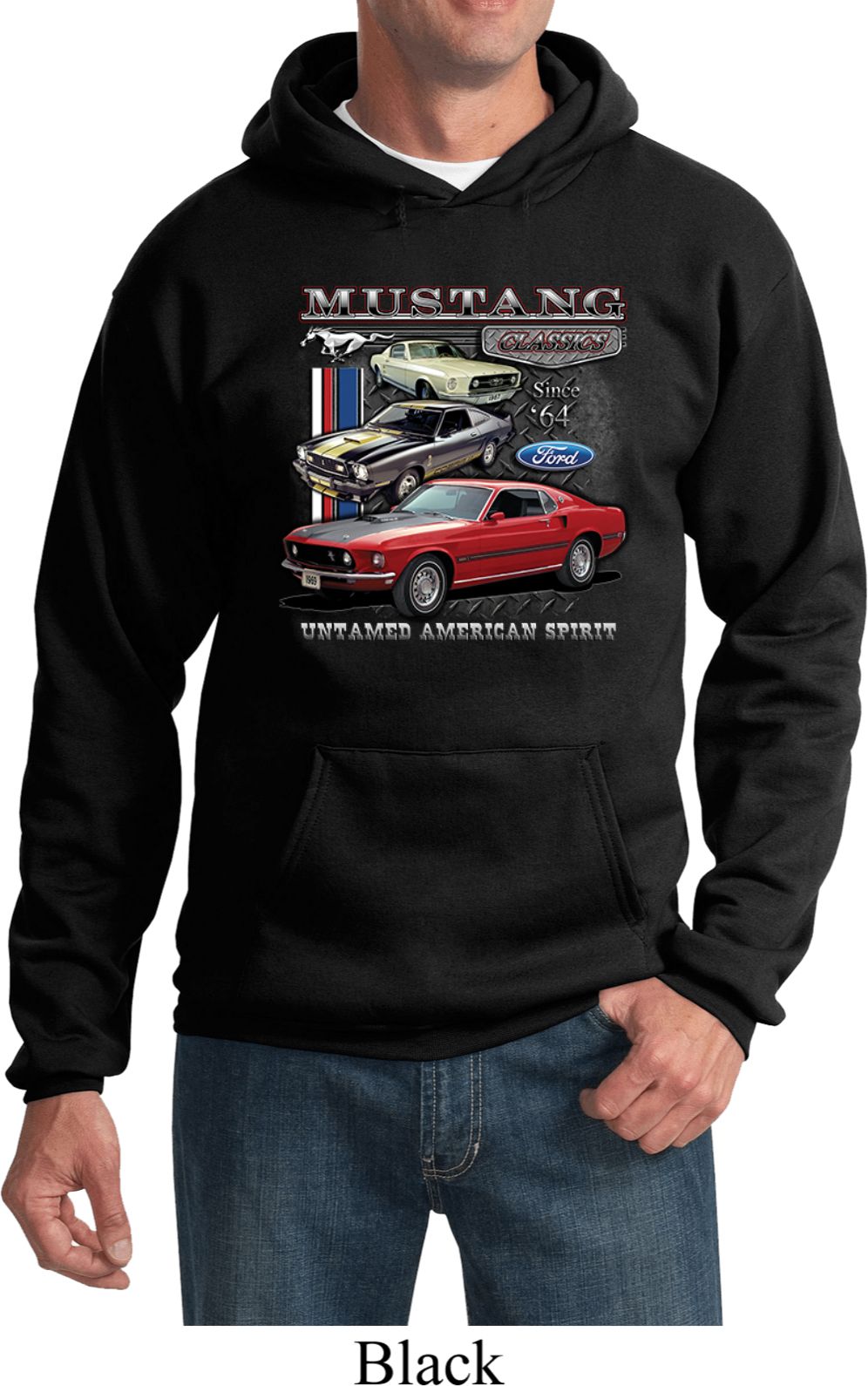 | | Mens Ford Hoodie Classic Mustangs Untamed HoodyA mens hoodie with a kangaroo pouch pocket featuring Ford Mustang Classics since 1964, Untamed American Spirit. Our mens hoodie is made with a blend of cotton/poly. Available in sizes Small through 4XL. Machine wash cold with like colors; dry low heat. ![]() |