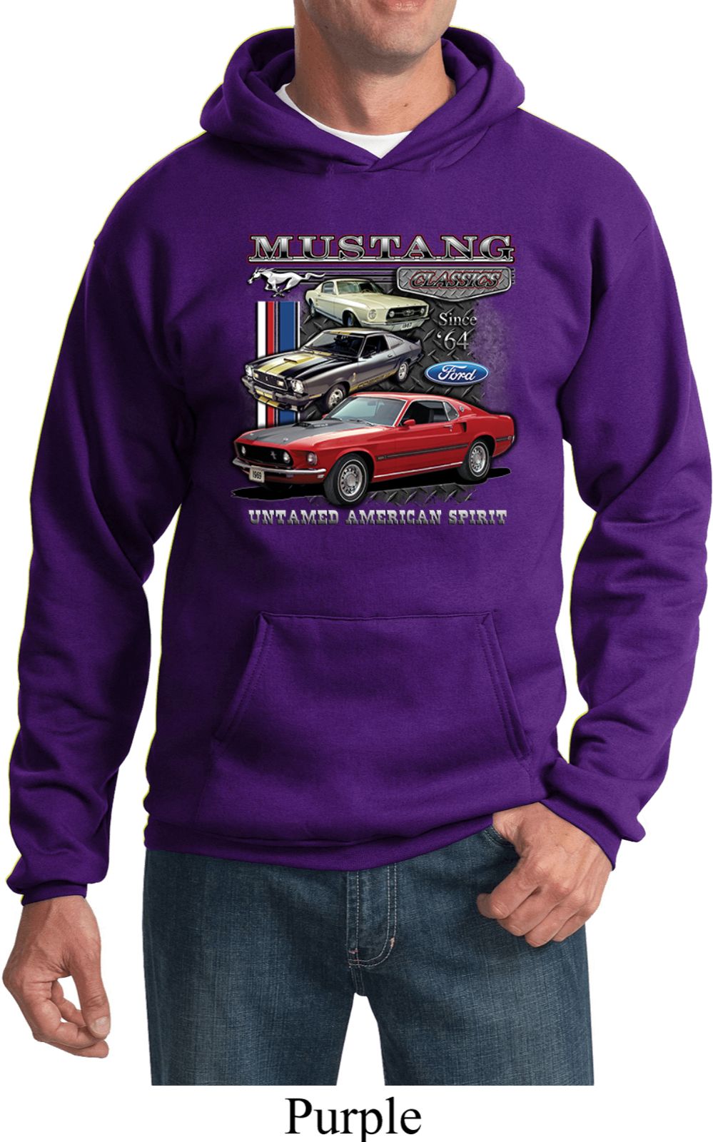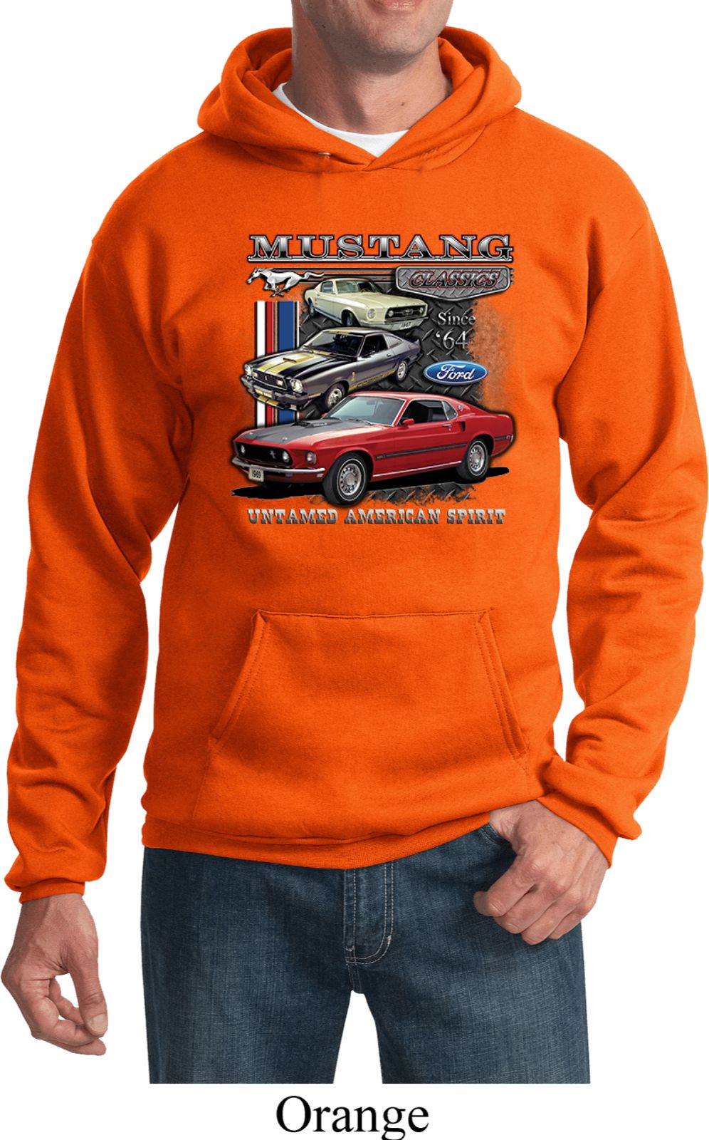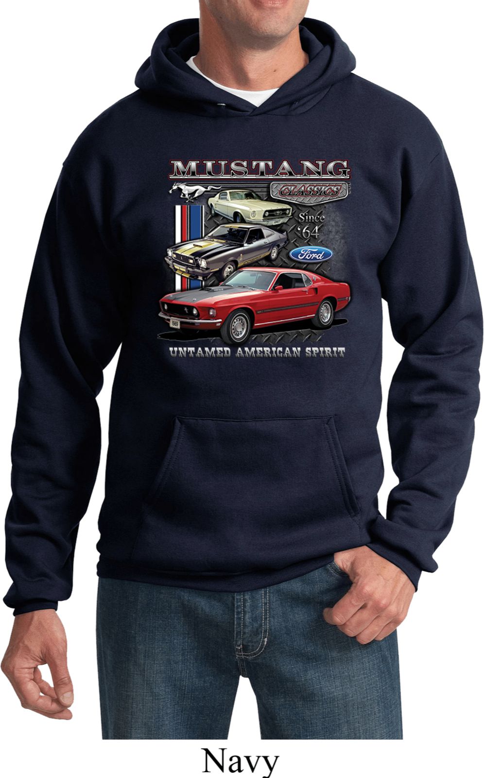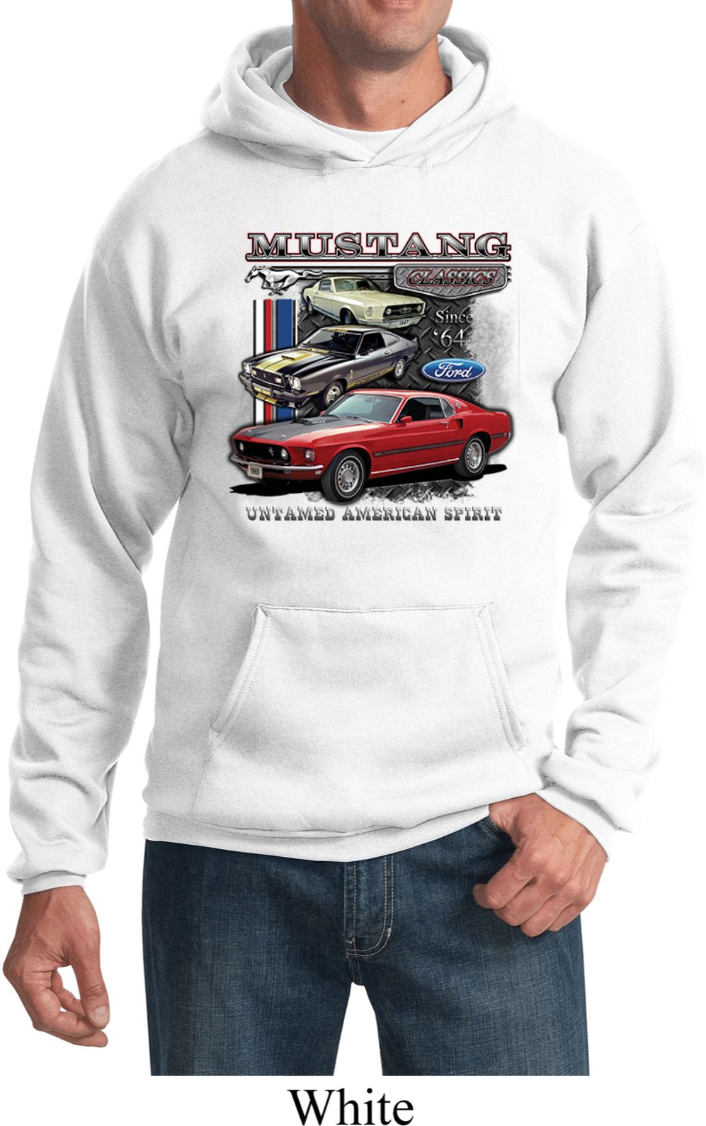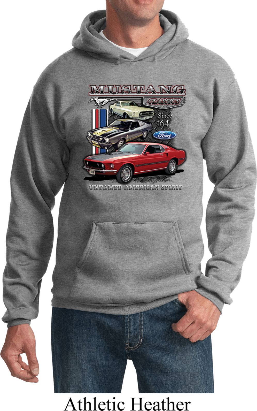 | | Mens Ford Hoodie Classic Mustangs Untamed HoodyA mens hoodie with a kangaroo pouch pocket featuring Ford Mustang Classics since 1964, Untamed American Spirit. Our mens hoodie is made with a blend of cotton/poly. Available in sizes Small through 4XL. Machine wash cold with like colors; dry low heat. ![]() |