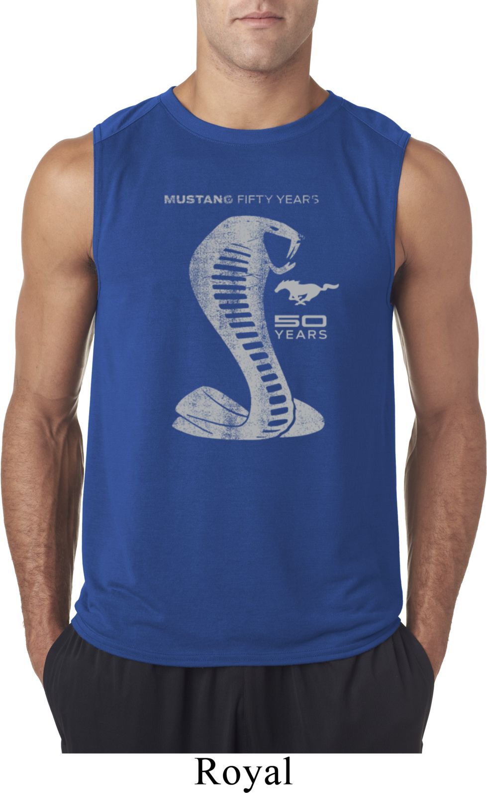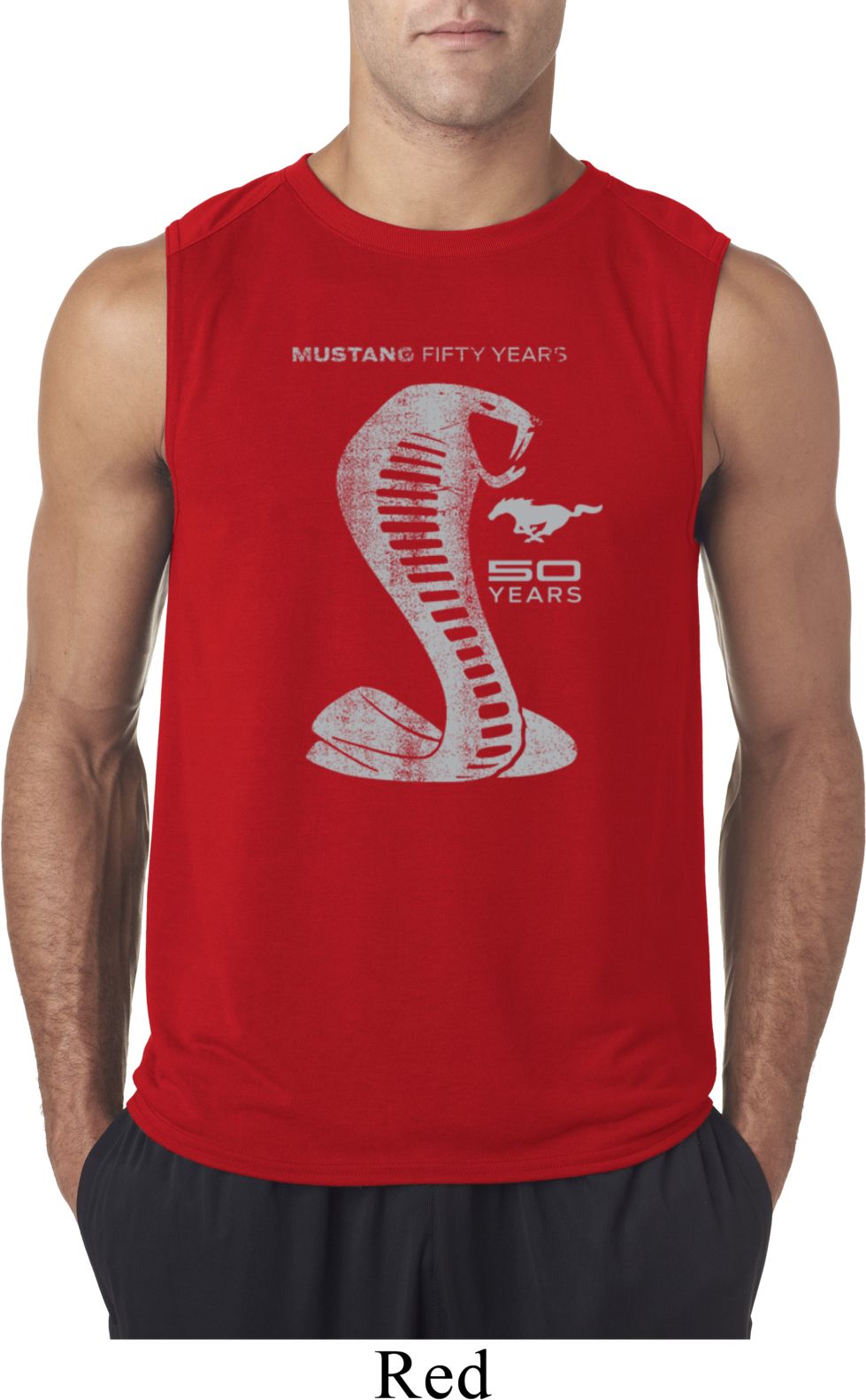 | | Mens Ford Shirt 50 Years Cobra Sleeveless Tee T-ShirtMens Ford Shirt 50 Years Cobra Sleeveless Tee T-Shirt 100% polyester Athletic heather is a cotton/poly blend Available in Small, Medium, Large, XL & 2XL Also available in colors Black, Charcoal, Navy, Red, Royal, and White |