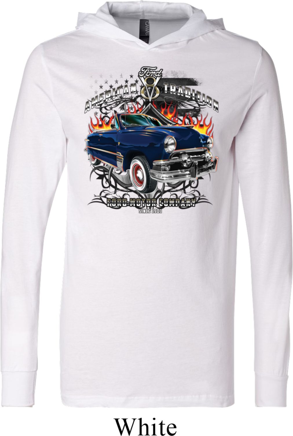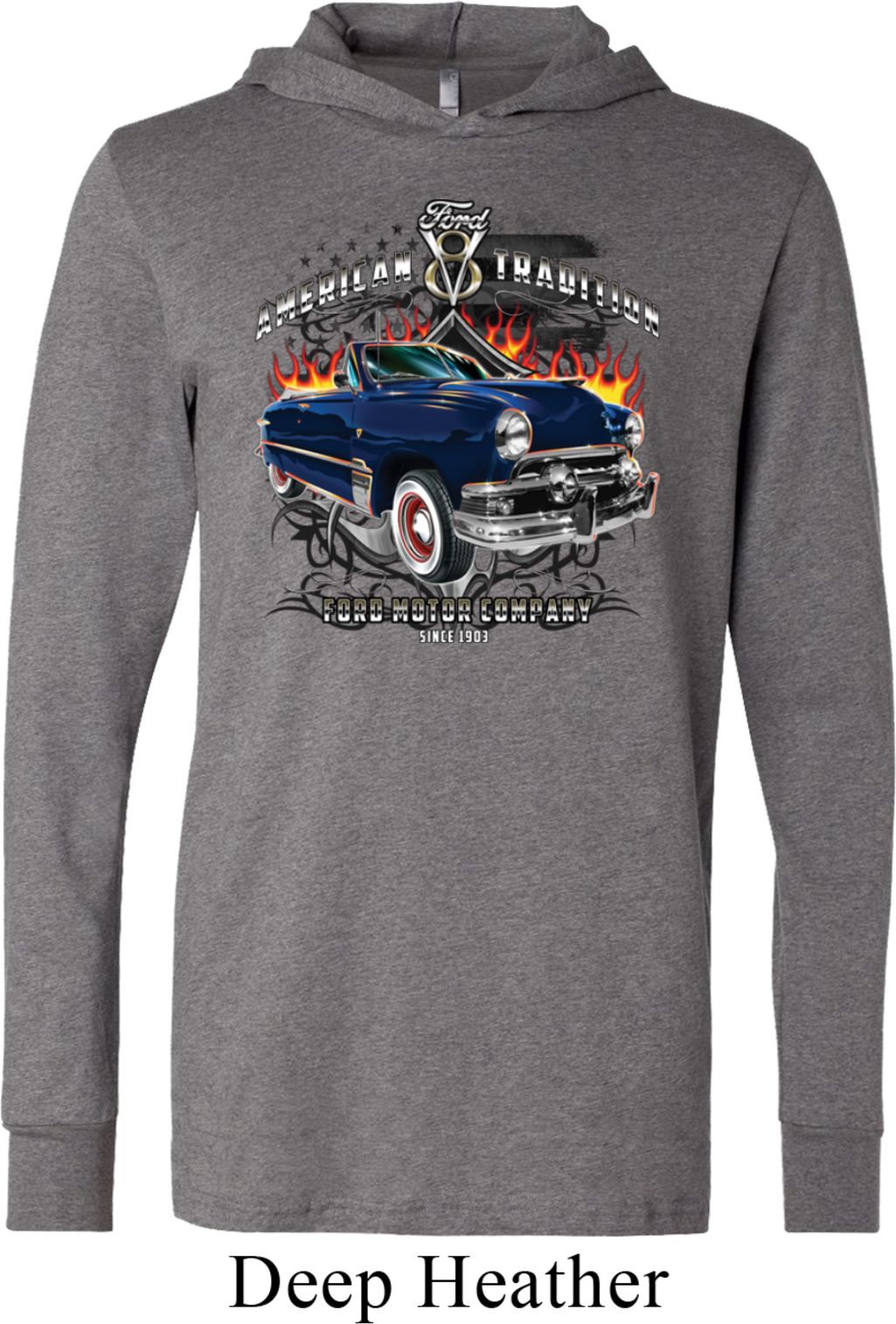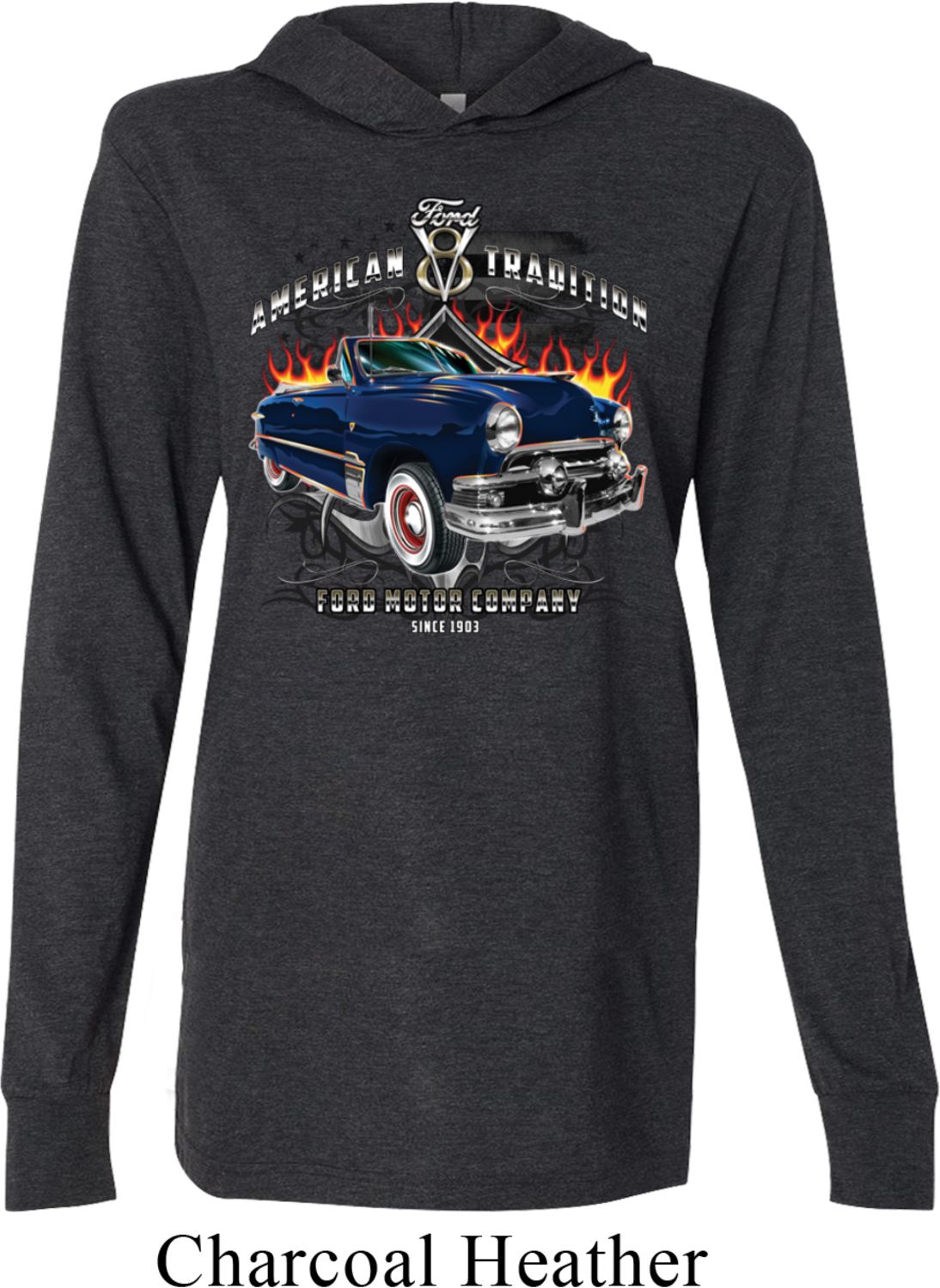 | | Mens Ford Shirt American Tradition Lightweight Hoodie TeeMens Ford Shirt American Tradition Lightweight Hoodie Tee A cool shirt to wear to a car show A cotton/poly blend Asphalt, black, and white are 100% cotton Charcoal heather is a cotton/poly blend Available in Small, Medium, Large, XL & 2XL Also available in colors Asphalt, Black, Charcoal Heather, Deep Heather, Grey/Charcoal, Navy, Royal, and White |