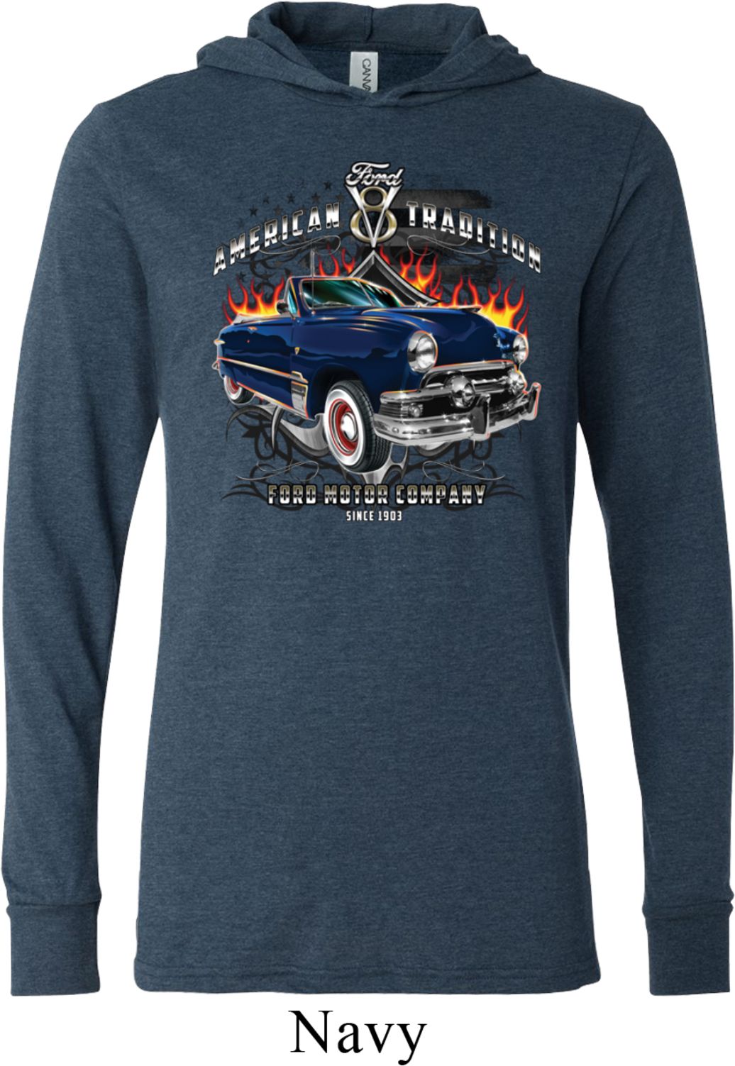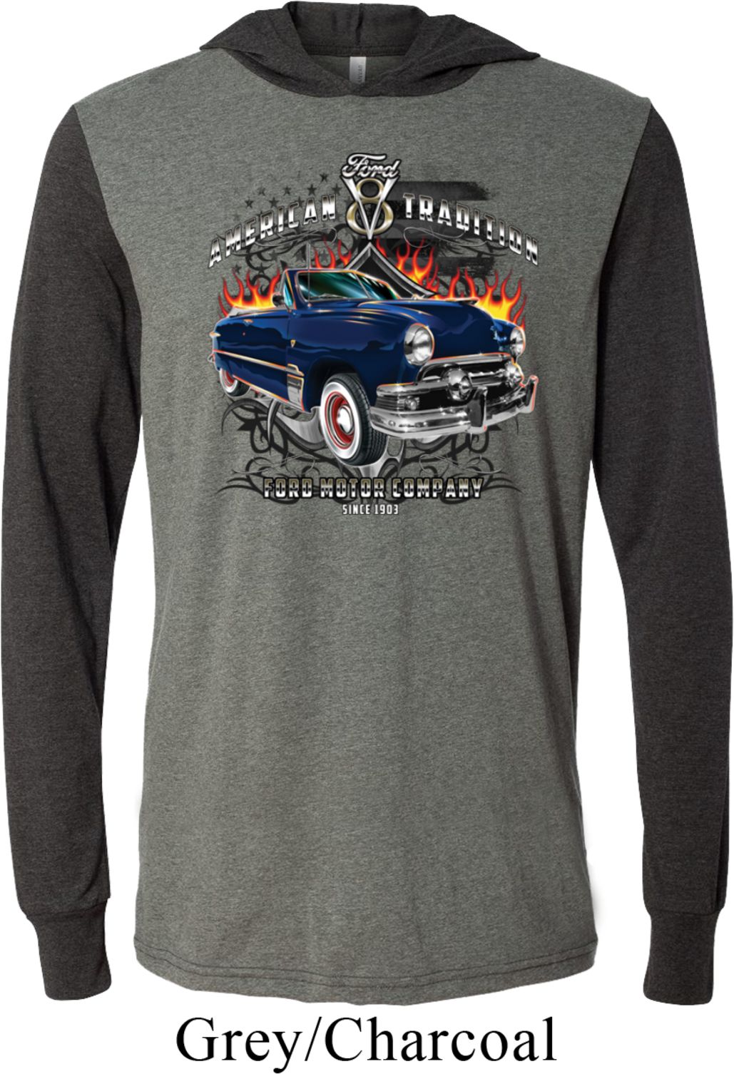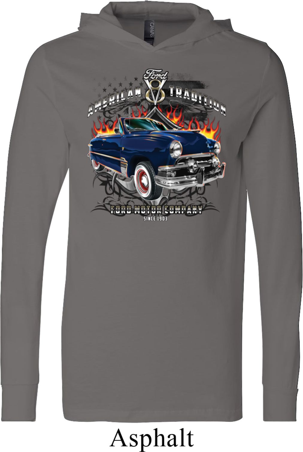| | Mens Ford Shirt American Tradition Lightweight Hoodie TeeMens Ford Shirt American Tradition Lightweight Hoodie Tee A cool shirt to wear to a car show A cotton/poly blend Asphalt, black, and white are 100% cotton Charcoal heather is a cotton/poly blend Available in Small, Medium, Large, XL & 2XL Also available in colors Asphalt, Black, Charcoal Heather, Deep Heather, Grey/Charcoal, Navy, Royal, and White |