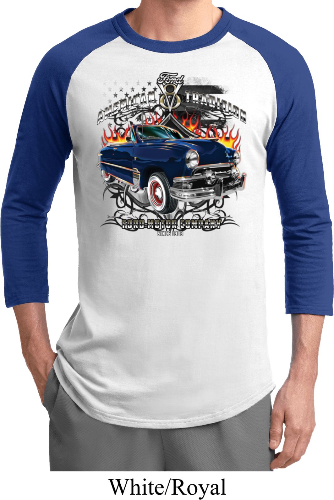| | Mens Ford Shirt American Tradition Raglan ShirtMens Ford Shirt American Tradition Raglan Shirt A cool shirt to wear to a car show 100% cotton Grey/Black and grey/navy are a cotton/poly blend Available in Small, Medium, Large, XL, 2XL, 3XL, 4XL, 5XL & 6XL Also available in colors Carolina Blue/Navy, Gold/Navy, Grey/Black, Grey/Navy, White/Black, White/Cardinal, White/Forest, White/Gold, White/Maroon, White/Navy, White/Purple, White/Red, and White/Royal ![]() |