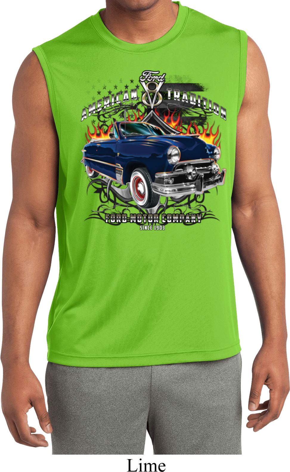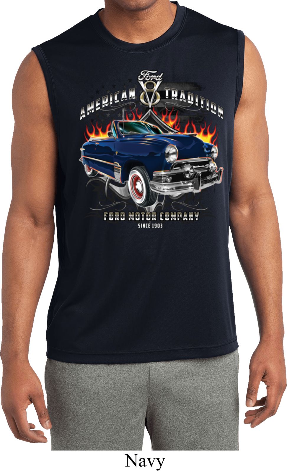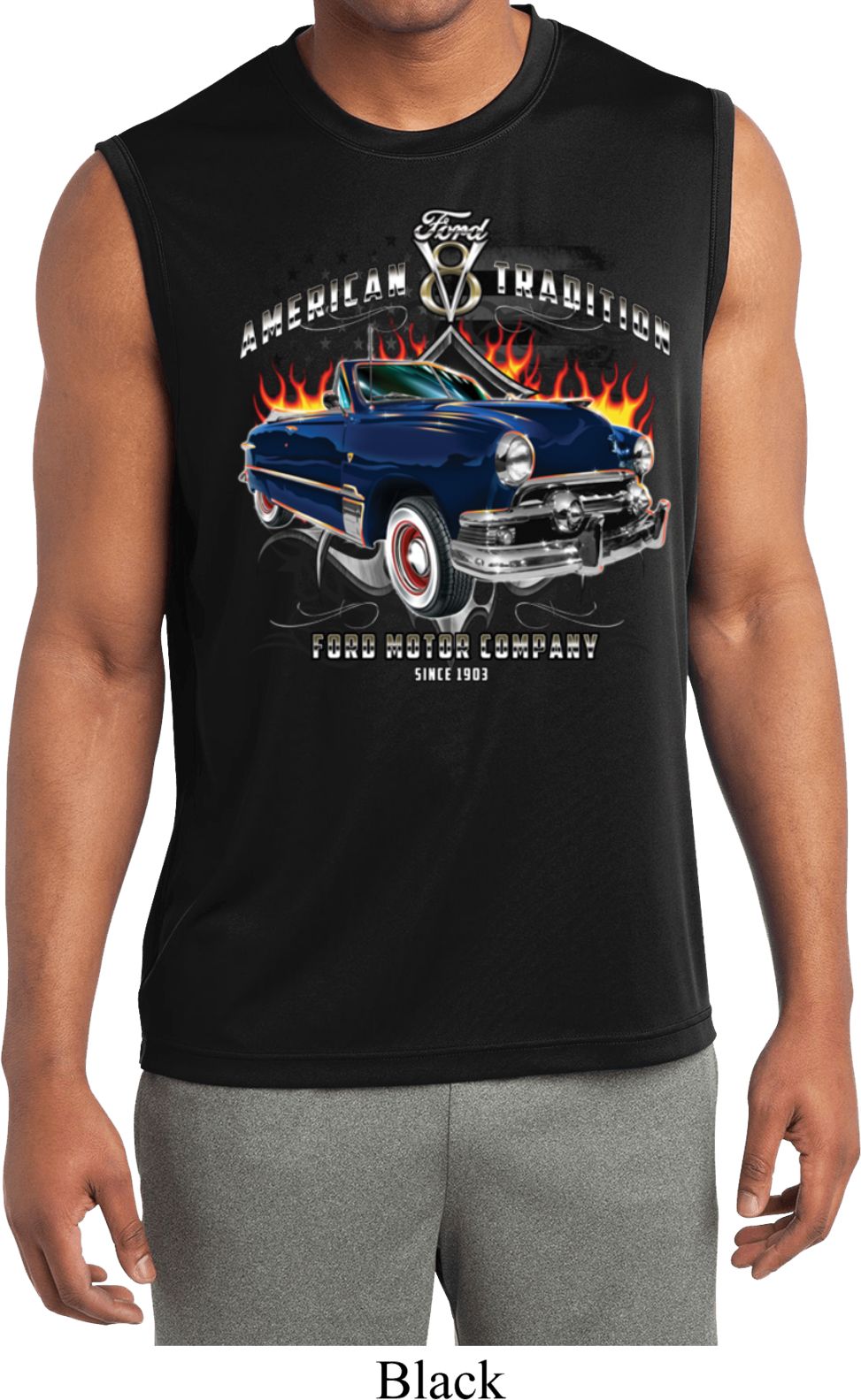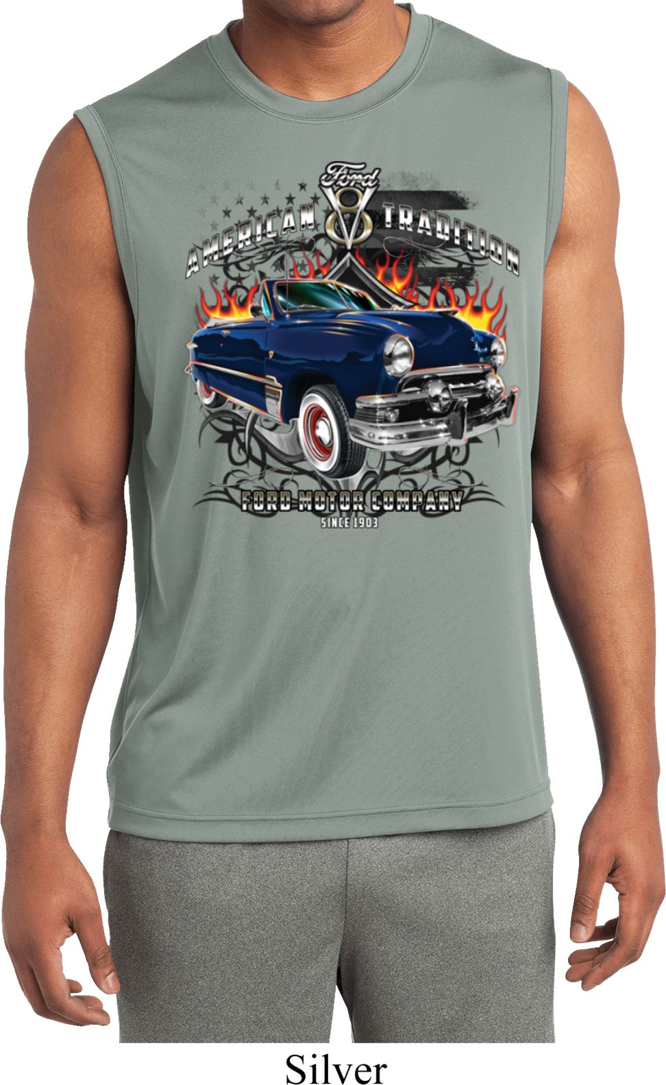 | | Mens Ford Shirt American Tradition Sleeveless Moisture Wicking ShirtMens Ford Shirt American Tradition Sleeveless Moisture Wicking Shirt A cool shirt to wear to a car show 100% polyester Available in Small, Medium, Large, XL, 2XL, 3XL & 4XL Also available in colors Black, Lime, Navy, Red, Royal, Silver, and White |