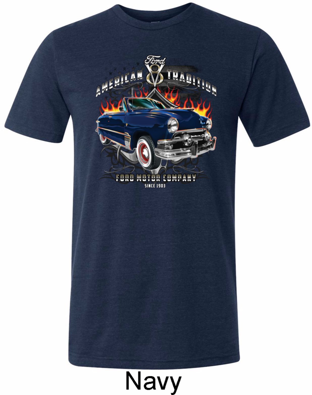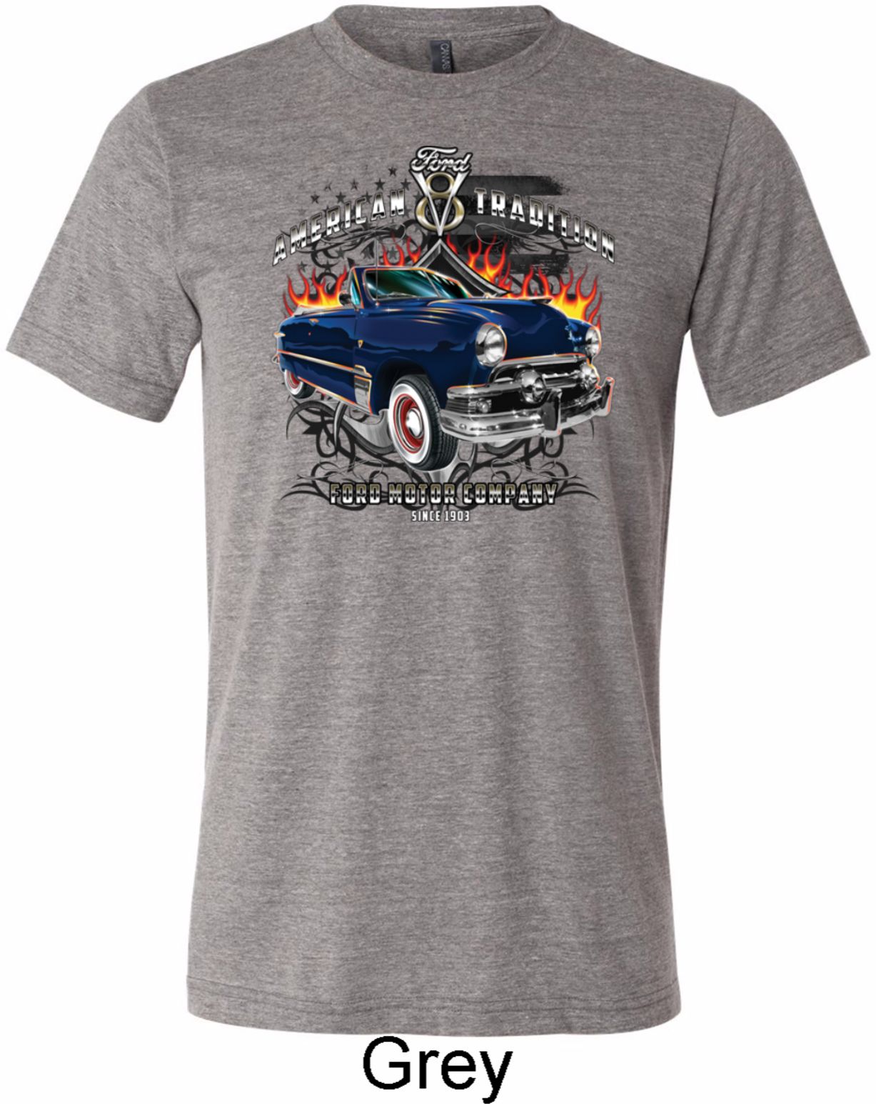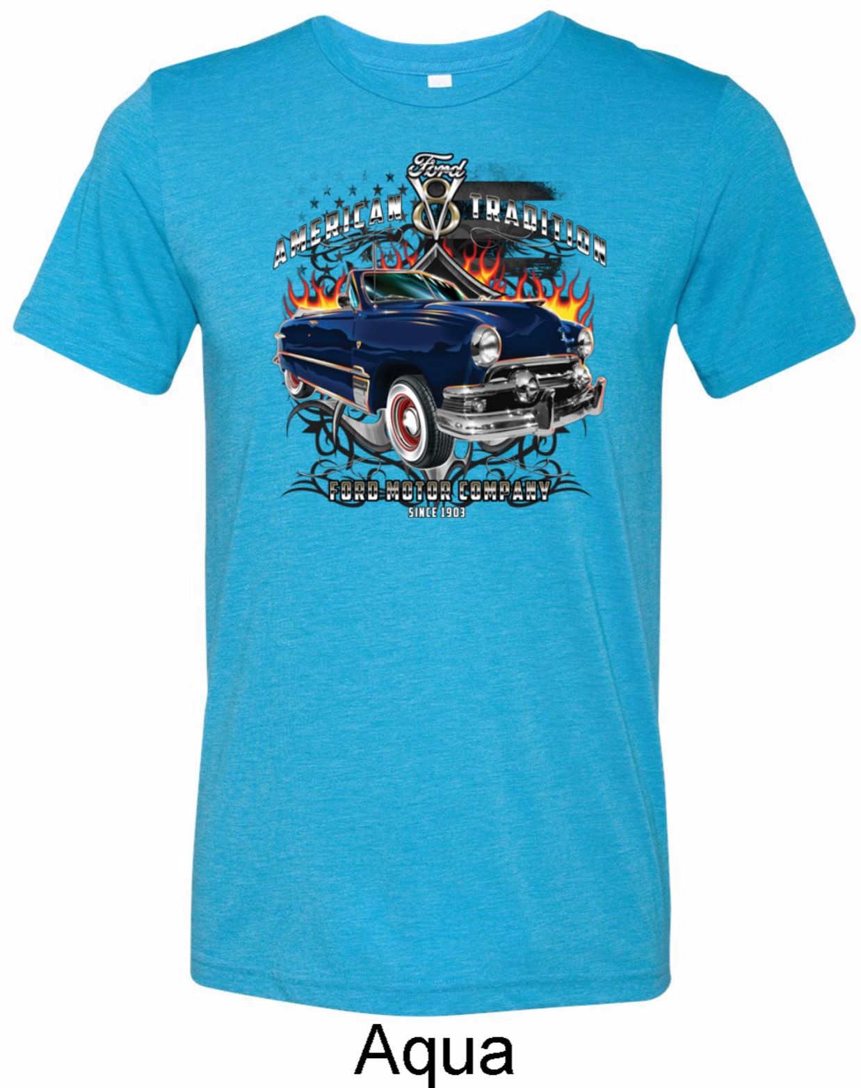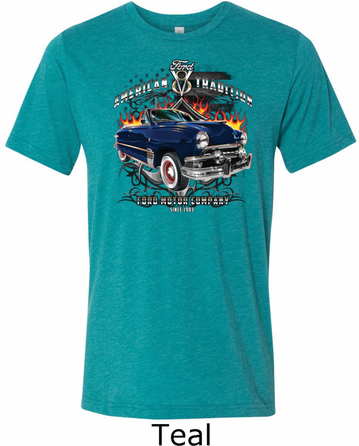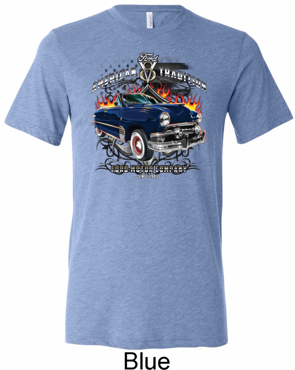 | | Mens Ford Shirt American Tradition Tri Blend Crewneck ShirtMens Ford Shirt American Tradition Tri Blend Crewneck Shirt A cool shirt to wear to a car show A cotton/poly/rayon blend Available in Small, Medium, Large, XL & 2XL Also available in colors Aqua, Athletic Grey, Berry, Blue, Brown, Charcoal Black, Clay, Emerald, Green, Grey, Maroon, Navy, Oatmeal, Orange, Purple, Red, Solid Black, Teal, Royal, and White |
