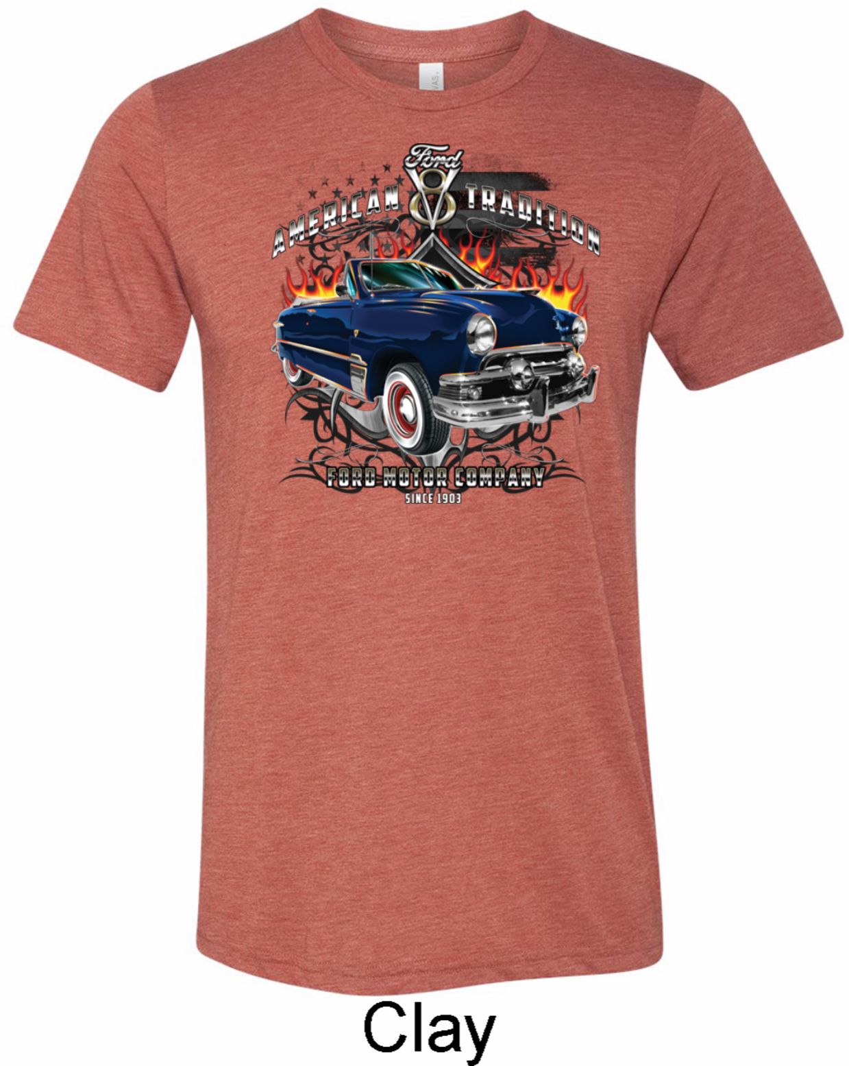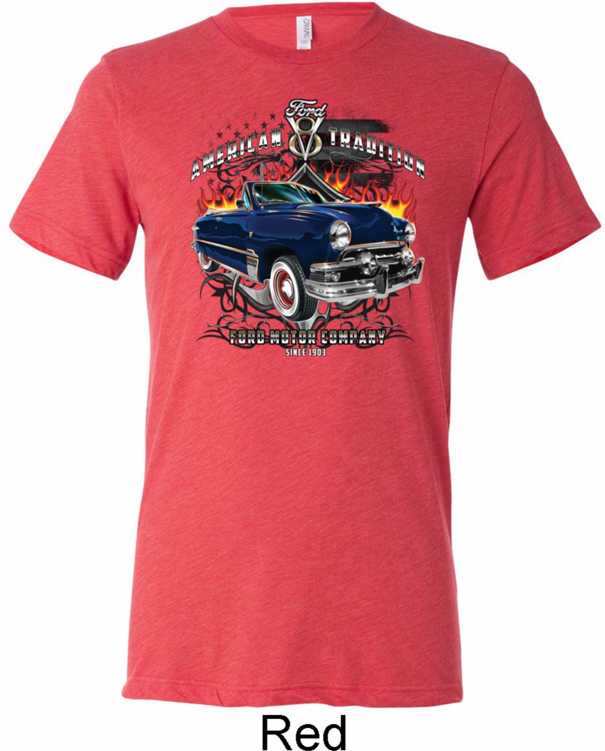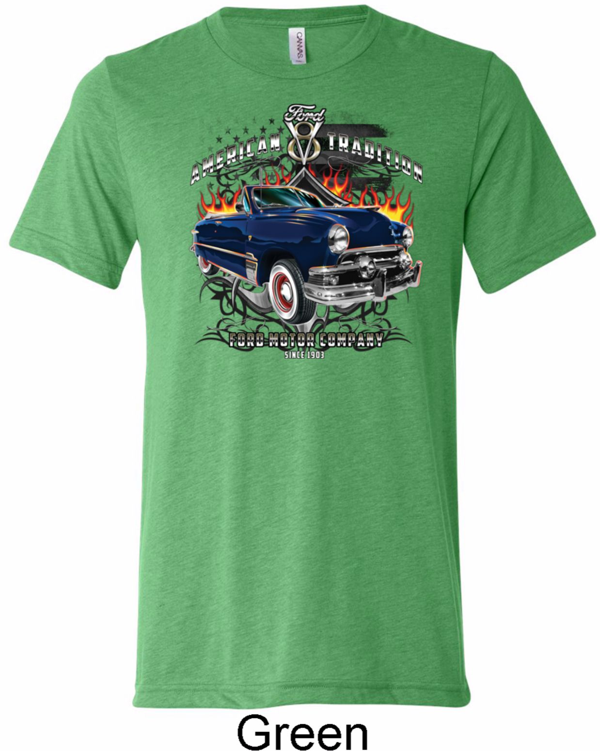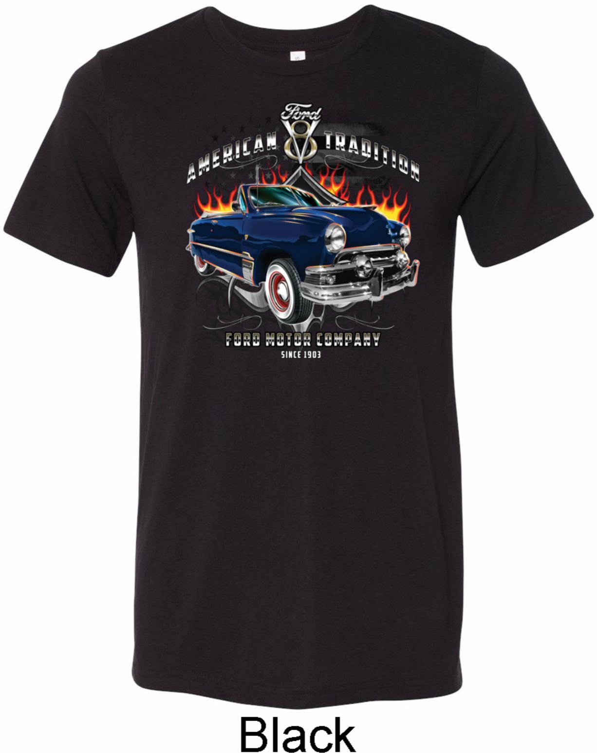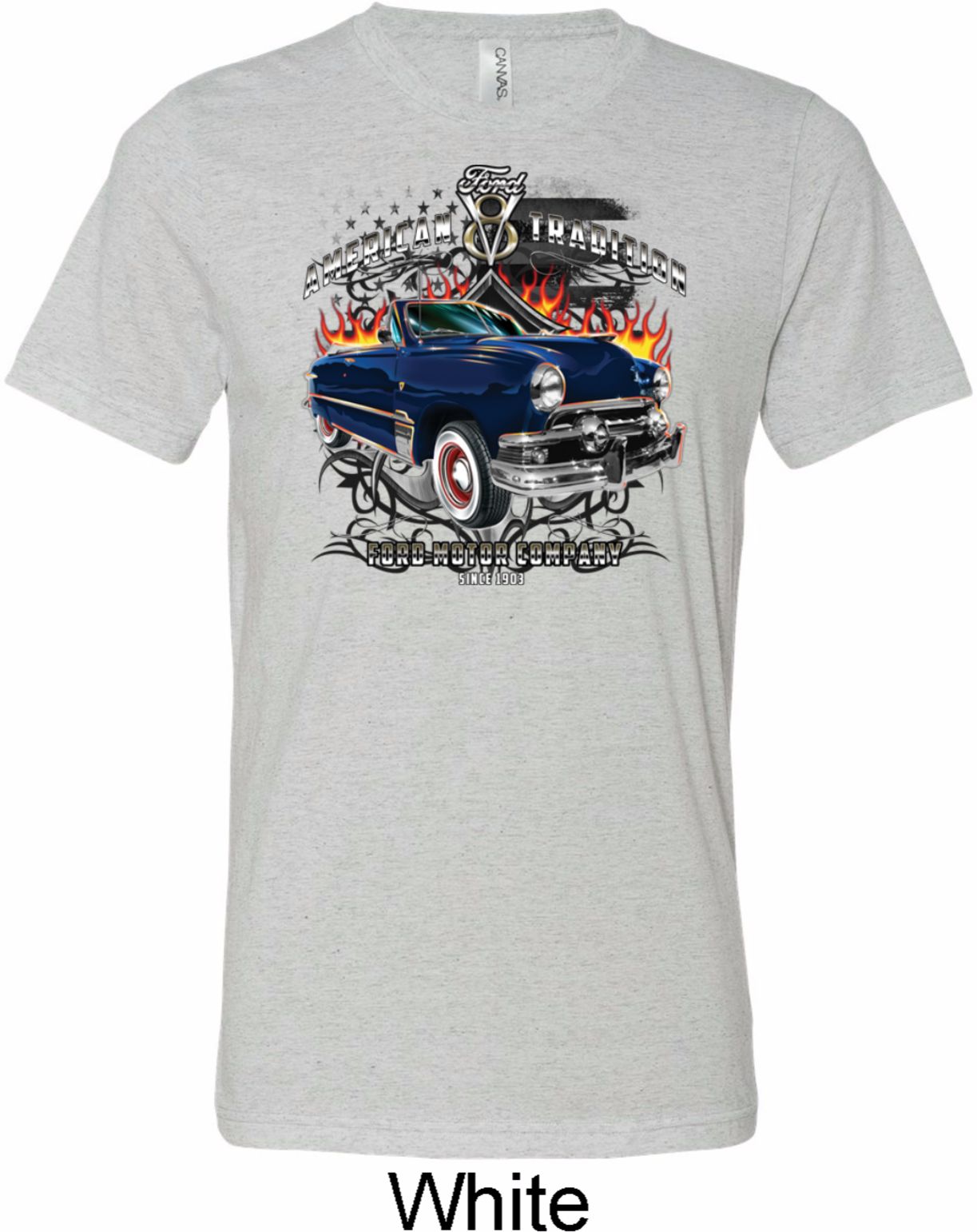 | | Mens Ford Shirt American Tradition Tri Blend Crewneck ShirtMens Ford Shirt American Tradition Tri Blend Crewneck Shirt A cool shirt to wear to a car show A cotton/poly/rayon blend Available in Small, Medium, Large, XL & 2XL Also available in colors Aqua, Athletic Grey, Berry, Blue, Brown, Charcoal Black, Clay, Emerald, Green, Grey, Maroon, Navy, Oatmeal, Orange, Purple, Red, Solid Black, Teal, Royal, and White |