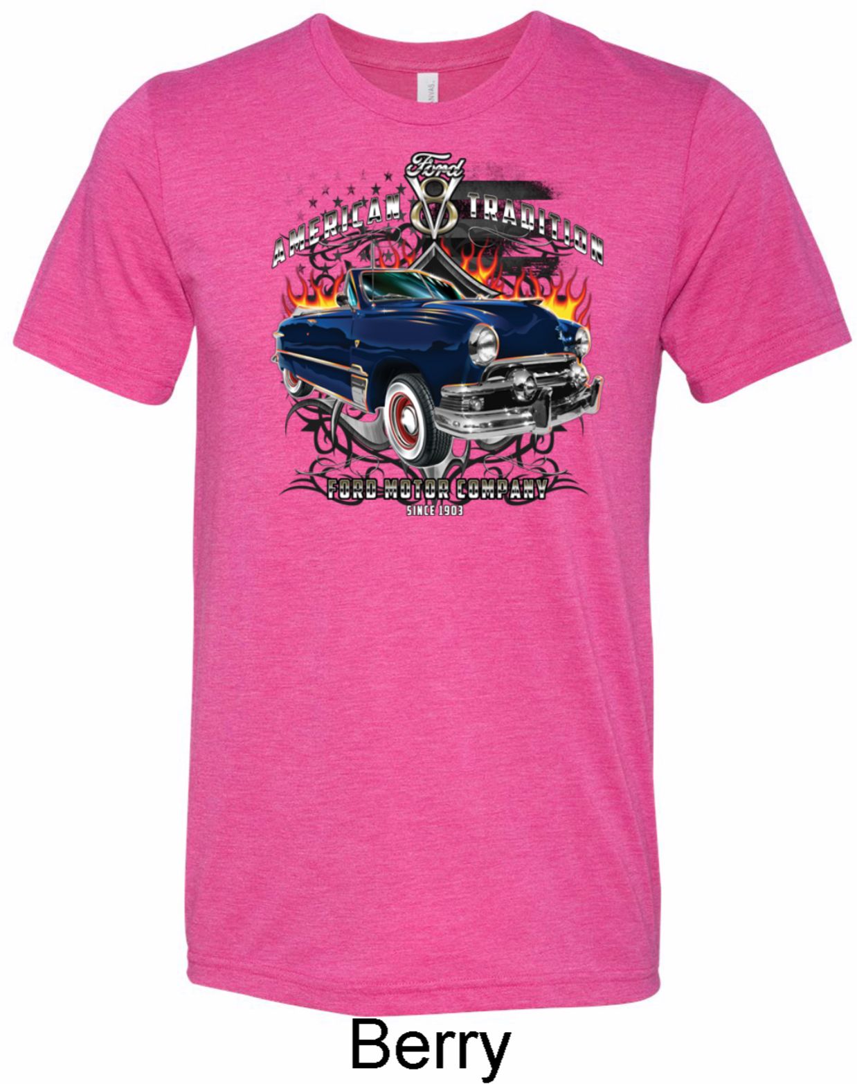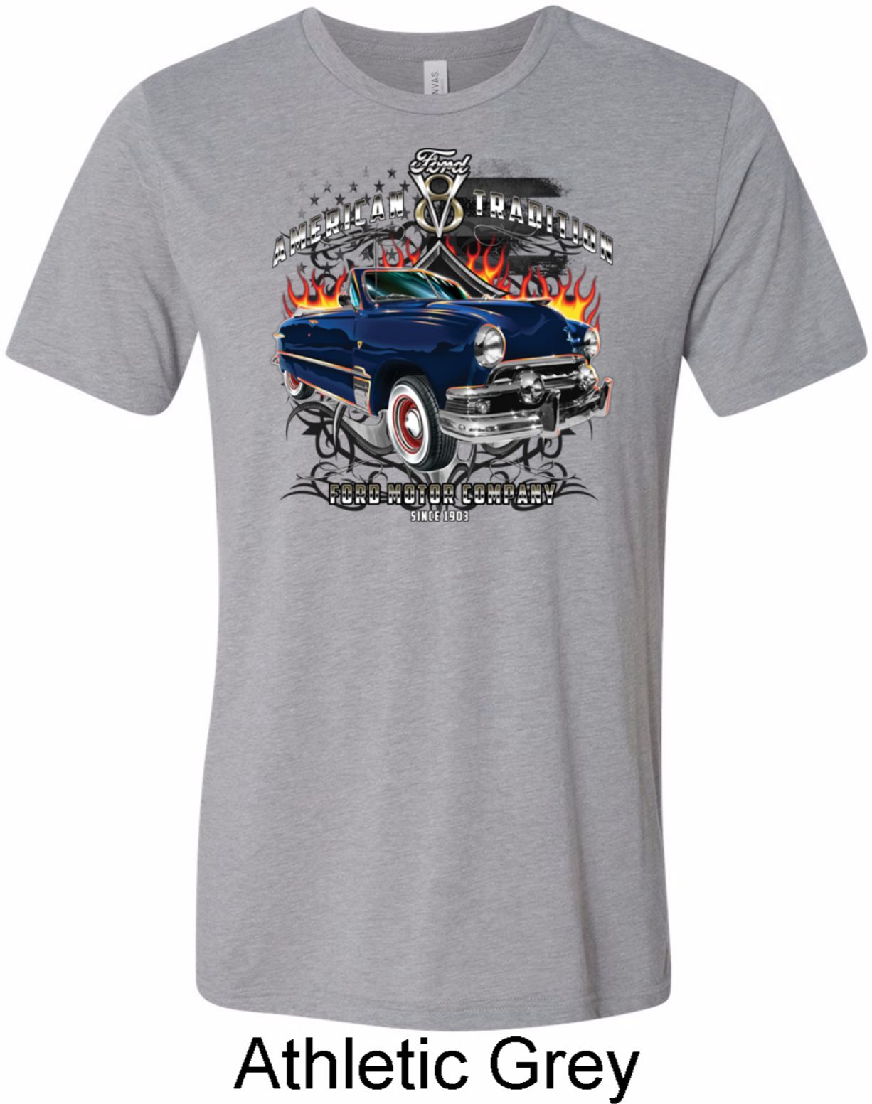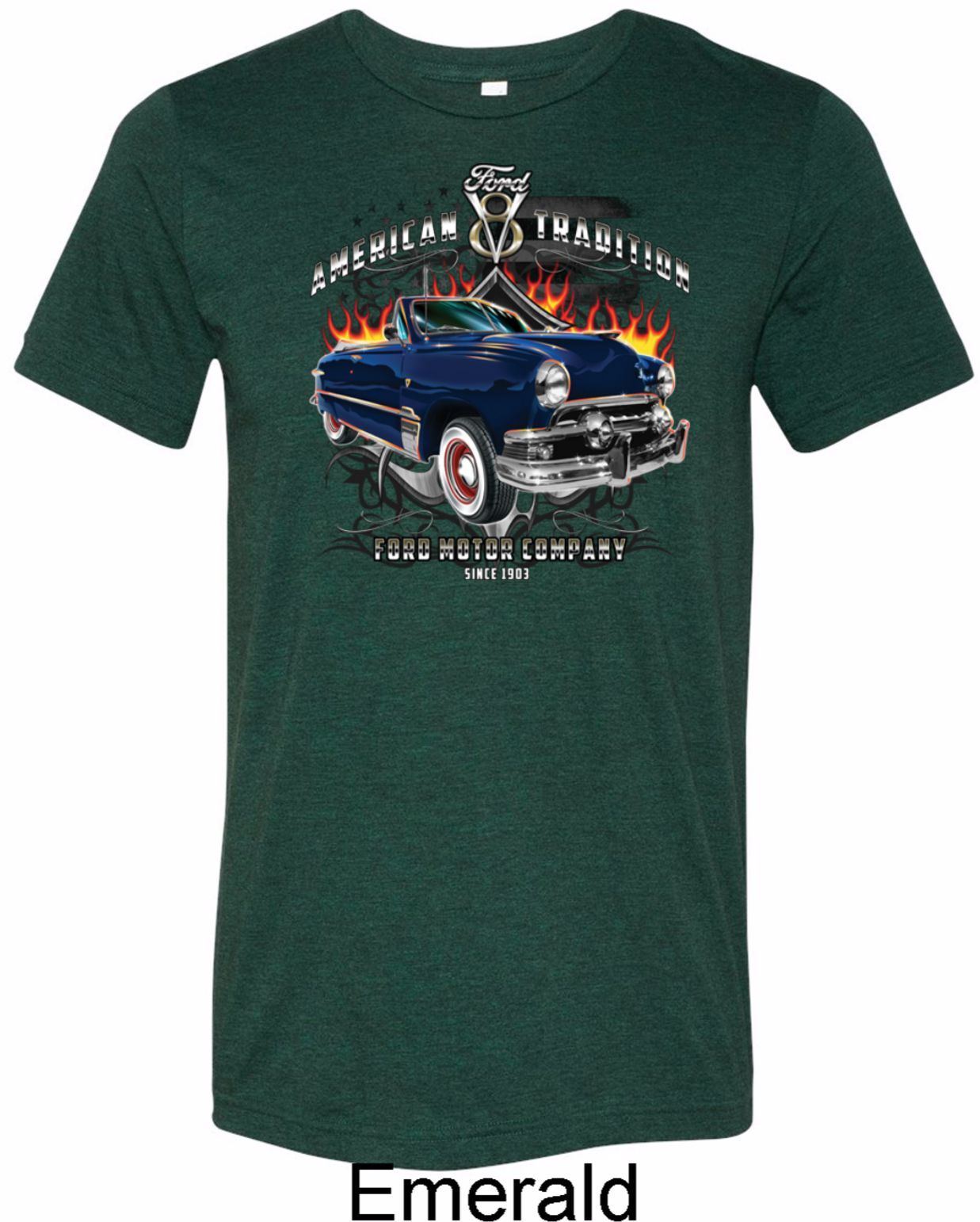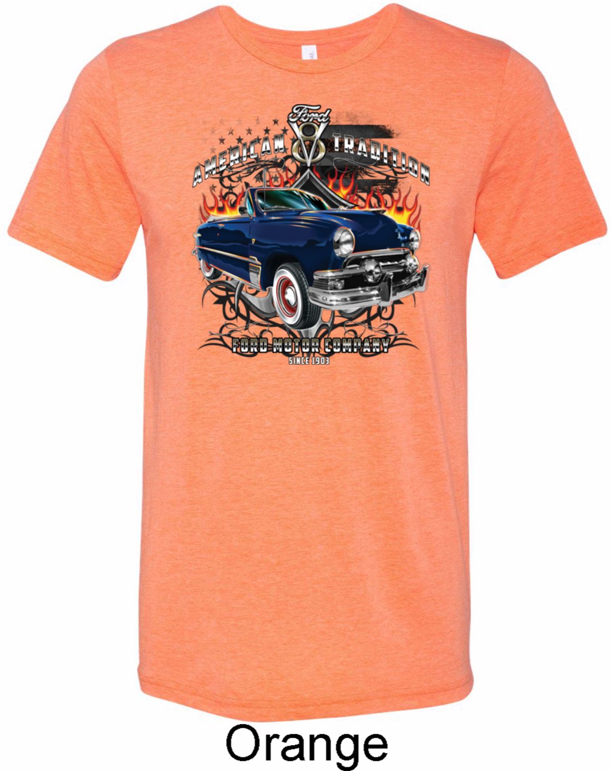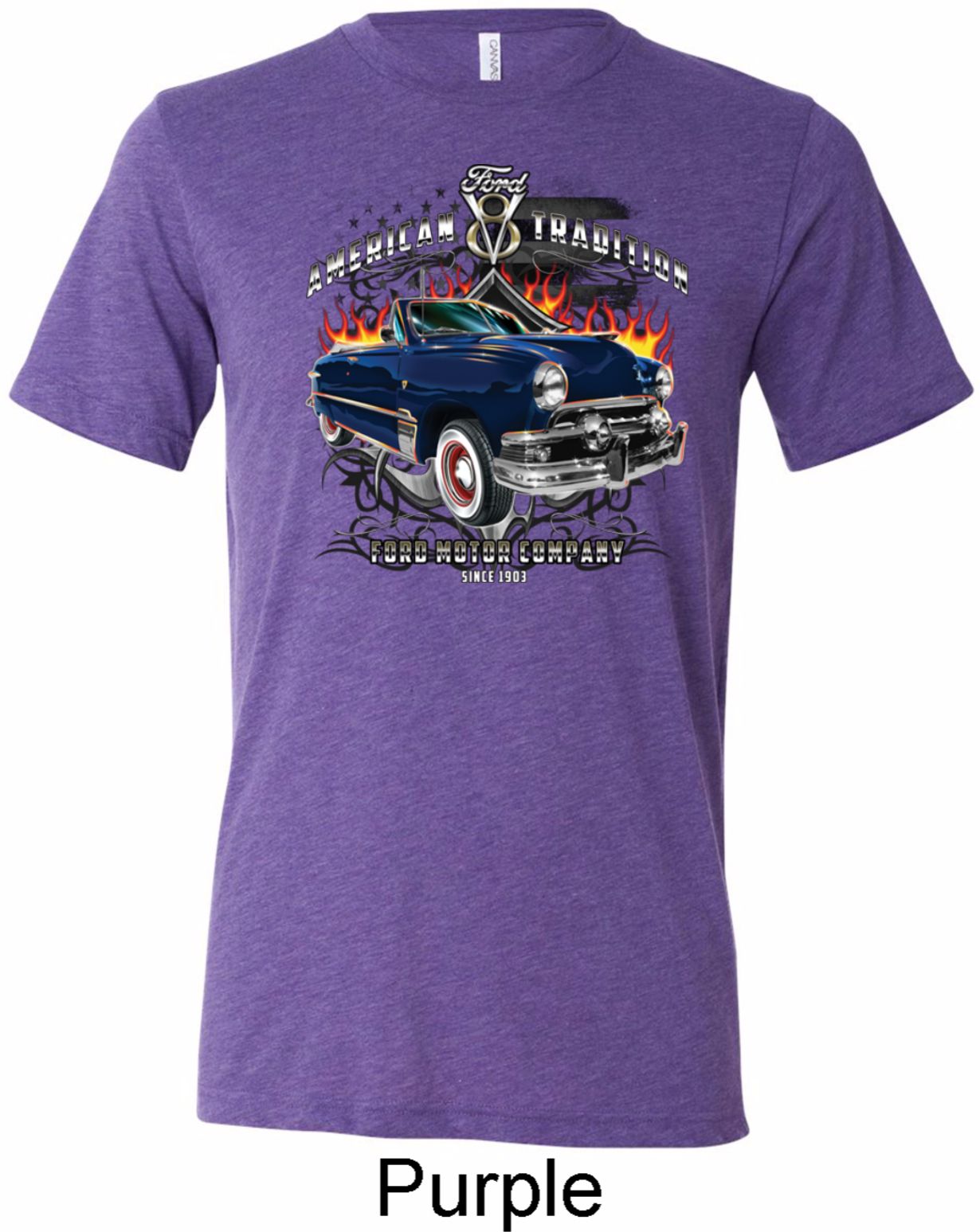 | | Mens Ford Shirt American Tradition Tri Blend Crewneck ShirtMens Ford Shirt American Tradition Tri Blend Crewneck Shirt A cool shirt to wear to a car show A cotton/poly/rayon blend Available in Small, Medium, Large, XL & 2XL Also available in colors Aqua, Athletic Grey, Berry, Blue, Brown, Charcoal Black, Clay, Emerald, Green, Grey, Maroon, Navy, Oatmeal, Orange, Purple, Red, Solid Black, Teal, Royal, and White |