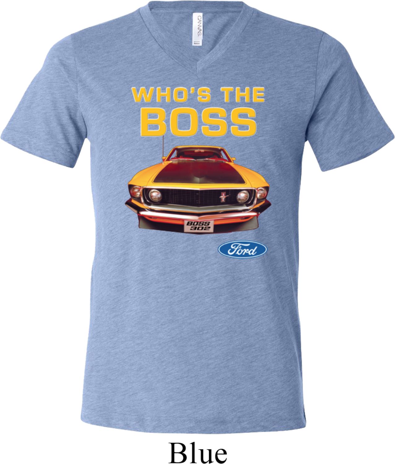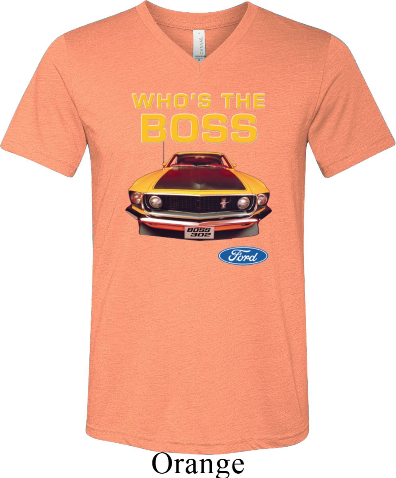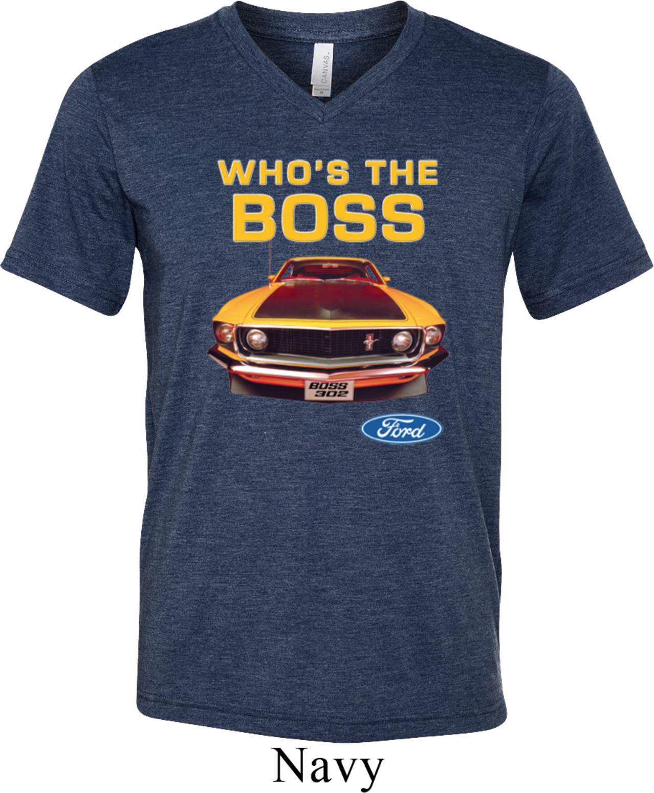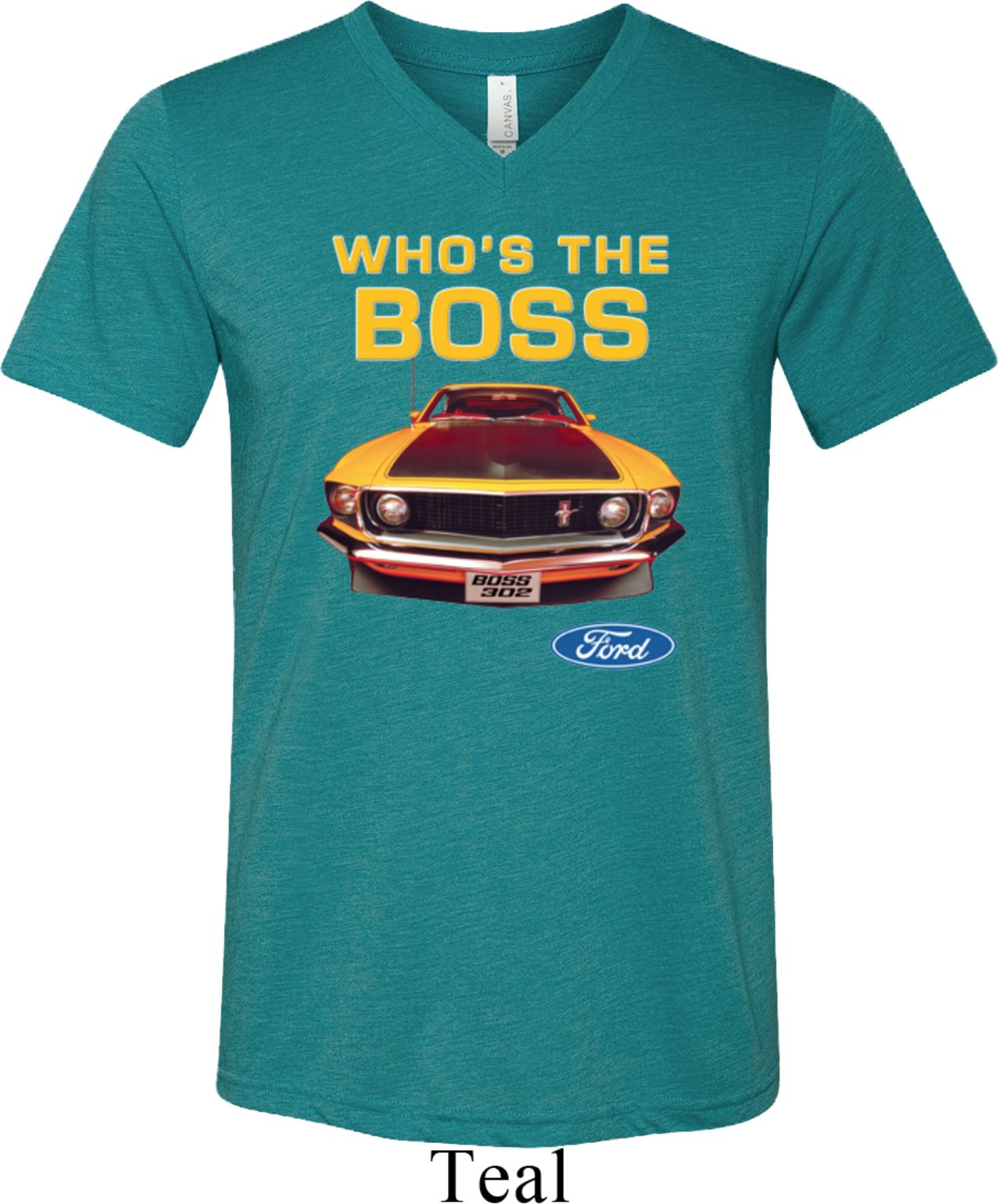 | | Mens Ford Shirt Mustang Who's The Boss Tri Blend V-neck ShirtMens Ford Shirt Mustang Who's The Boss Tri Blend V-neck Shirt Everyone feels like a boss when their driving a Mustang A cotton/poly/rayon blend Available in Small, Medium, Large, XL & 2XL Also available in colors Aqua, Athletic Grey, Blue, Brown, Charcoal Black, Clay, Green, Grey, Maroon, Navy, Oatmeal, Orange, Red, Royal, Teal, and White |