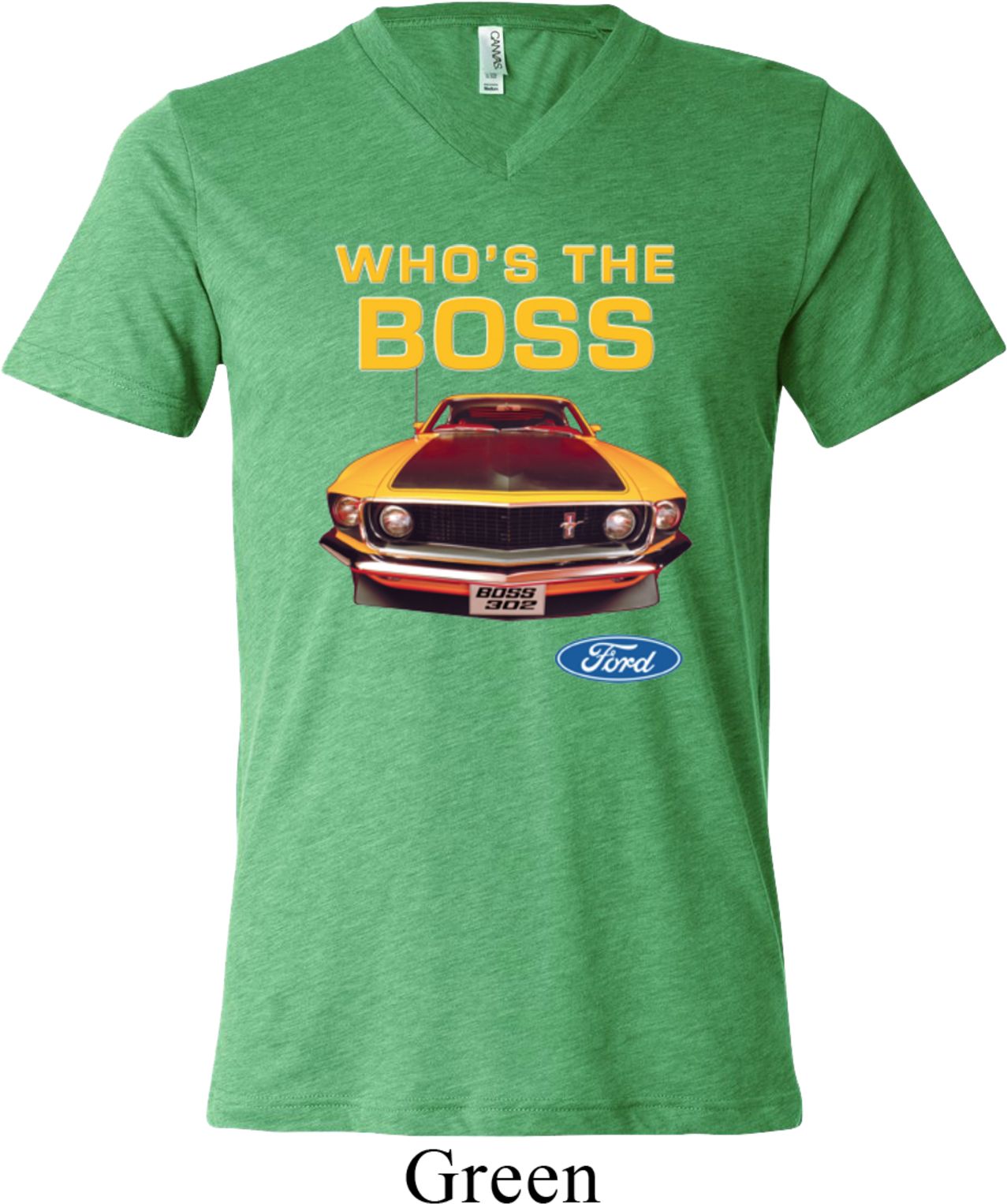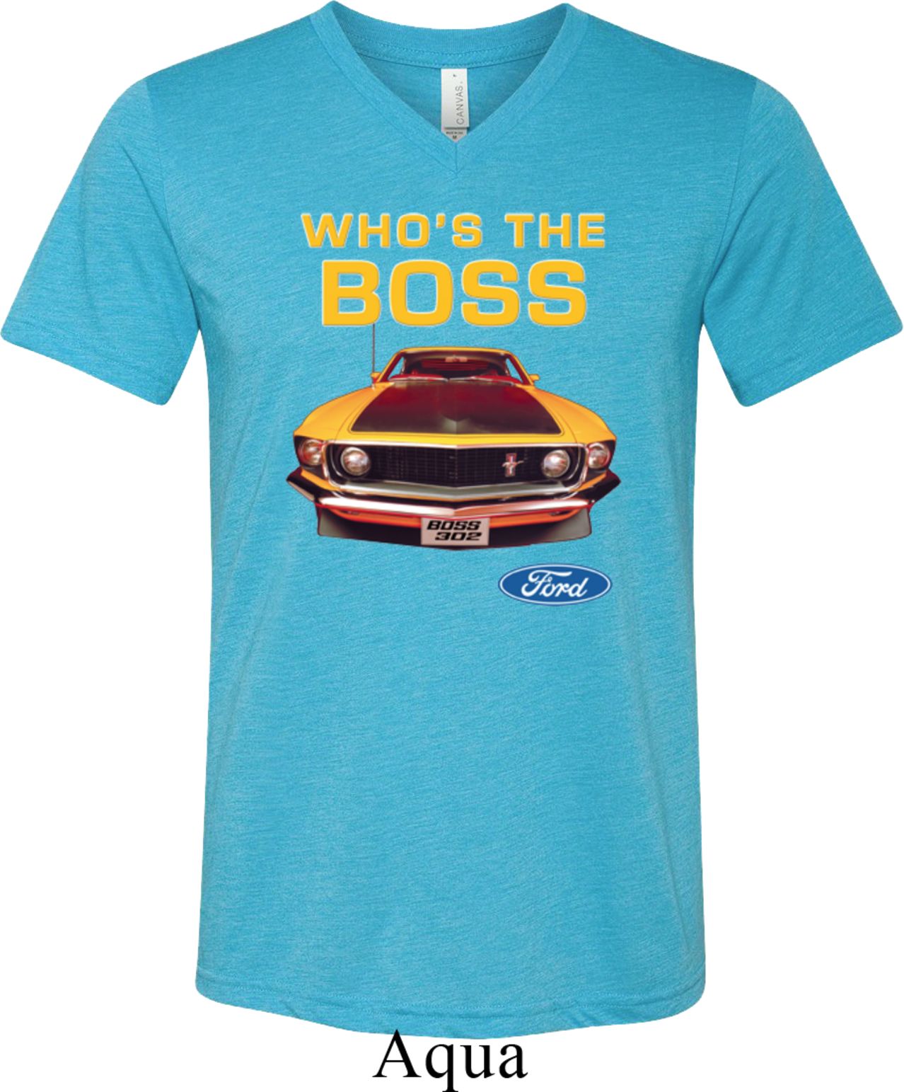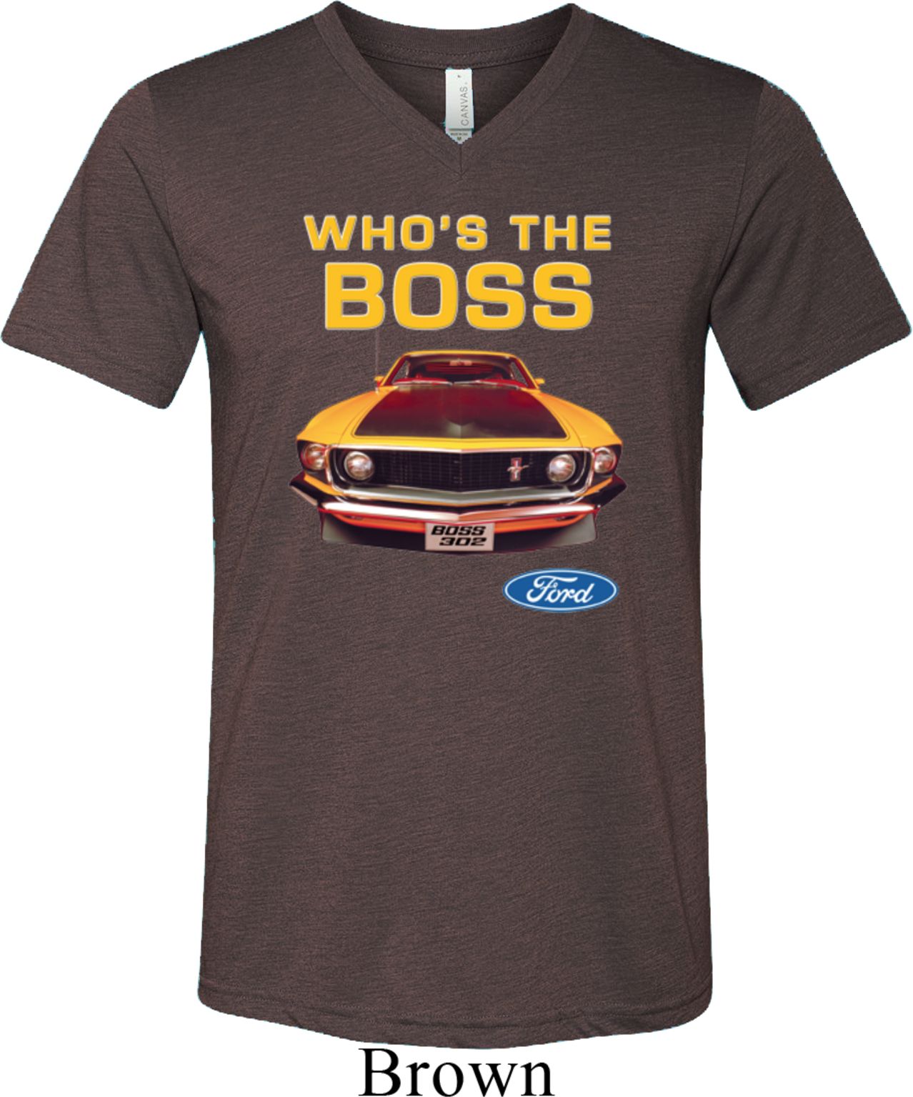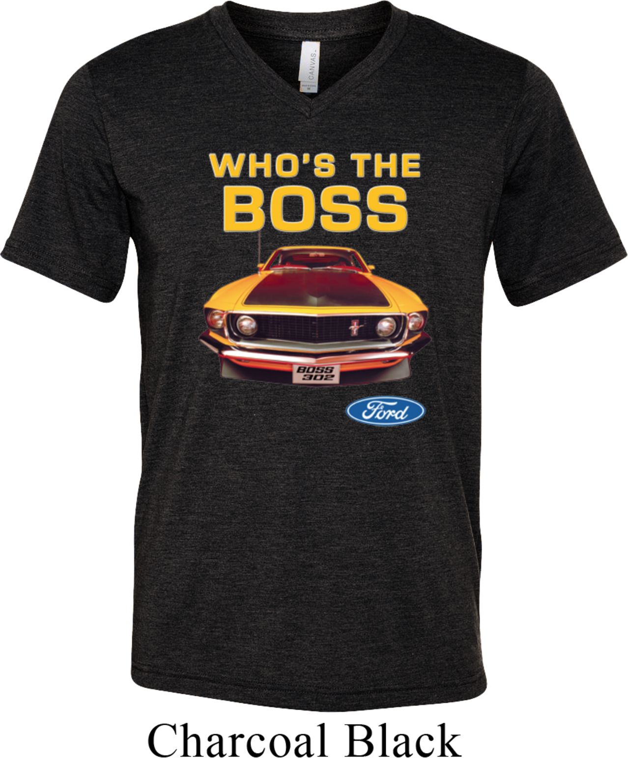 | | Mens Ford Shirt Mustang Who's The Boss Tri Blend V-neck ShirtMens Ford Shirt Mustang Who's The Boss Tri Blend V-neck Shirt Everyone feels like a boss when their driving a Mustang A cotton/poly/rayon blend Available in Small, Medium, Large, XL & 2XL Also available in colors Aqua, Athletic Grey, Blue, Brown, Charcoal Black, Clay, Green, Grey, Maroon, Navy, Oatmeal, Orange, Red, Royal, Teal, and White |