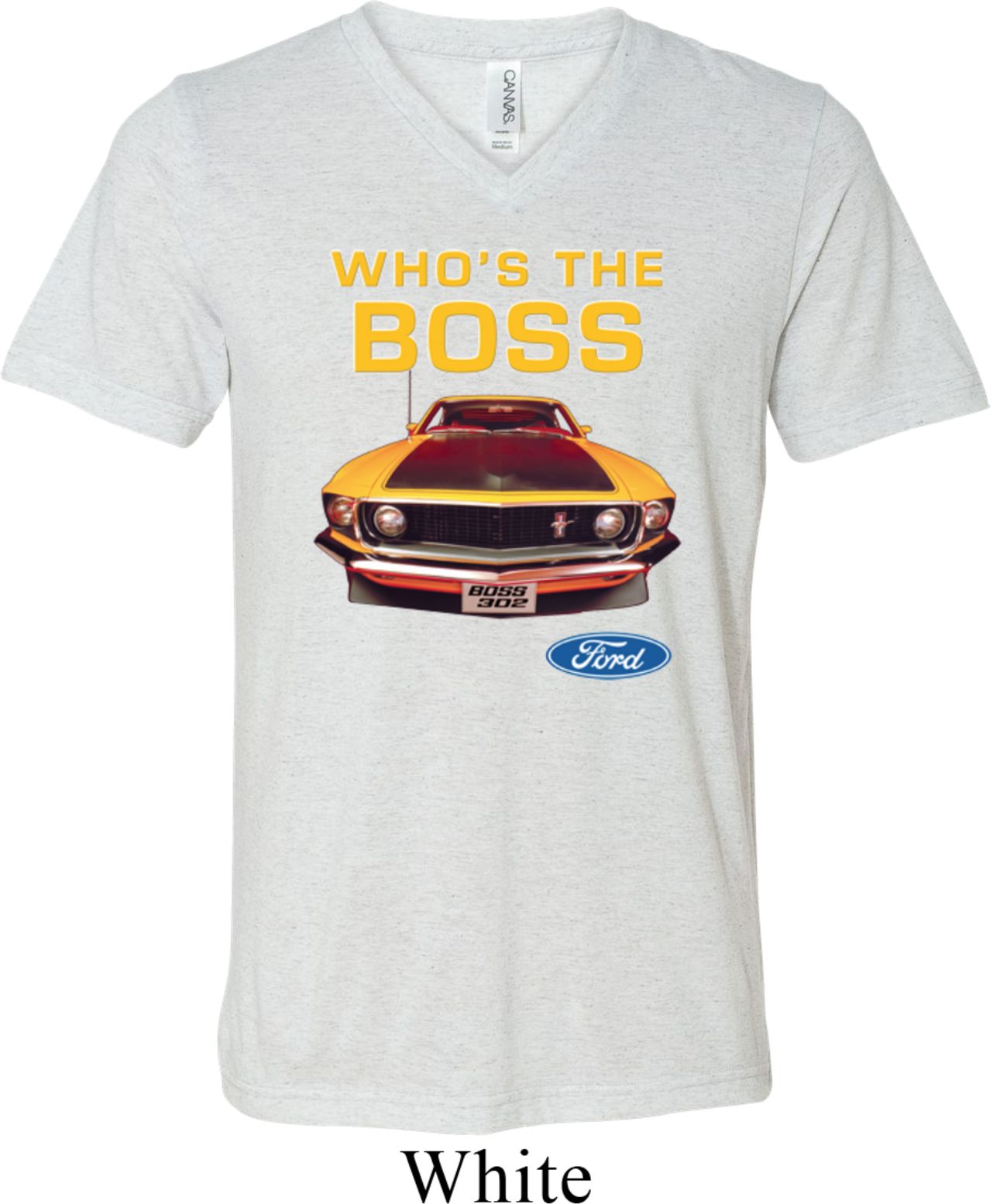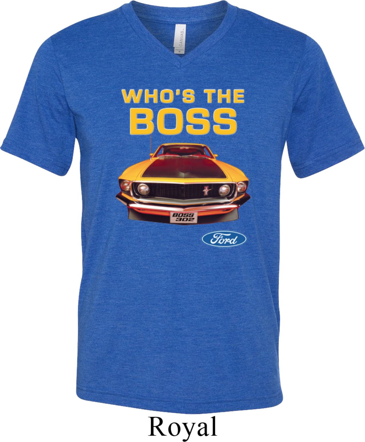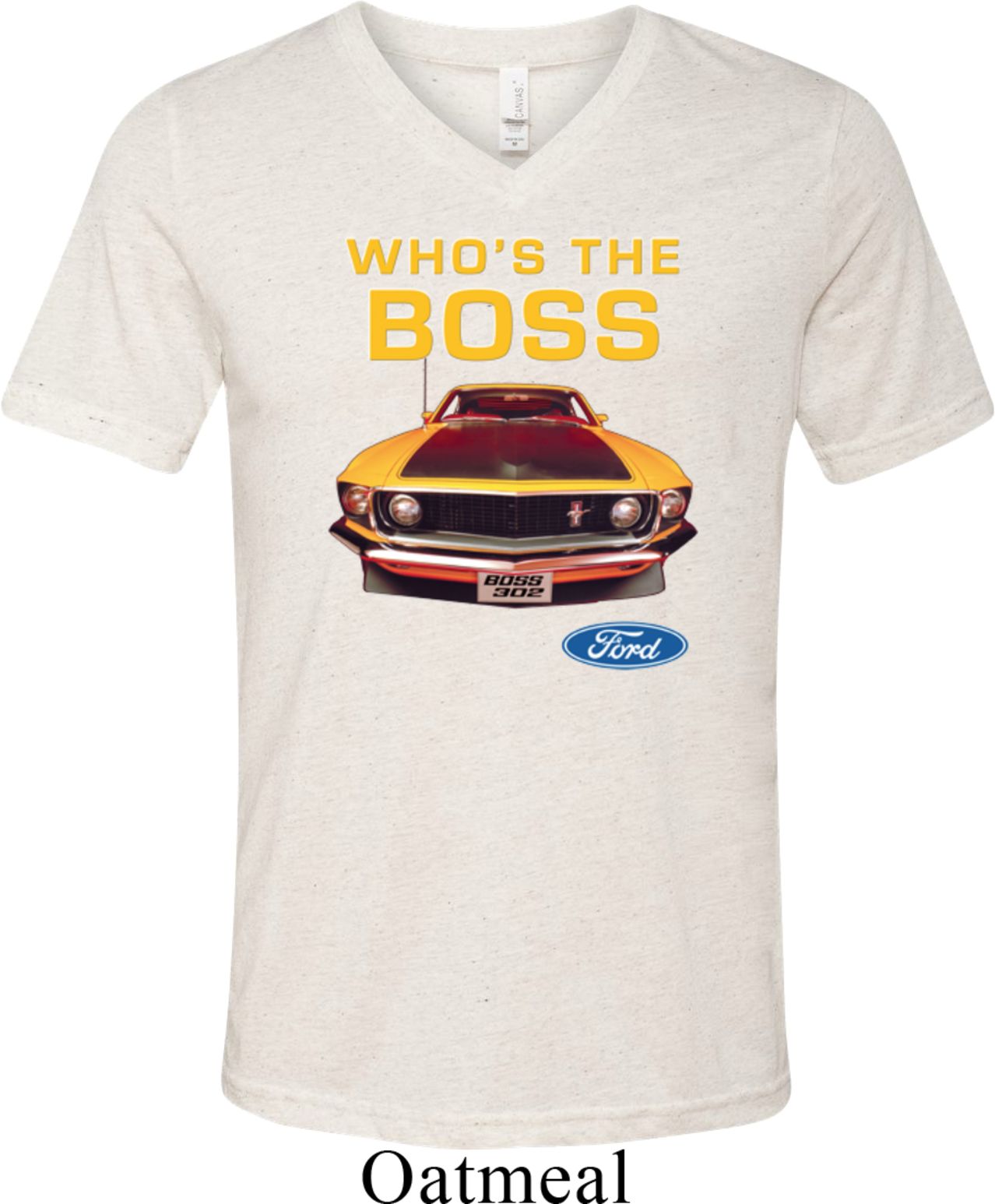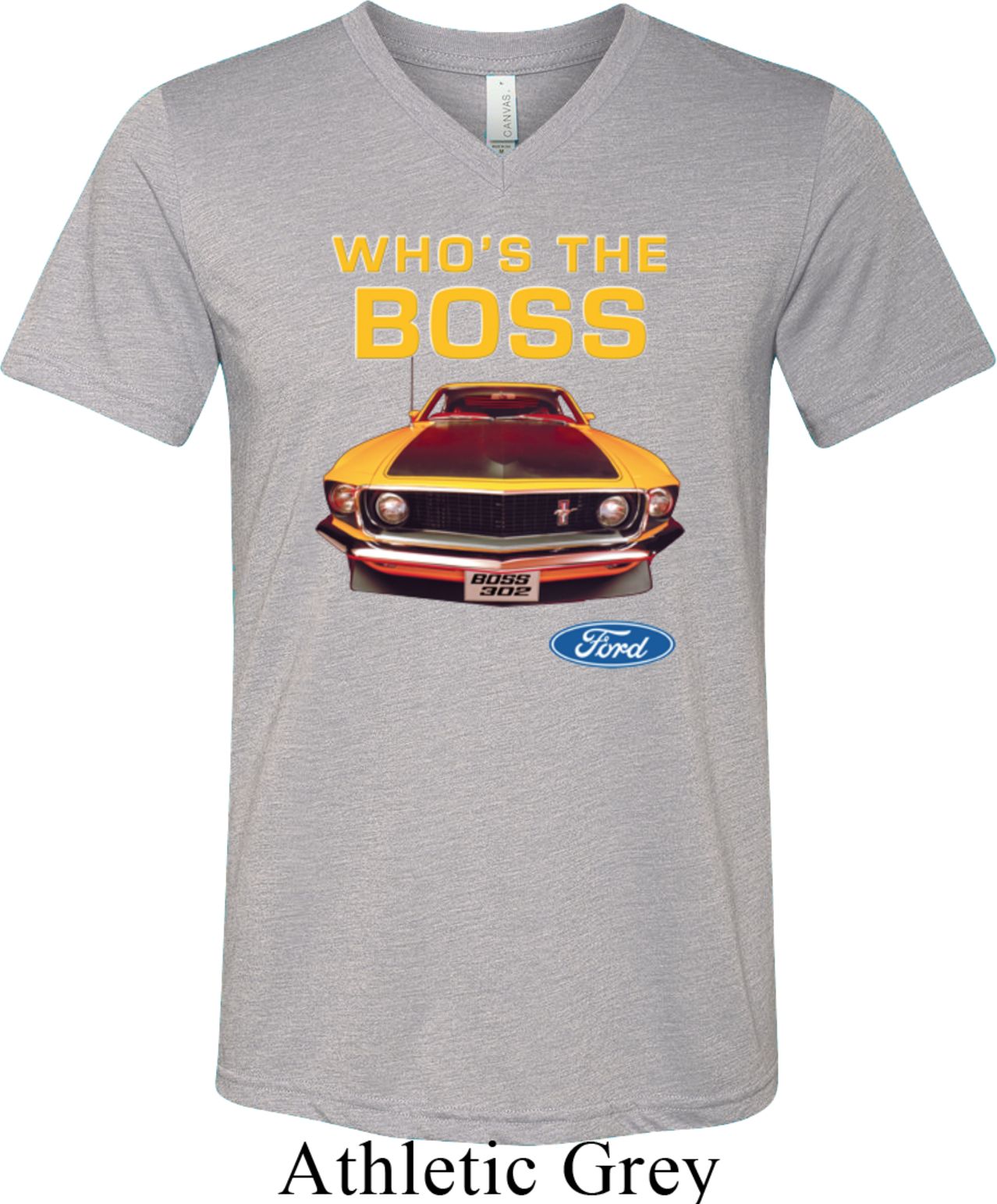 | | Mens Ford Shirt Mustang Who's The Boss Tri Blend V-neck ShirtMens Ford Shirt Mustang Who's The Boss Tri Blend V-neck Shirt Everyone feels like a boss when their driving a Mustang A cotton/poly/rayon blend Available in Small, Medium, Large, XL & 2XL Also available in colors Aqua, Athletic Grey, Blue, Brown, Charcoal Black, Clay, Green, Grey, Maroon, Navy, Oatmeal, Orange, Red, Royal, Teal, and White |