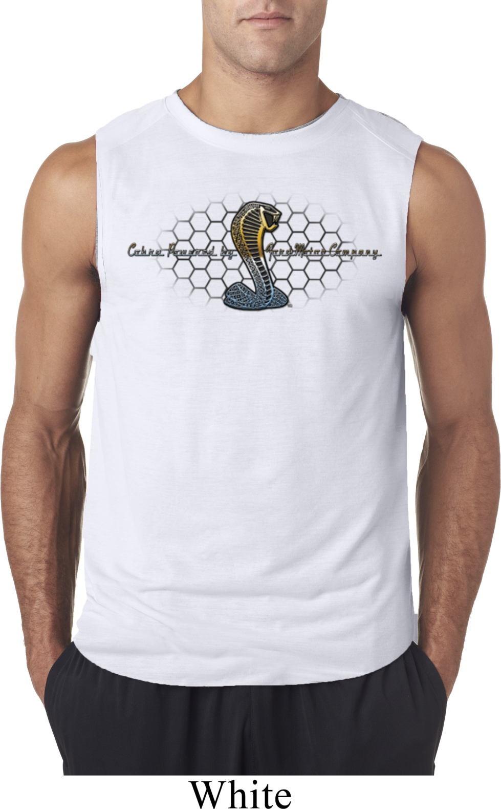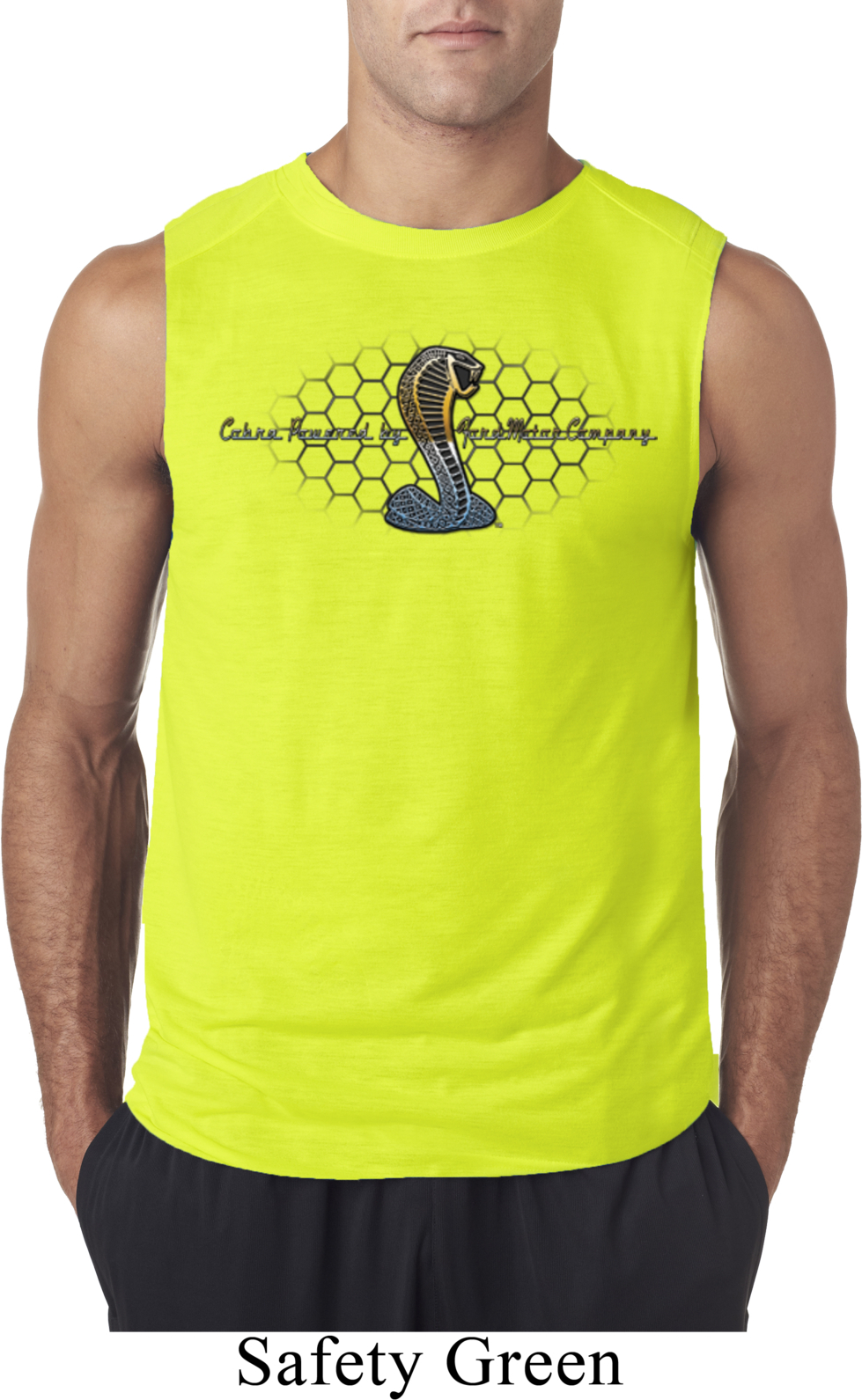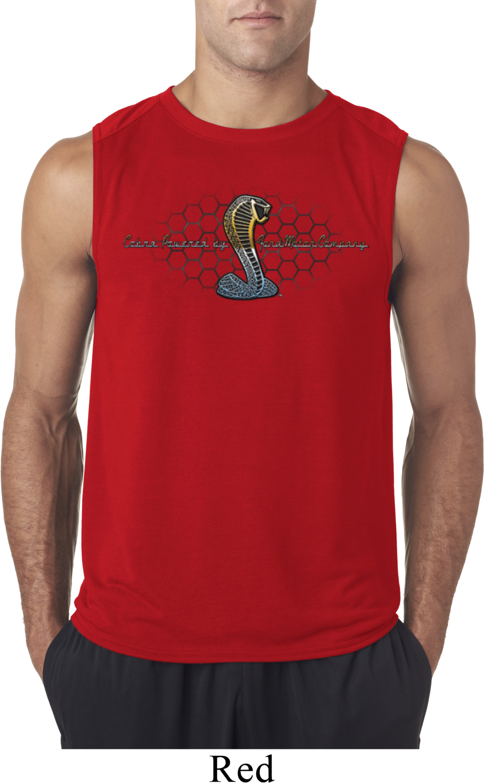 | | Mens Ford Shirt Powered By Cobra Sleeveless ShirtMens Ford Shirt Powered By Cobra Sleeveless Shirt A honeycomb grille behind Cobra By Ford Motor Company 100% polyester Athletic heather is a cotton/poly blend Available in Small, Medium, Large, XL & 2XL Also available in colors Carolina Blue, Red, Safety Green, and White |