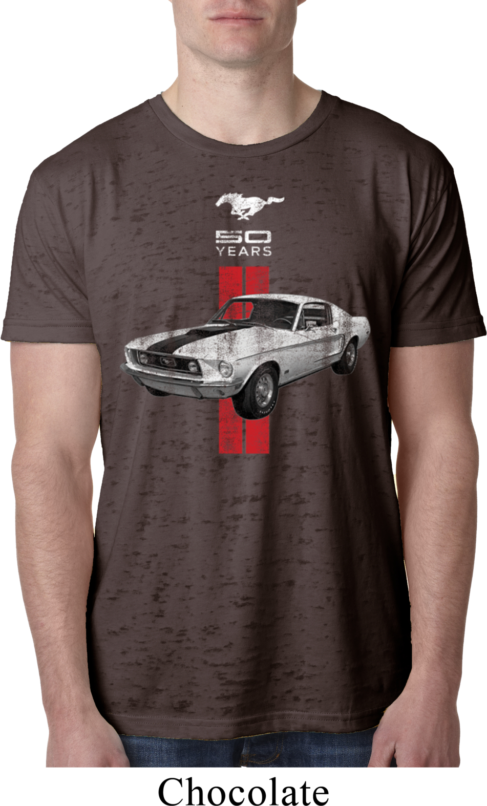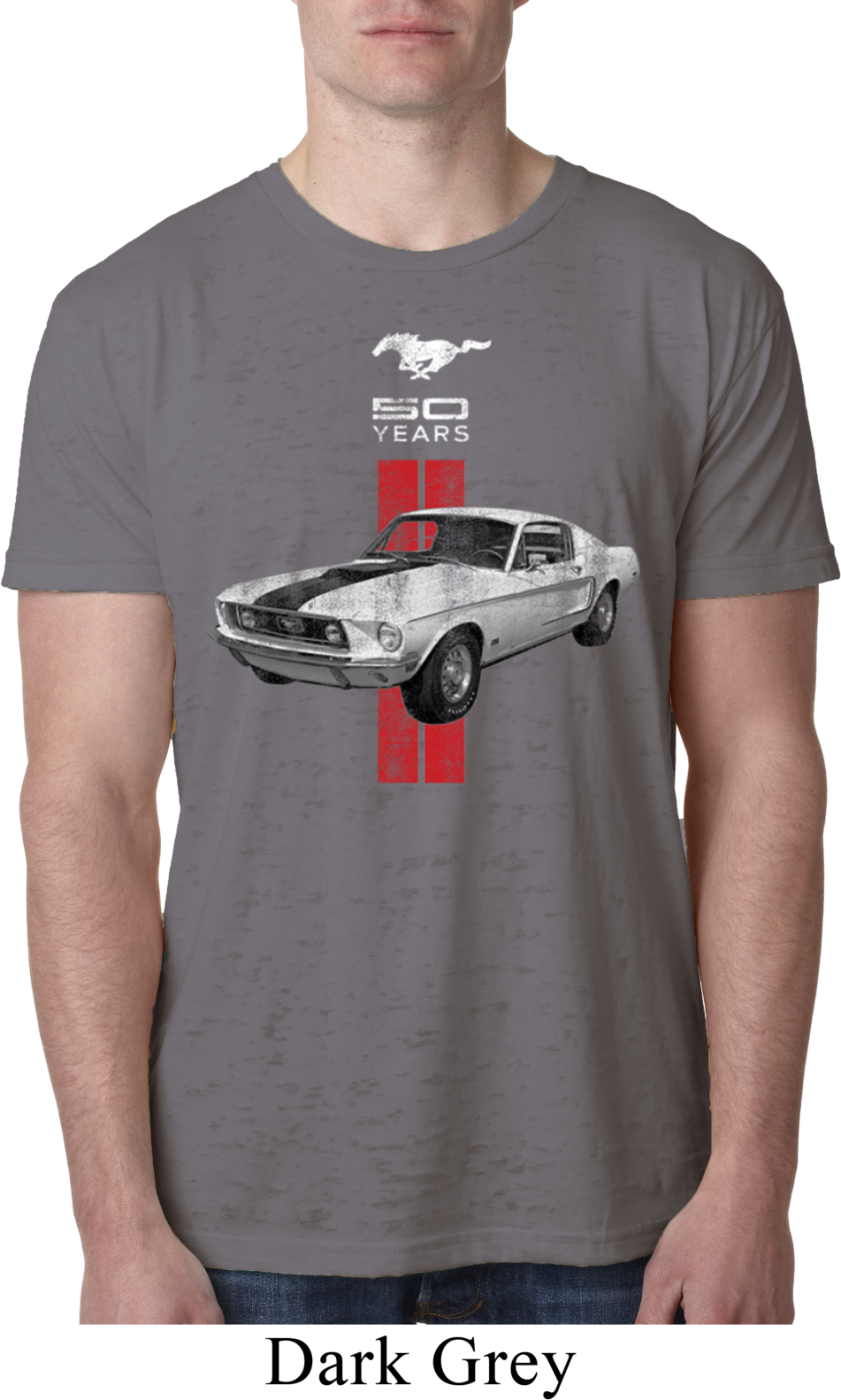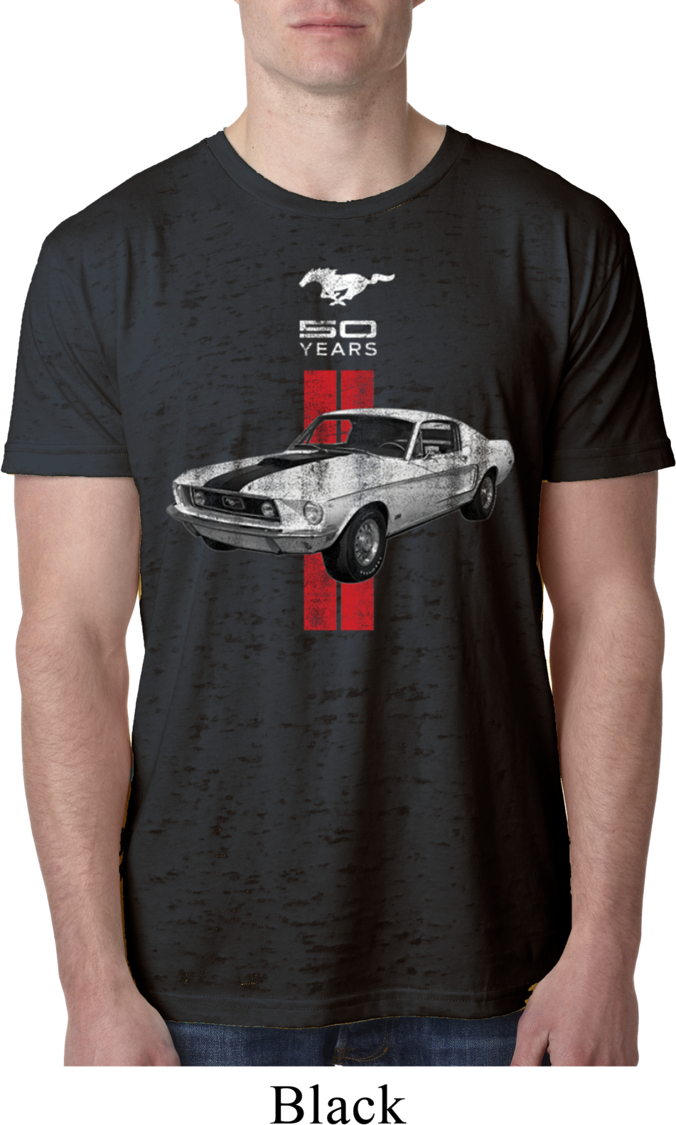 Mens Ford Shirt Red Stripe Mustang 50 Years Burnout Tee T-Shirt