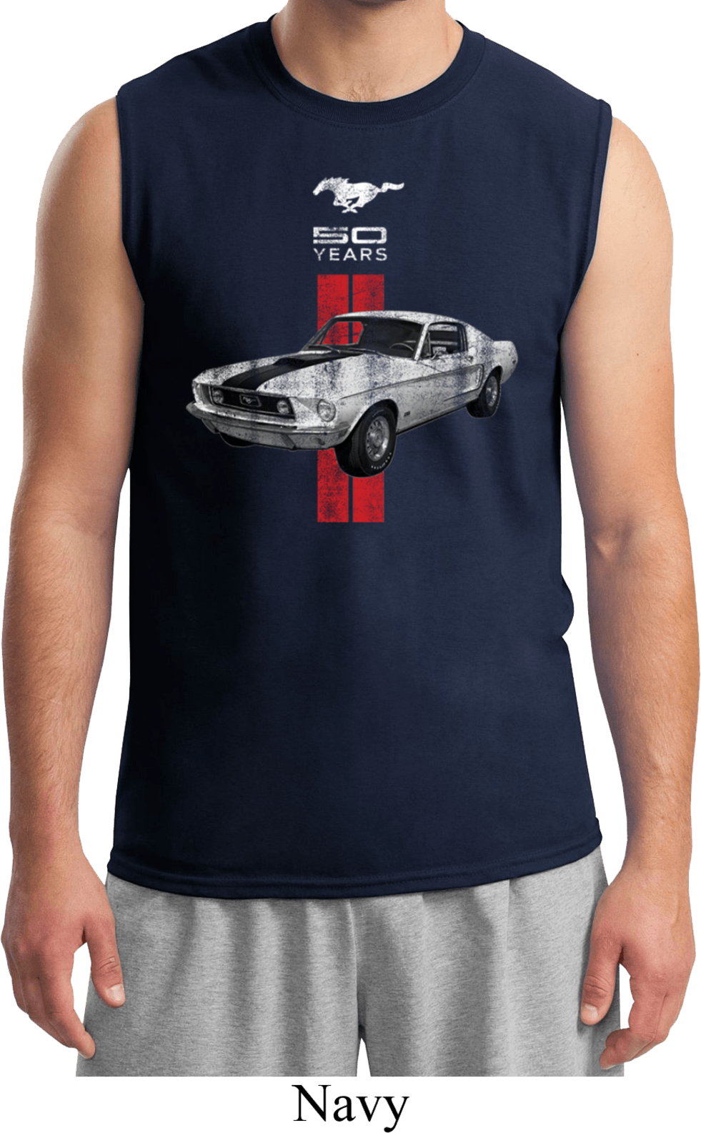 Mens Ford Shirt Red Stripe Mustang 50 Years Muscle Tee T-Shirt