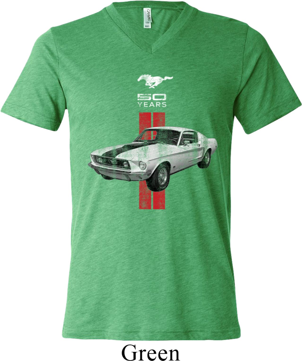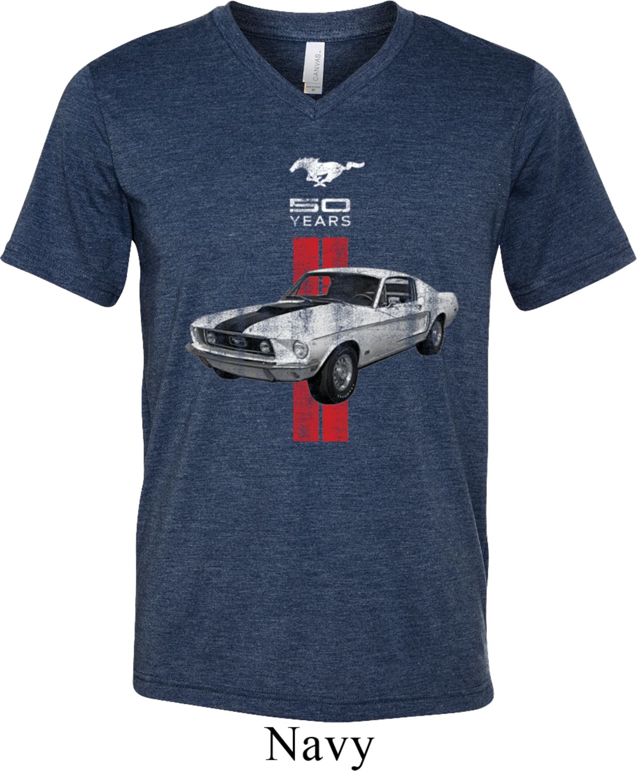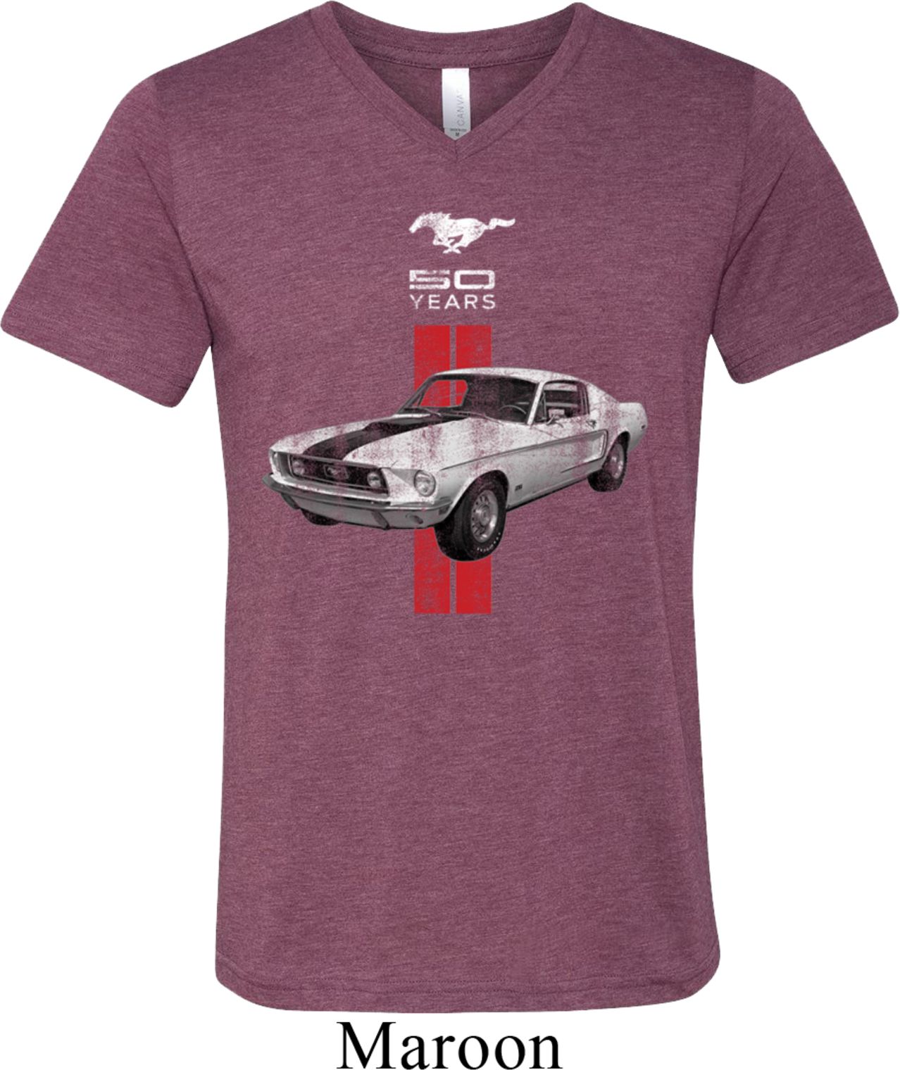 | | Mens Ford Shirt Red Stripe Mustang 50 Years Tri Blend V-neck TeeMens Ford Shirt Red Stripe Mustang 50 Years Tri Blend V-neck Tee A cotton/poly/rayon blend Available in Small, Medium, Large, XL & 2XL Also available in colors Aqua, Blue, Brown, Charcoal Black, Clay, Green, Grey, Maroon, Navy, Royal, and Teal |