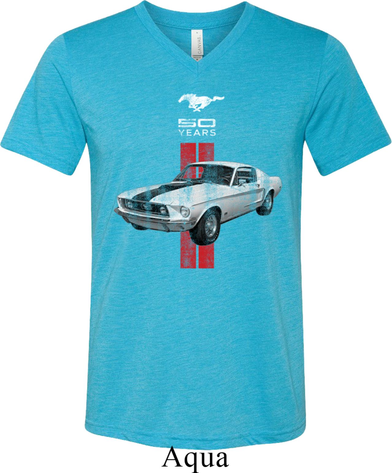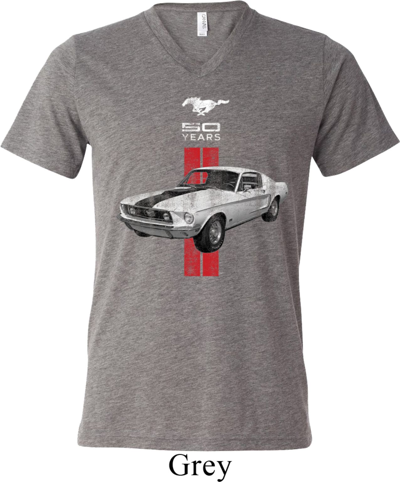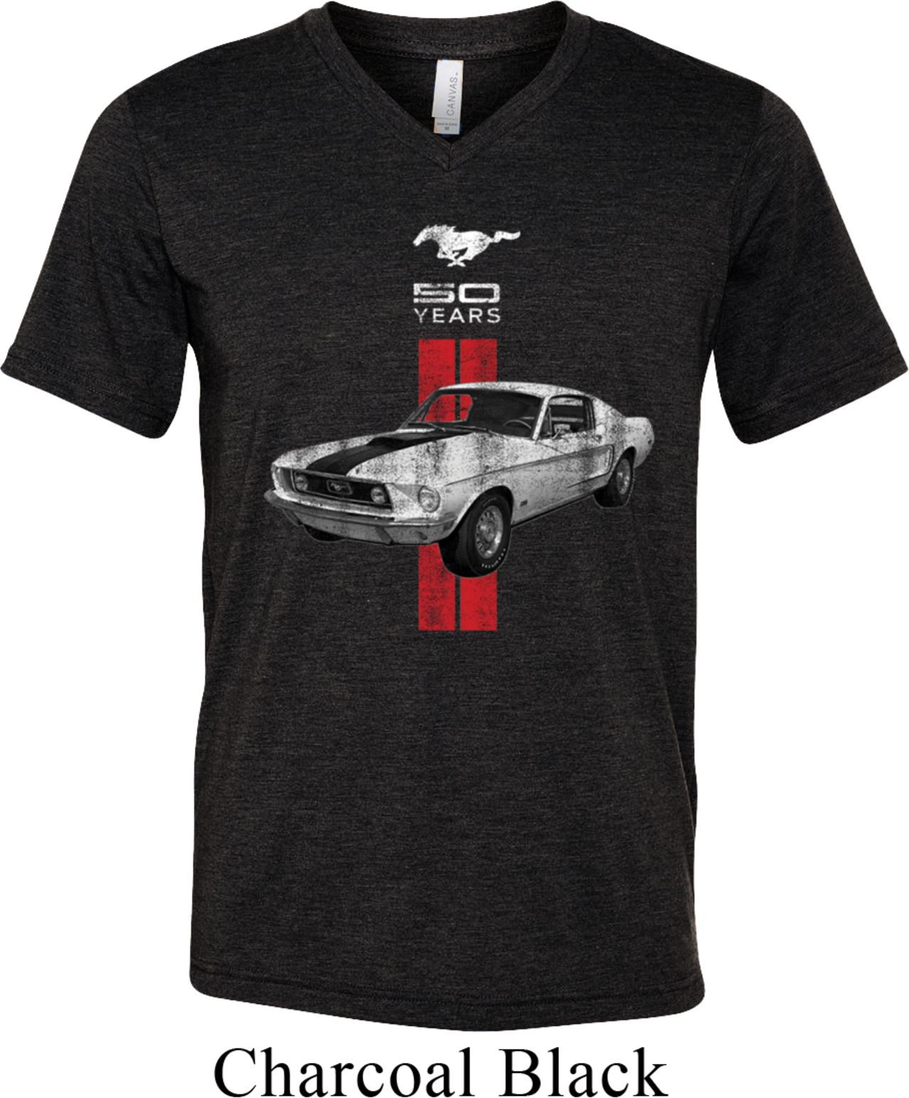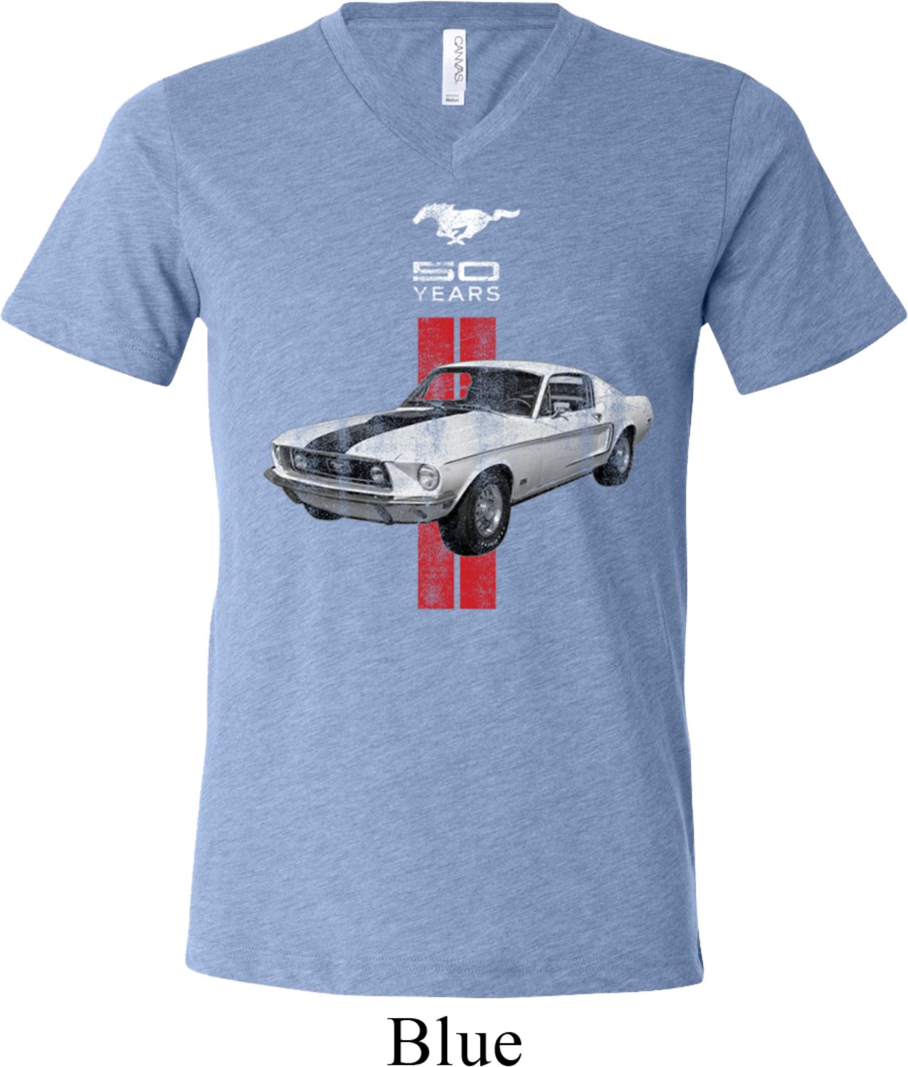 | | Mens Ford Shirt Red Stripe Mustang 50 Years Tri Blend V-neck TeeMens Ford Shirt Red Stripe Mustang 50 Years Tri Blend V-neck Tee A cotton/poly/rayon blend Available in Small, Medium, Large, XL & 2XL Also available in colors Aqua, Blue, Brown, Charcoal Black, Clay, Green, Grey, Maroon, Navy, Royal, and Teal |