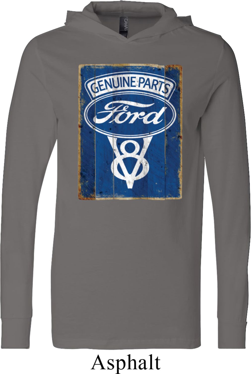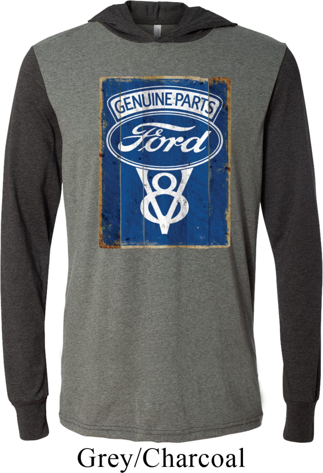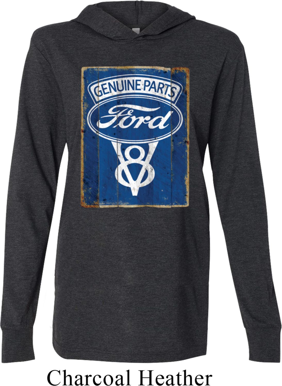 | | Mens Ford Shirt V8 Genuine Ford Parts Lightweight Hoodie TeeMens Ford Shirt V8 Genuine Ford Parts Lightweight Hoodie Tee A cotton/poly blend Asphalt, black, and white are 100% cotton Charcoal heather is a cotton/poly blend Available in Small, Medium, Large, XL & 2XL Also available in colors Asphalt, Black, Charcoal Heather, Deep Heather, Grey/Charcoal, Navy, Royal, and White |