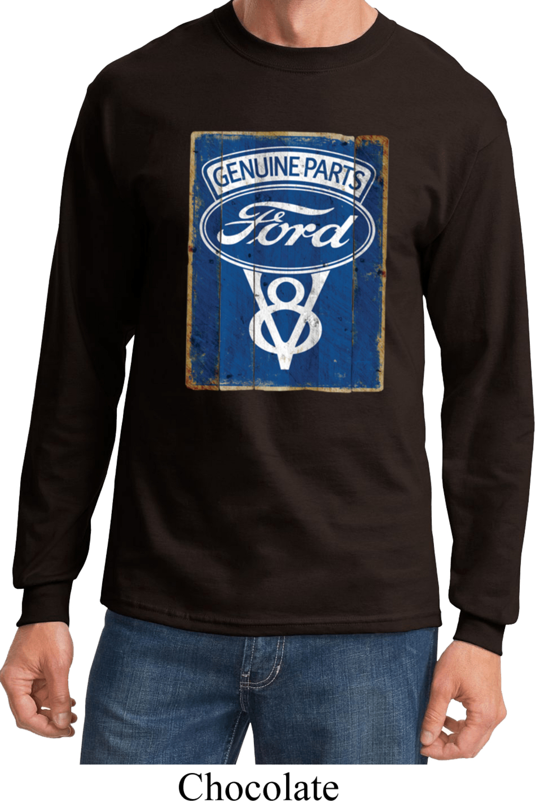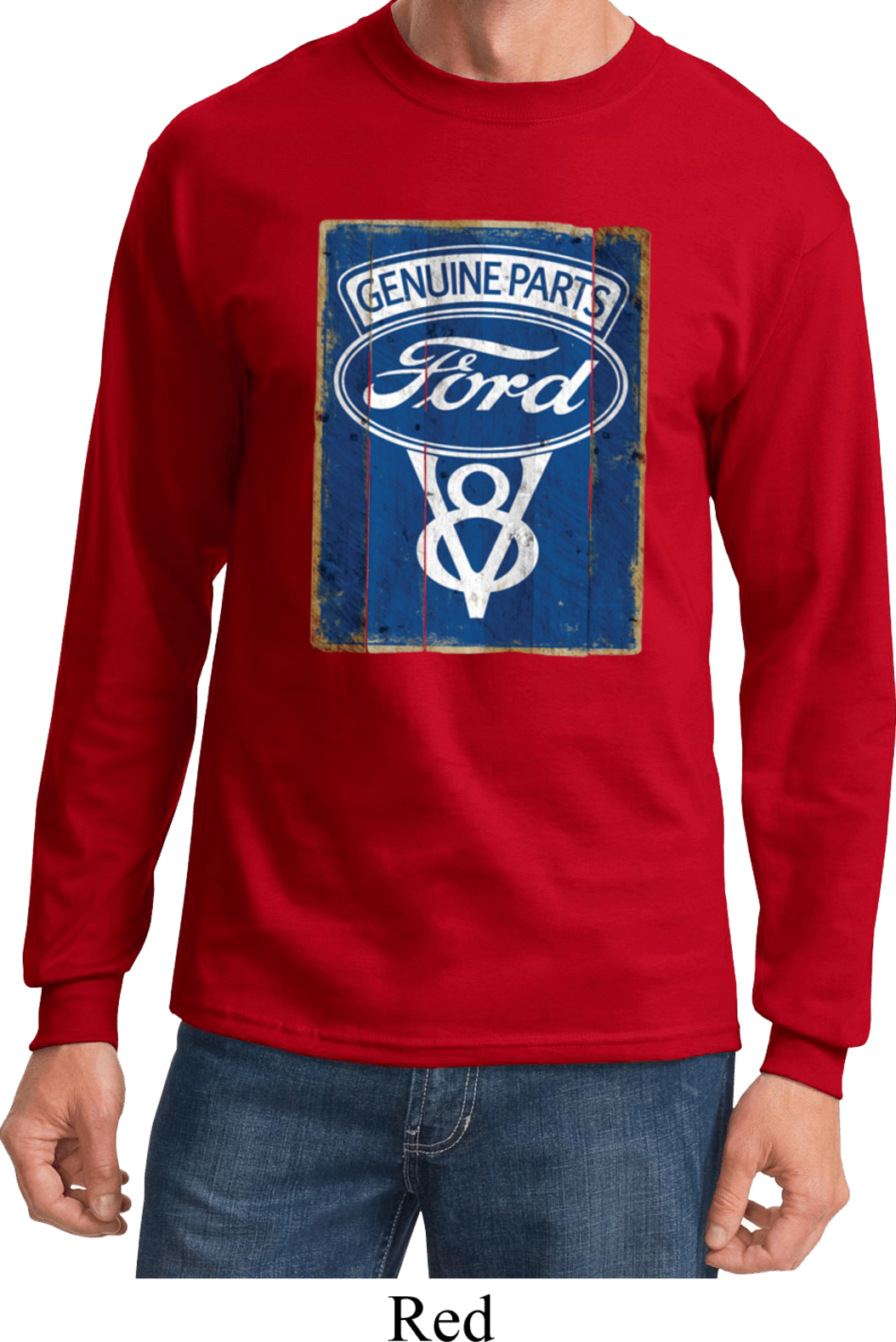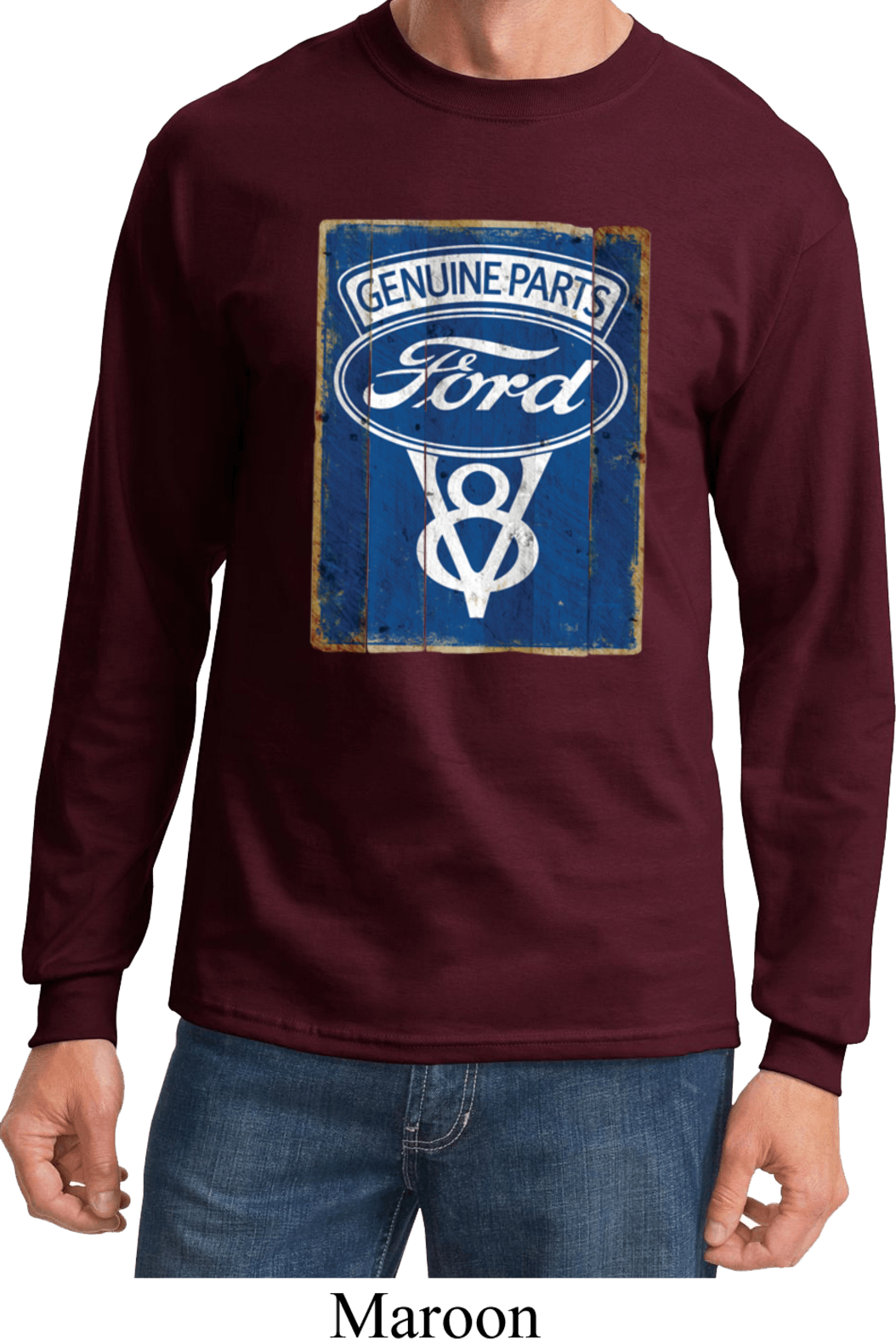 Mens Ford Shirt V8 Genuine Ford Parts Long Sleeve Tee T-Shirt